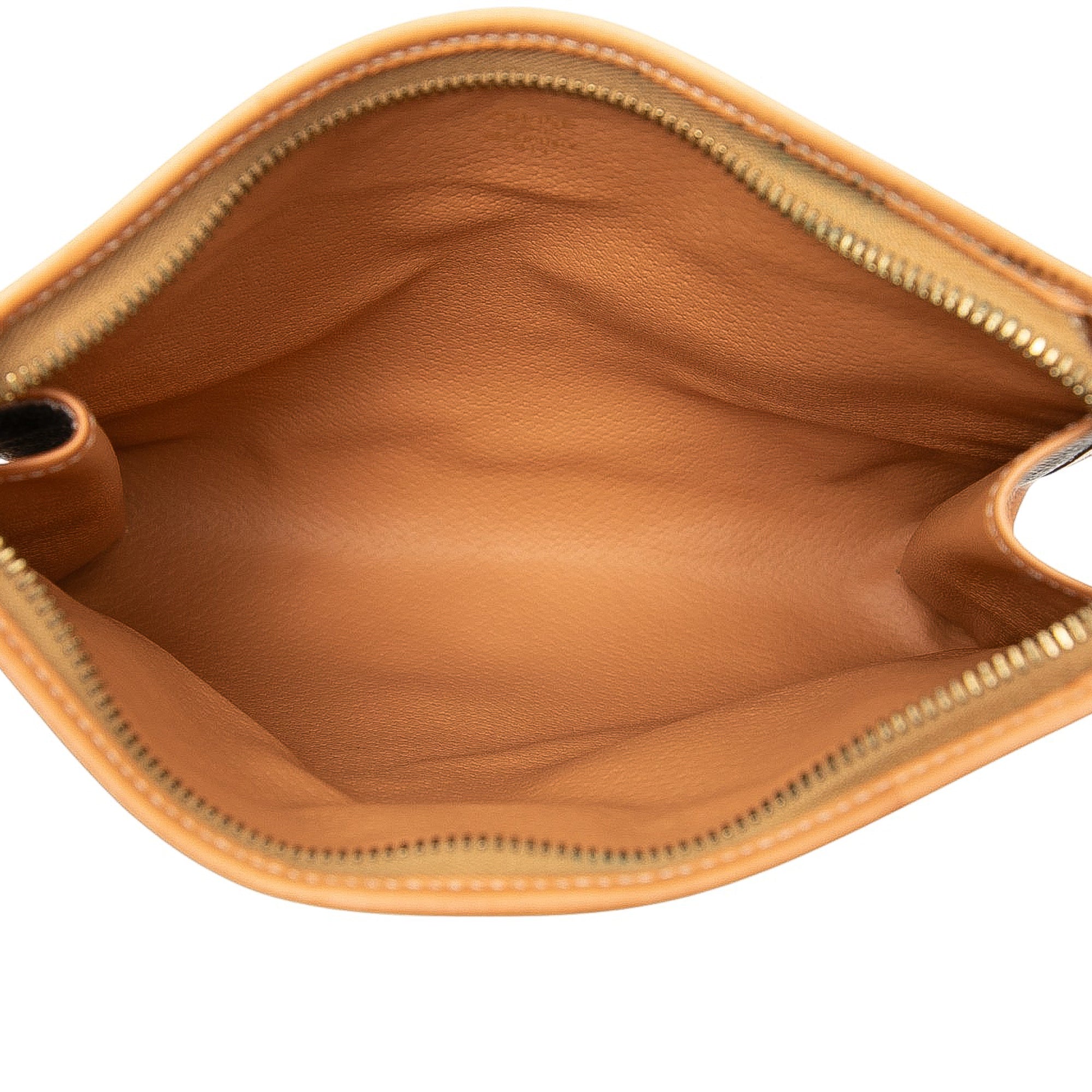 This clutch bag features a coated canvas body with leather trim, and a top zip closure. Retail Price: 450.00