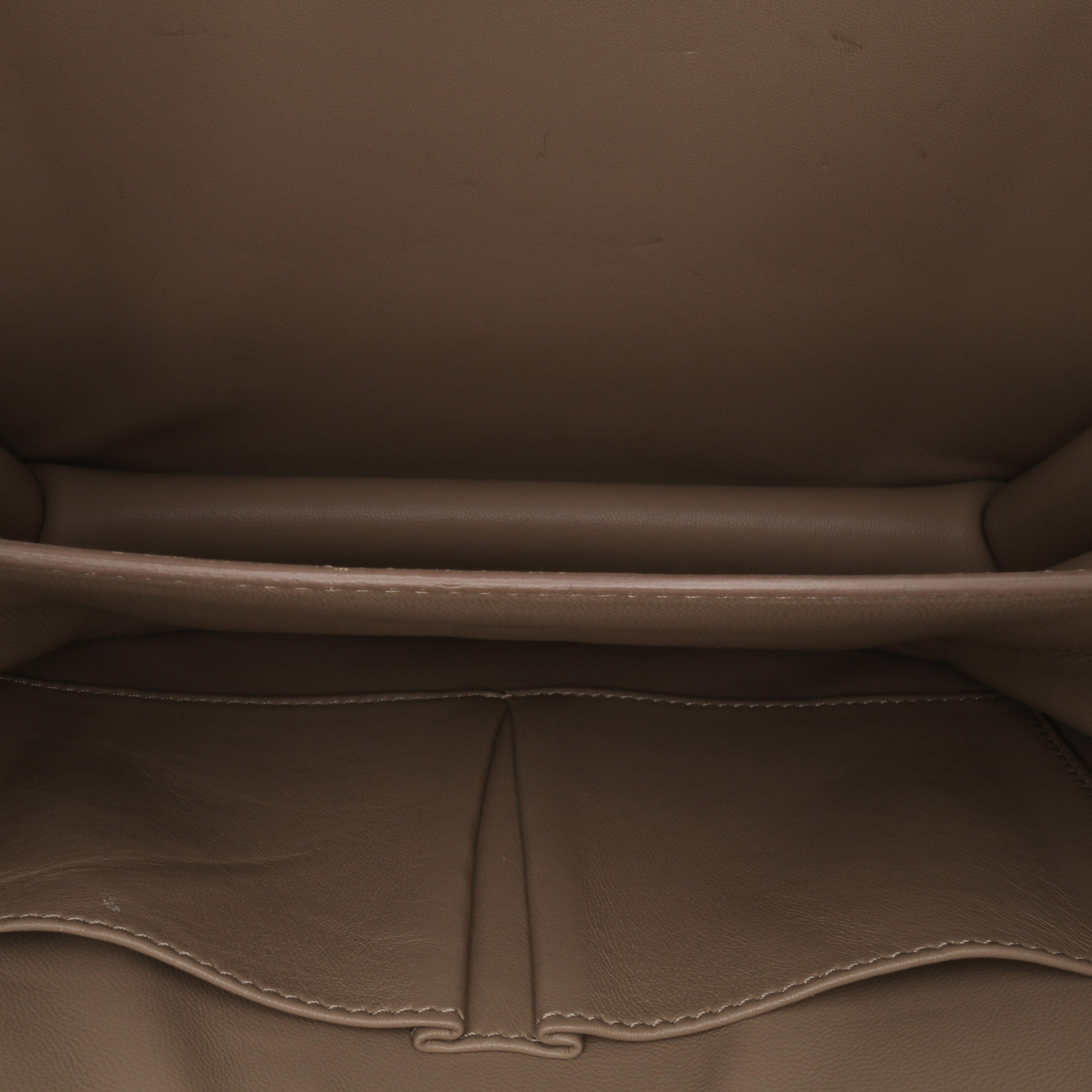 The Classic Box bag features a leather body, an adjustable flat leather strap, a front flap with a push lock closure, and interior slip pockets. Retail Price: 3545.00