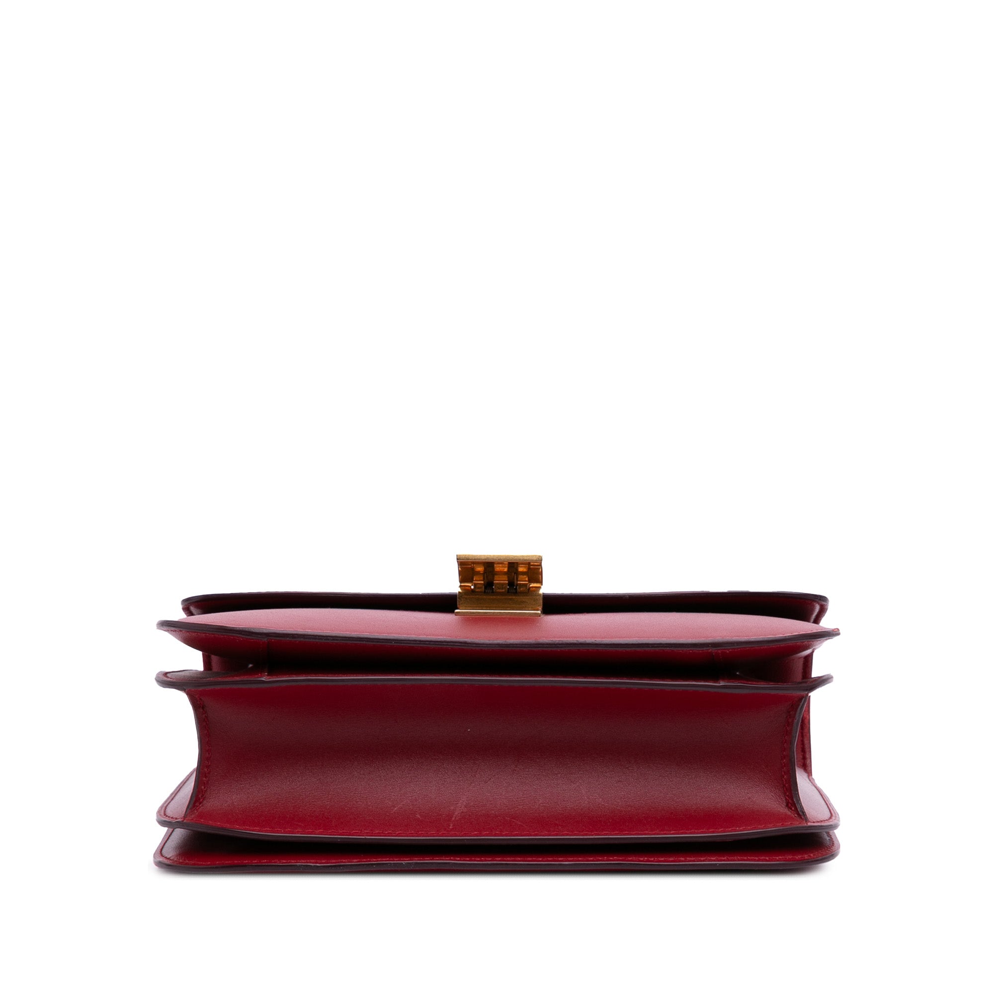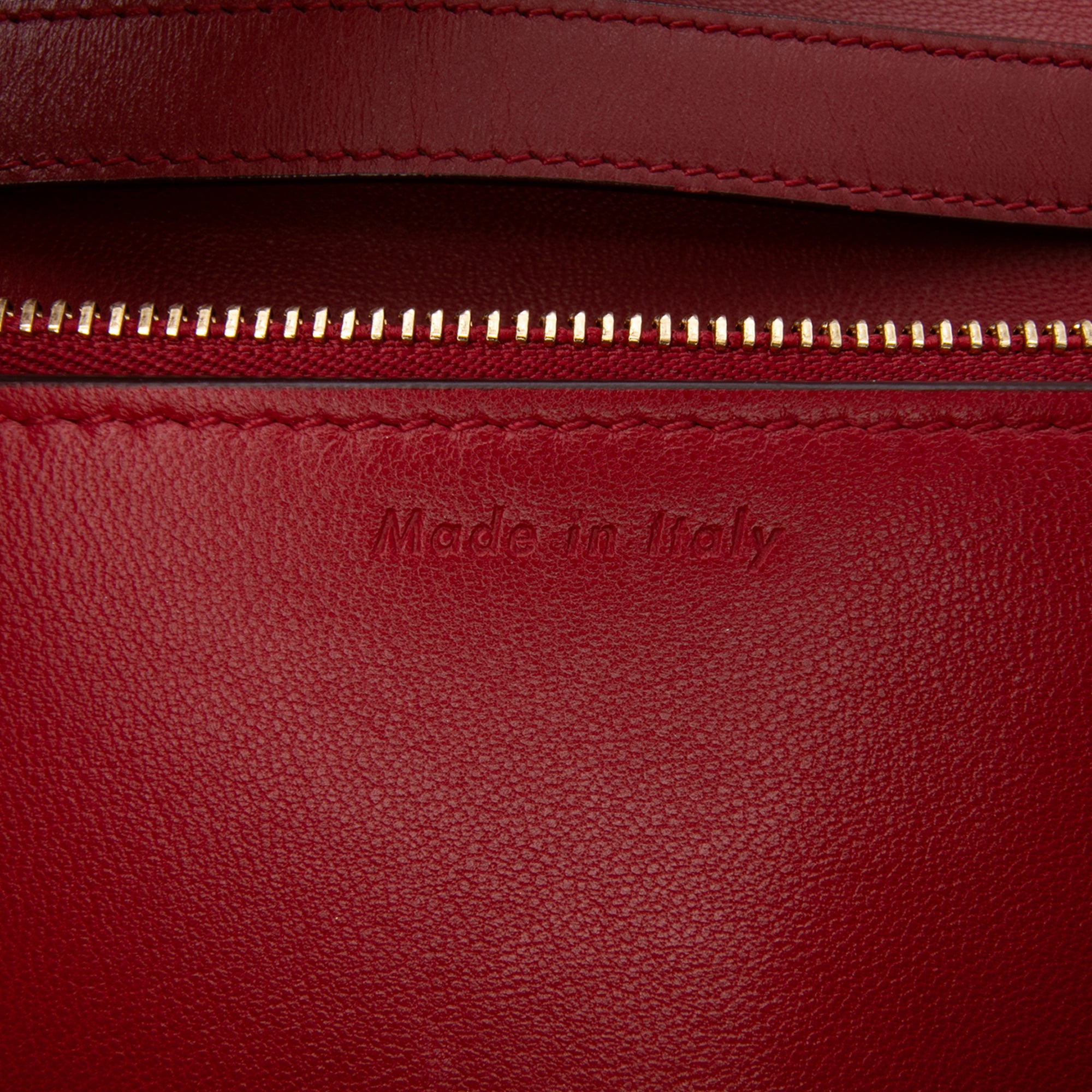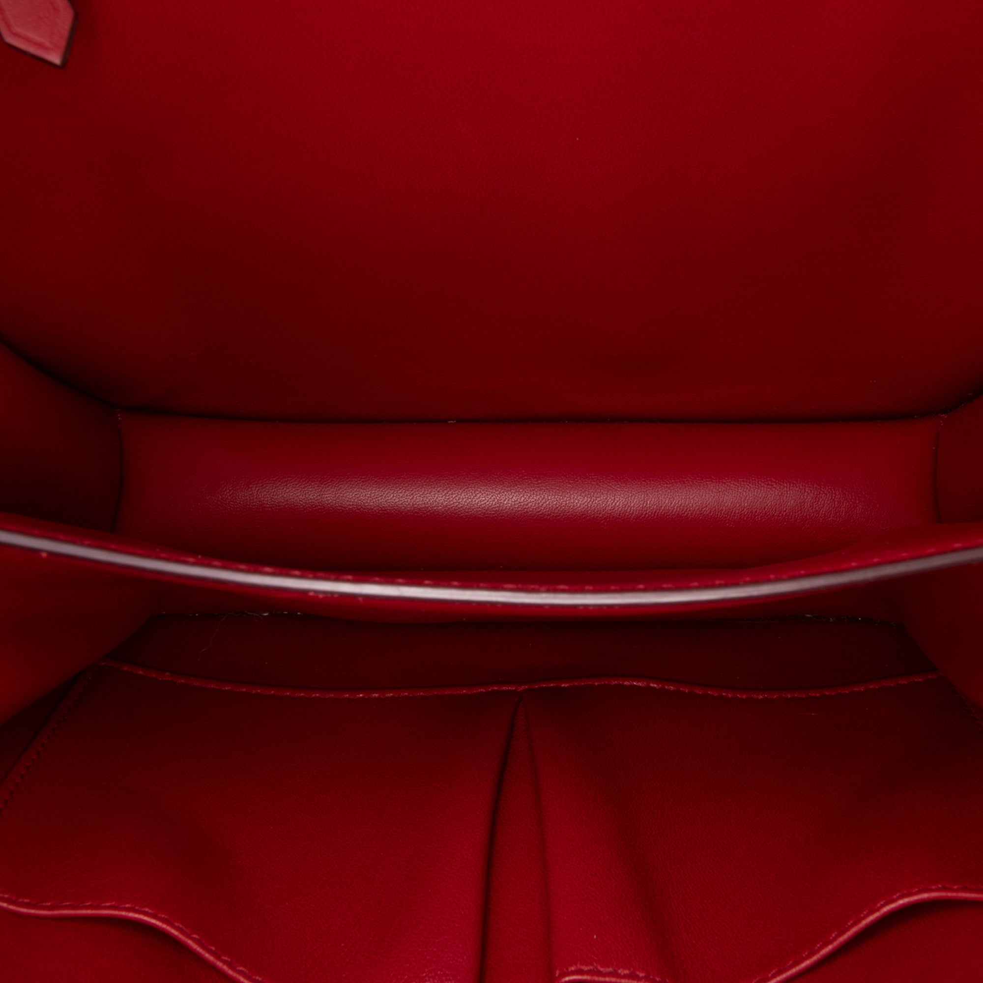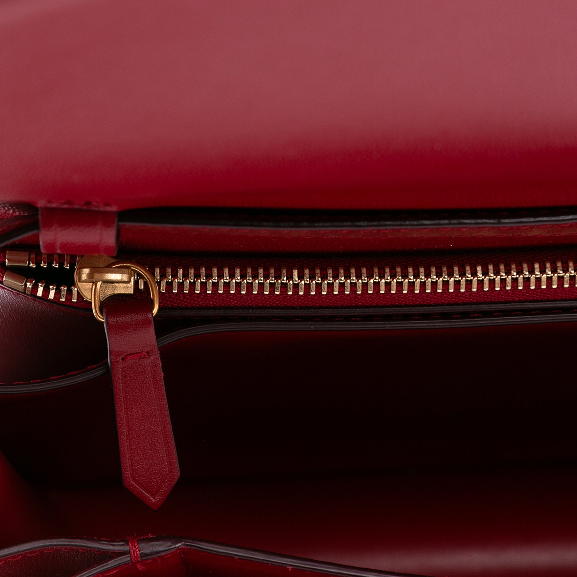 This crossbody bag features a leather body, an adjustable flat leather strap, a front flap with a metal clasp closure, and interior zip and slip pockets. Retail Price: 4200.00