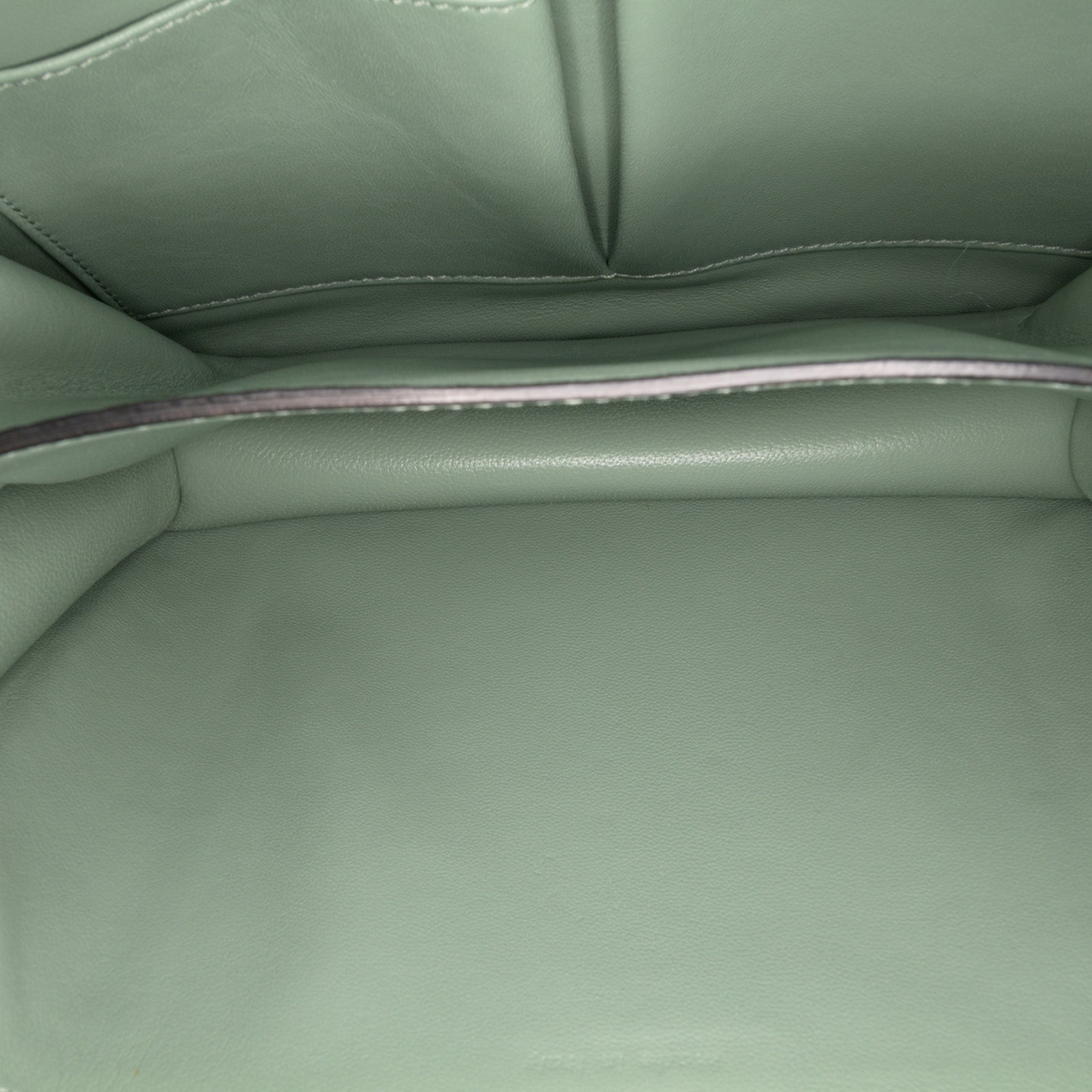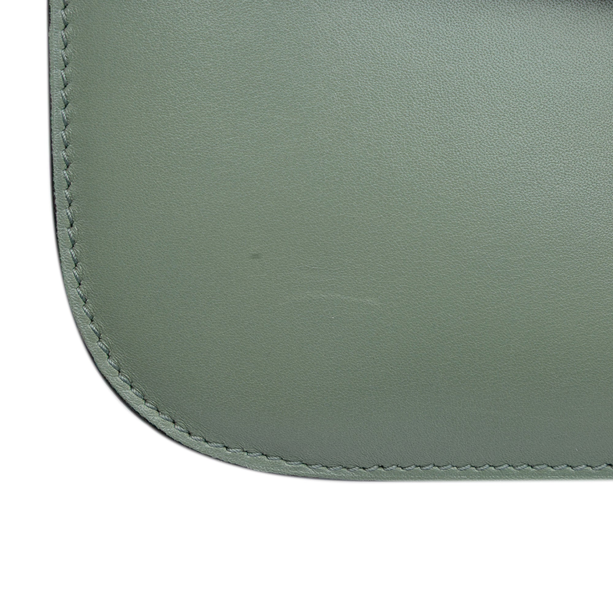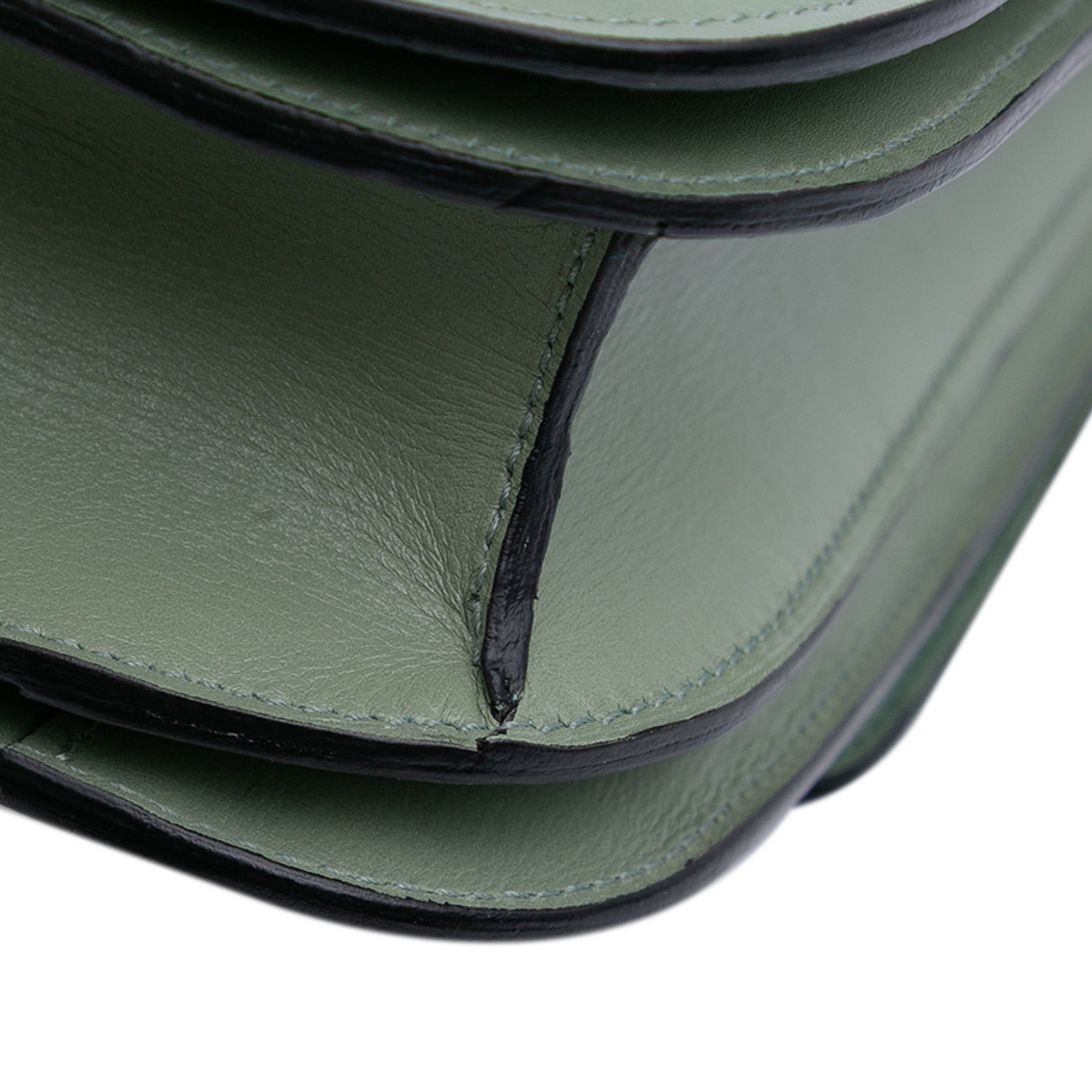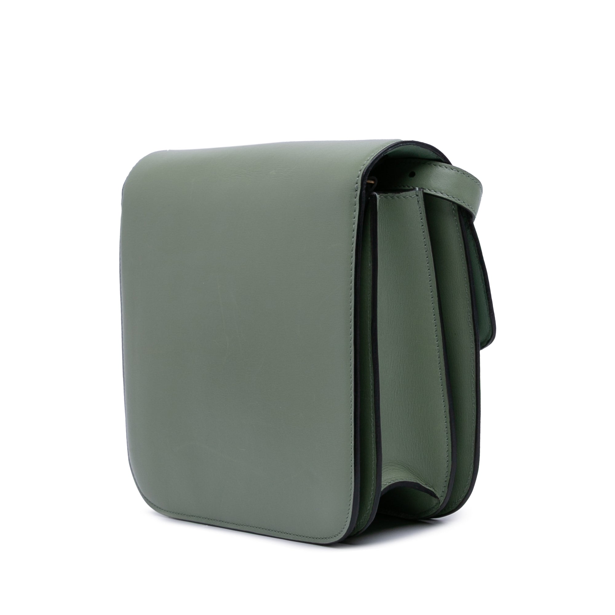 This crossbody bag features a leather body, a detachable flat strap, a front flap with a metal clasp closure, and interior zip and slip pockets. Retail Price: 3250.00