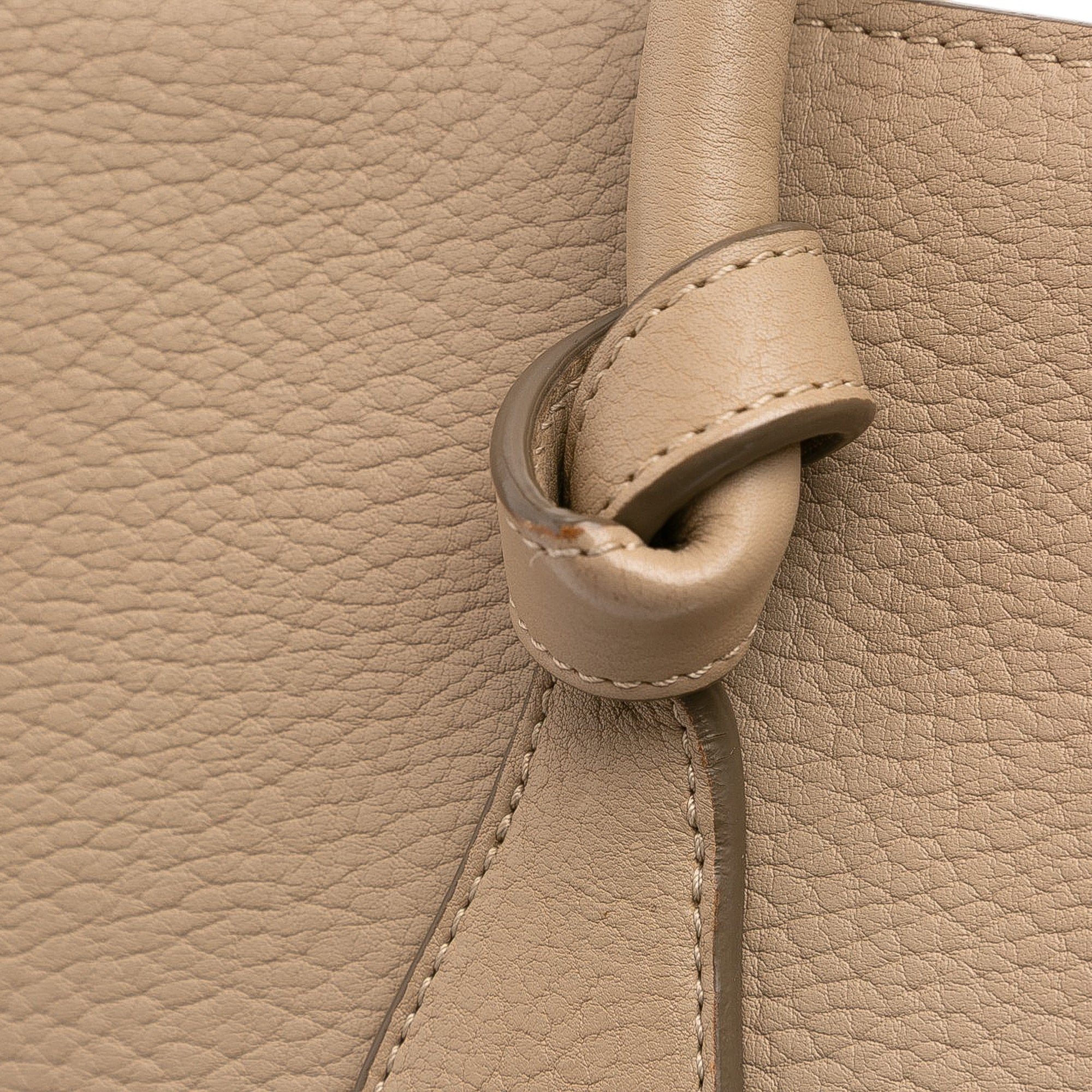The Tie Knot handbag features a leather body, rolled leather handles, a top flap and pull-through closure, and interior zip and slip pockets. Retail Price: 3700.00