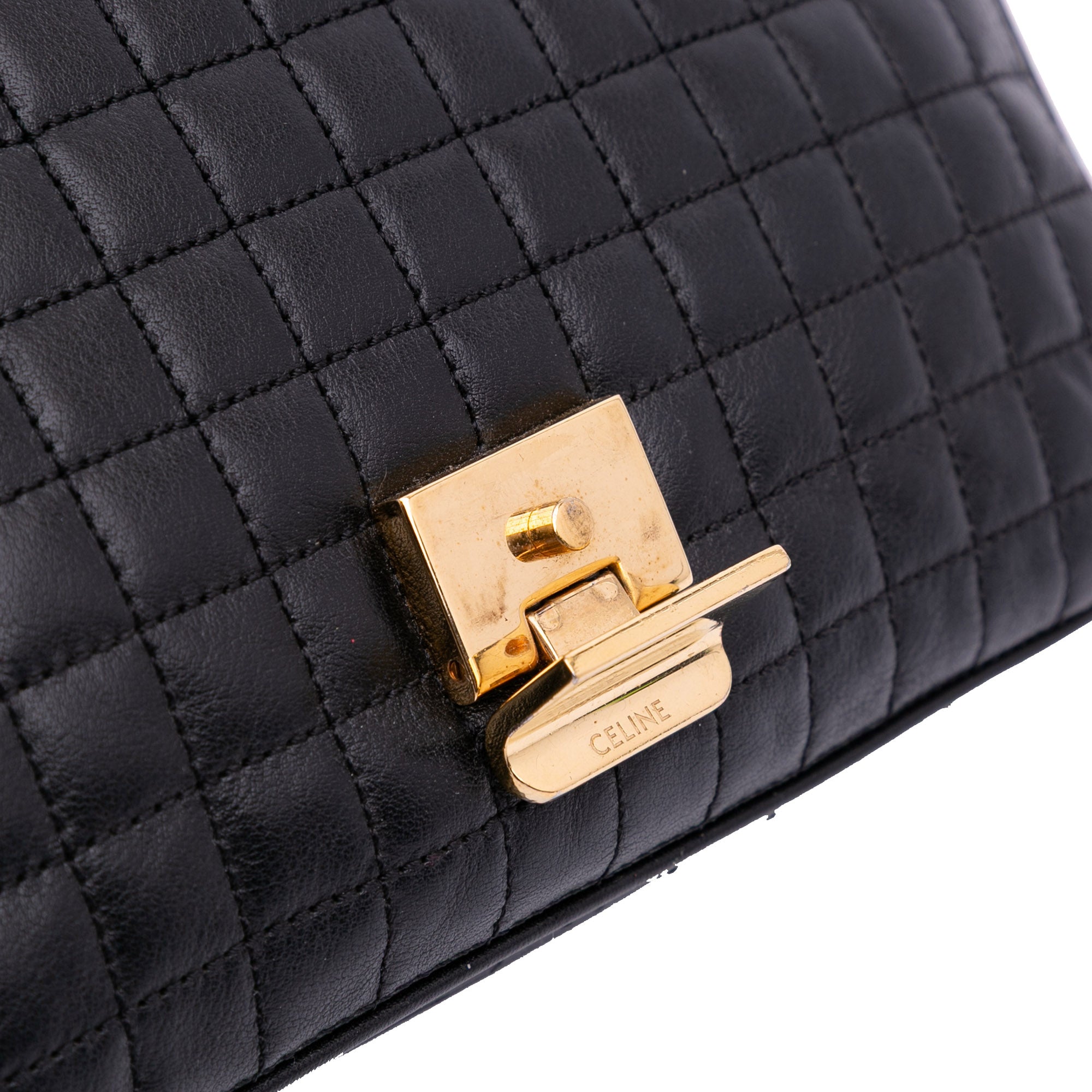 This crossbody bag features a quilted leather body, a curb chain shoulder strap with leather guard, a front flap with push lock closure, and interior zip and slip pockets. Retail Price: 1990.00