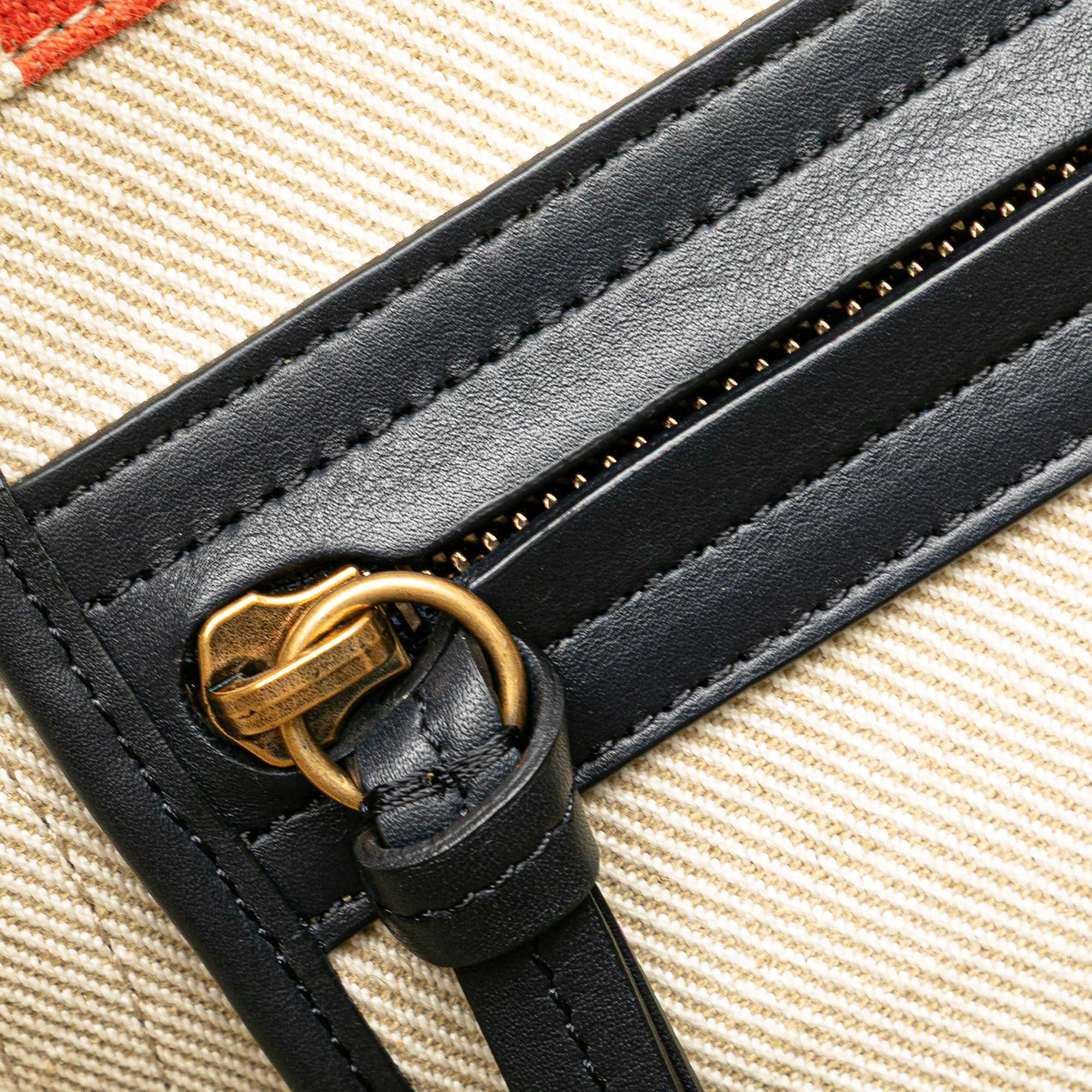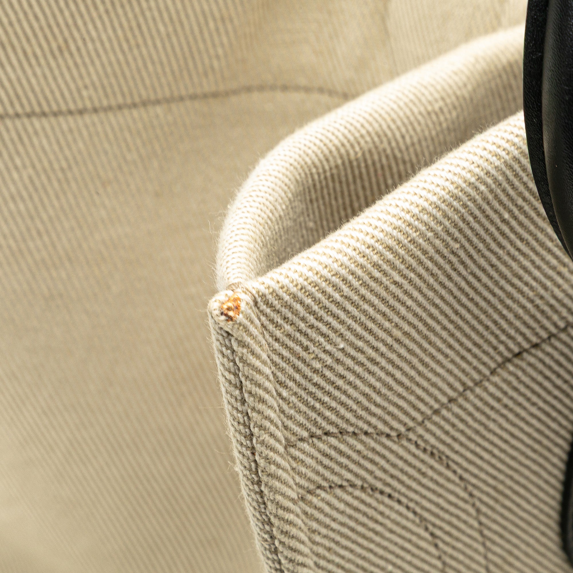 The Phantom tote bag features a canvas body with leather trim, rolled leather handles, an open top with pull-through closure, an exterior front zip pocket, and an interior zip pocket. Retail Price: 2250.00