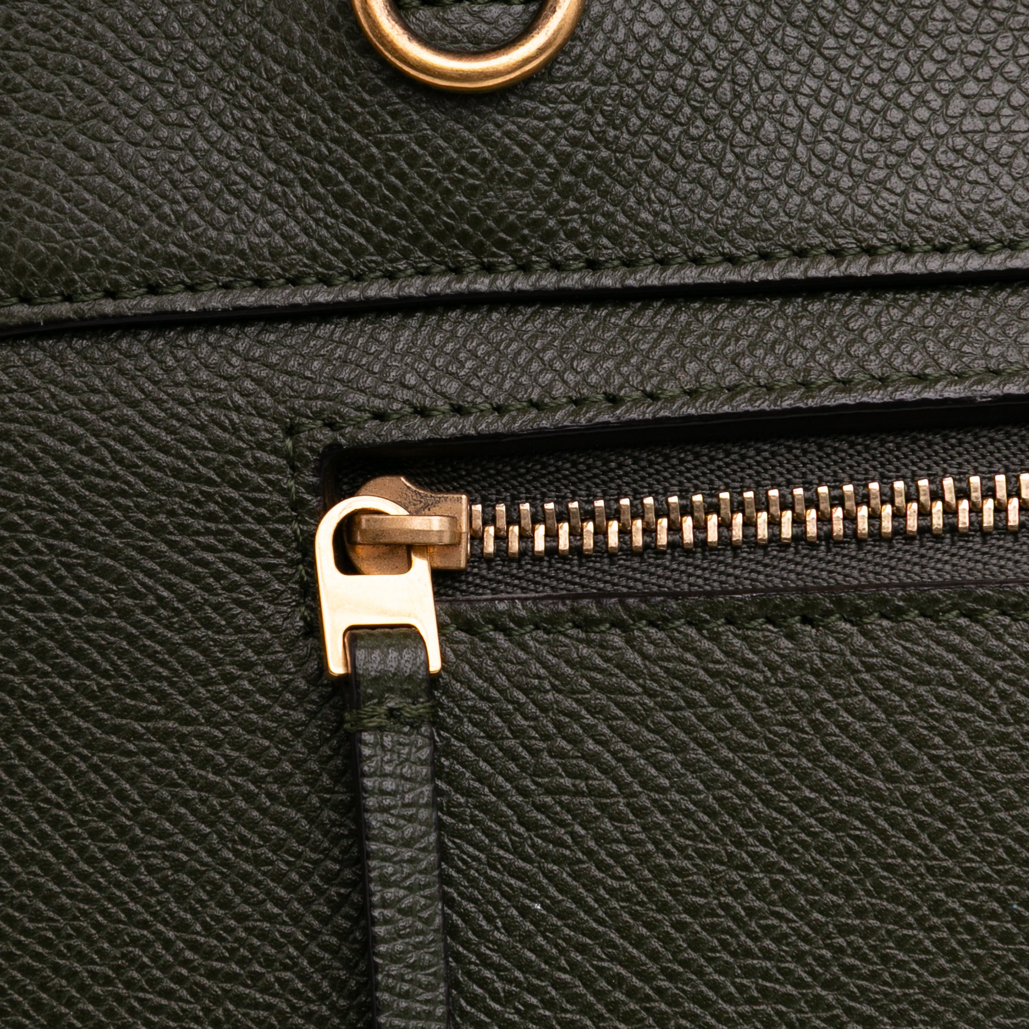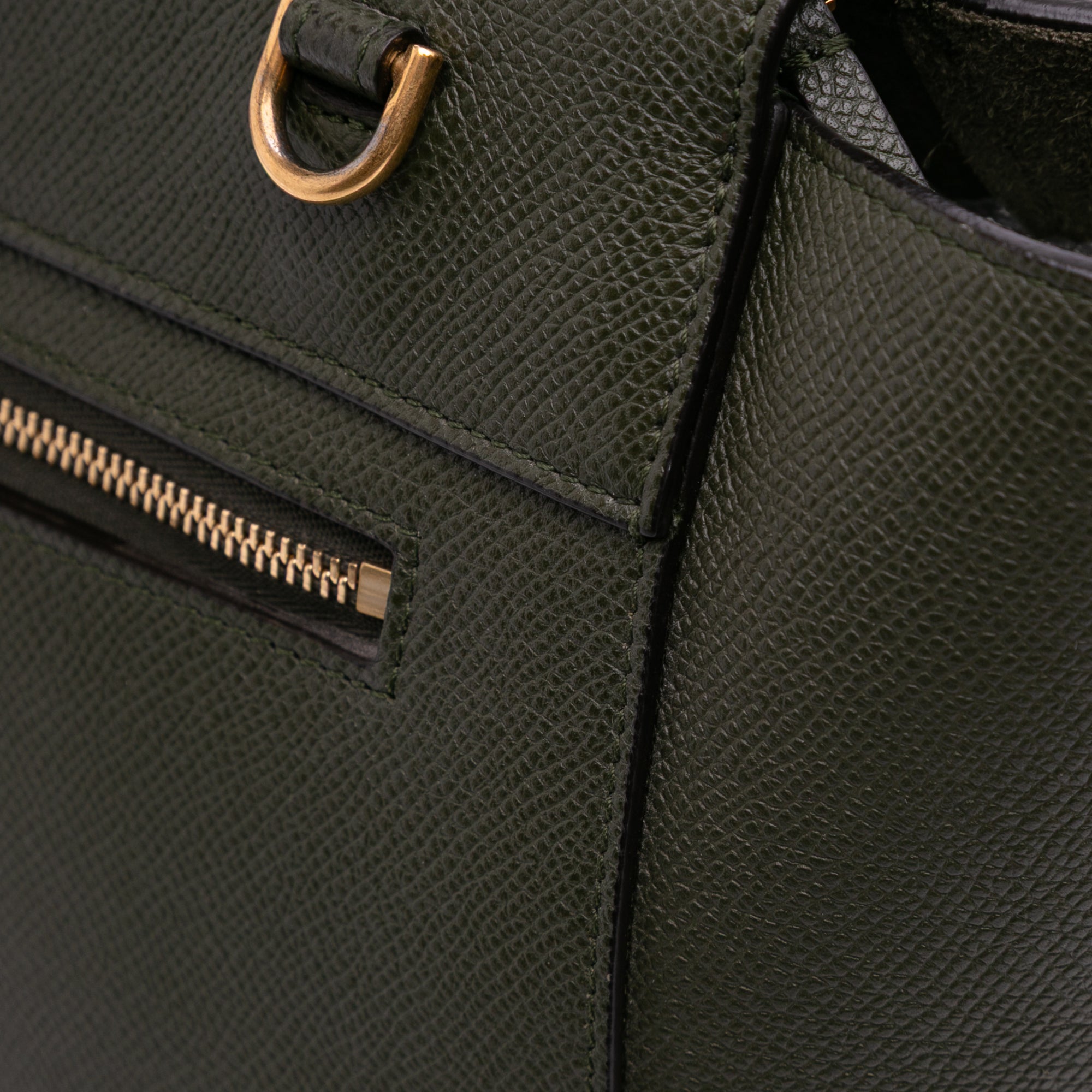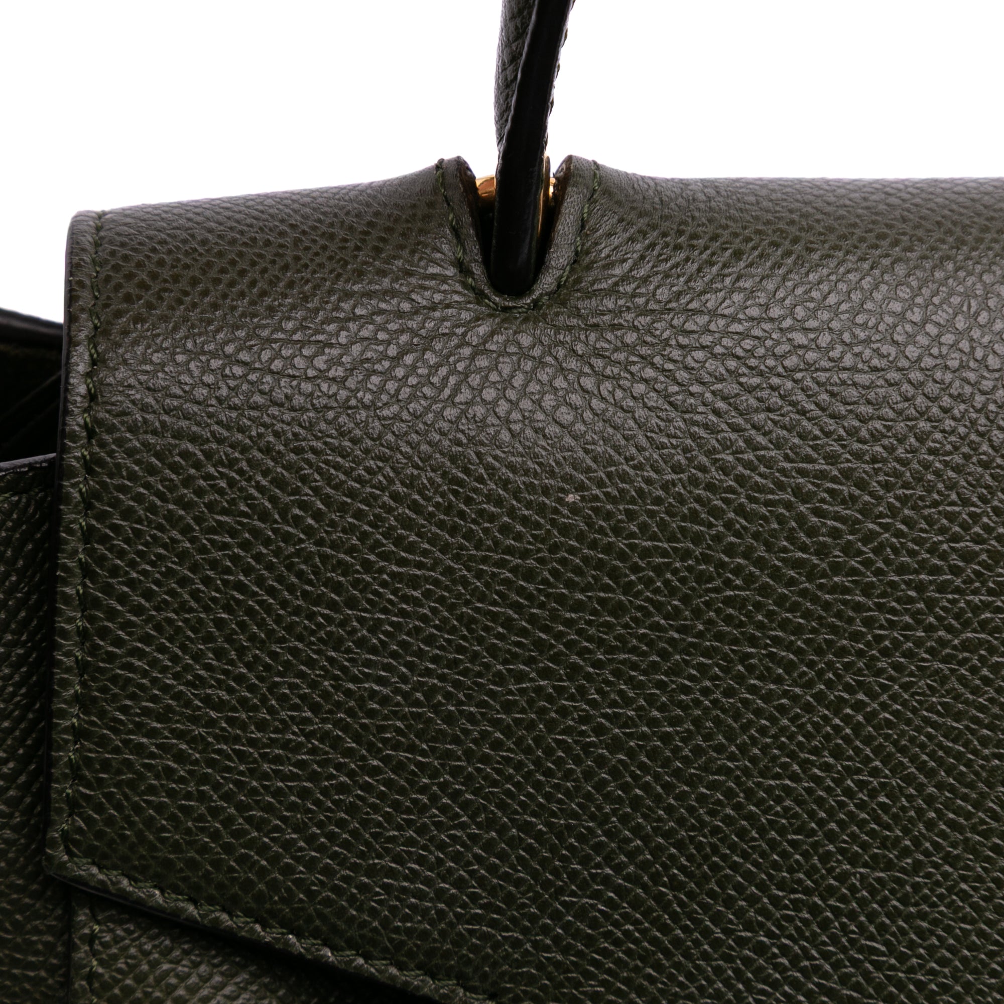 The Belt bag features a leather body, a flat leather handle, a detachable leather strap, a top flap with slip-through closure, and a top zip closure. Retail Price: 2700.00