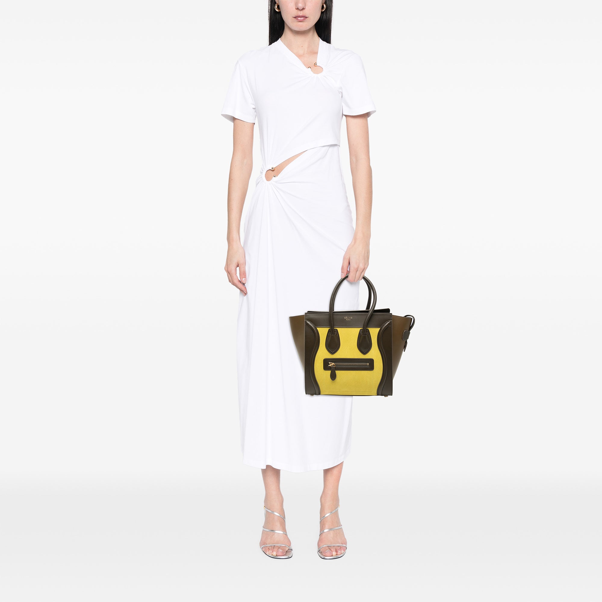 The Luggage Tote features a leather body, rolled leather handles, a top zip closure, an exterior front zip pocket, and an interior zip pocket. Inclusion: Dust bag. Retail Price: 3300.00
