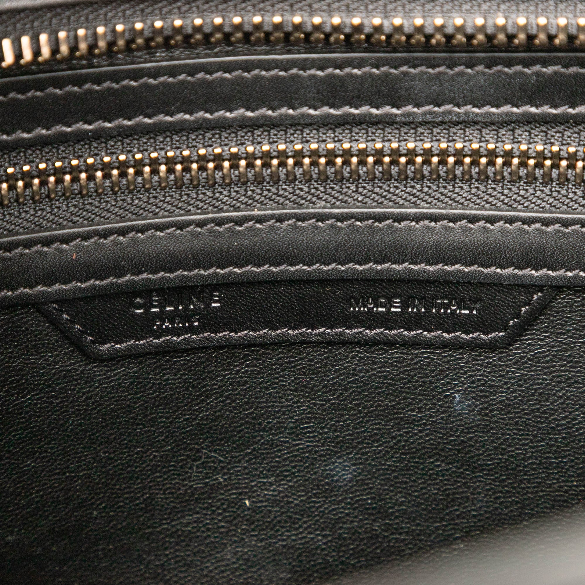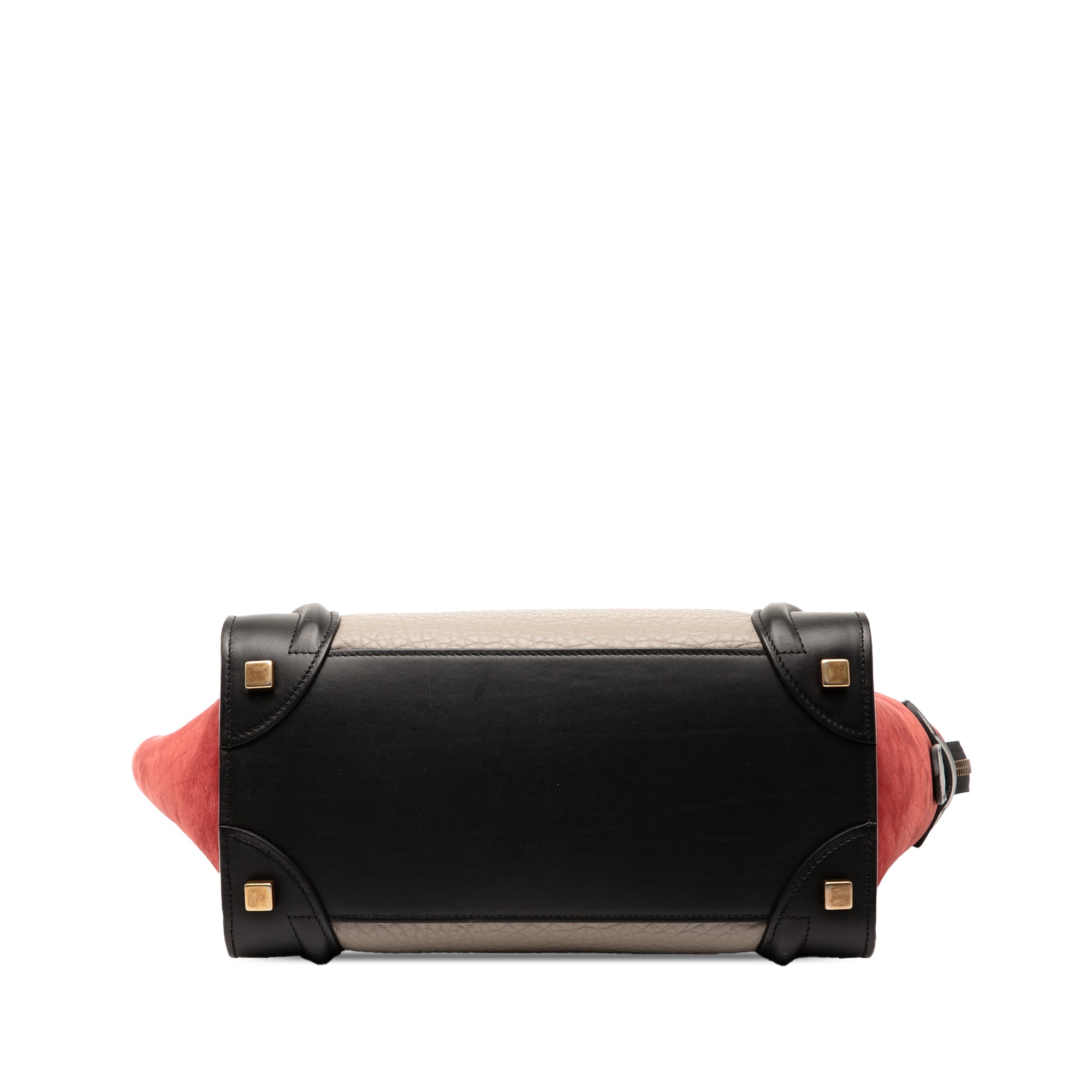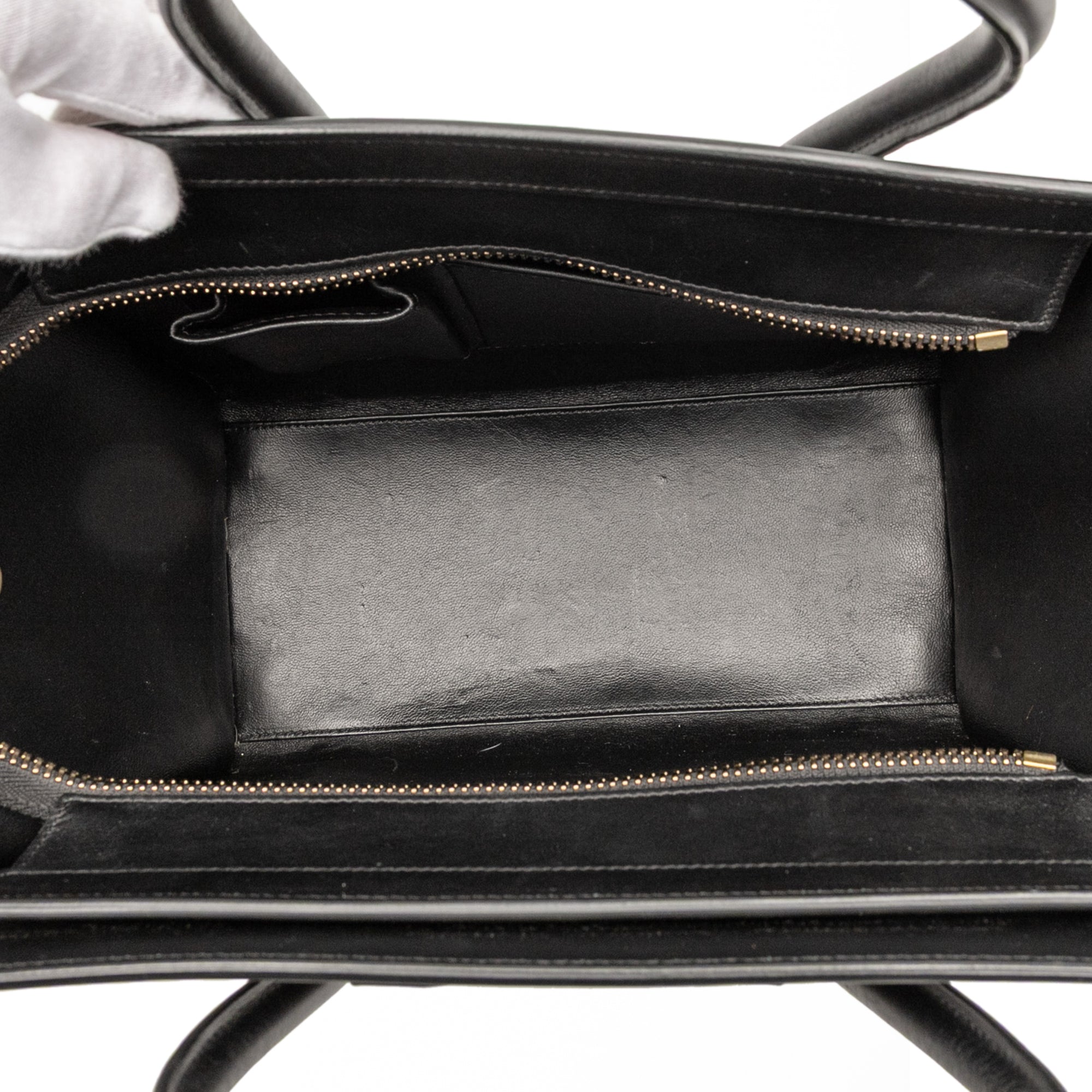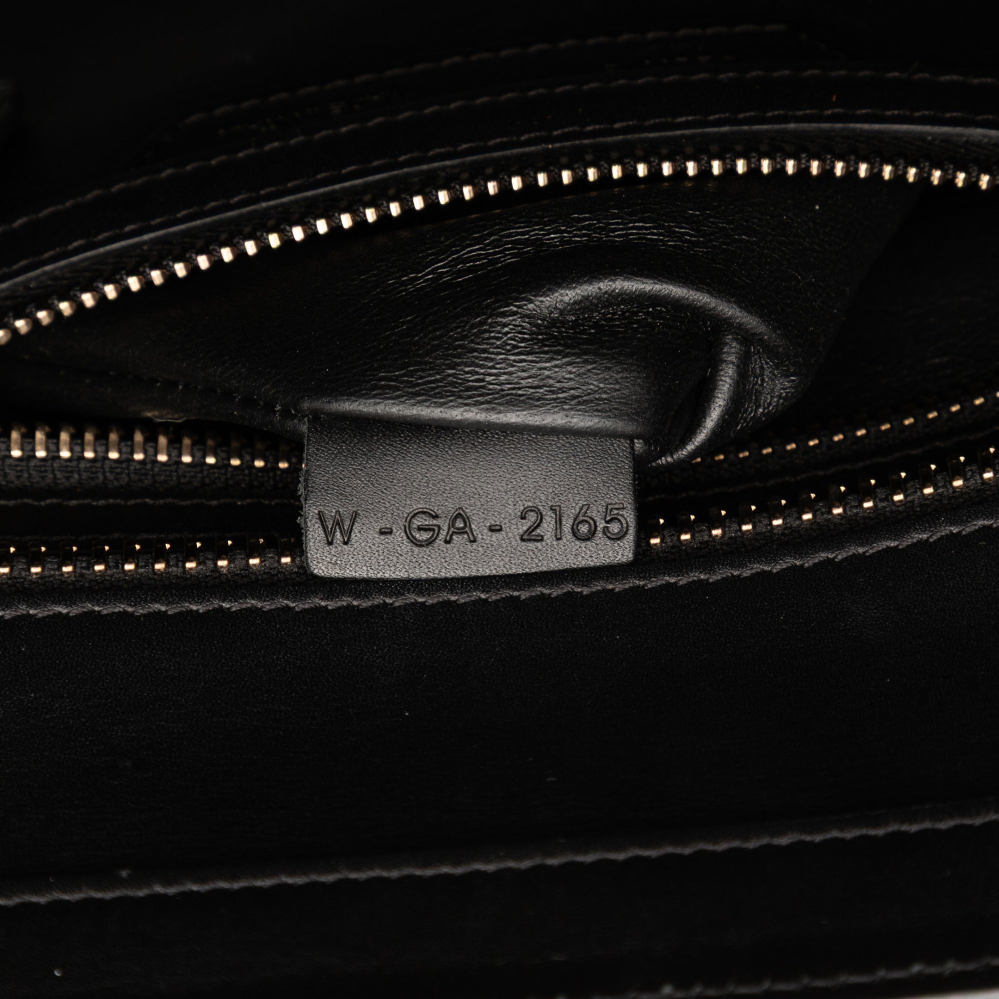 The Micro Luggage handbag features a leather body, rolled leather handles, top zip closure, and exterior front zip pocket, an interior zip pocket. Retail Price: 2875.00