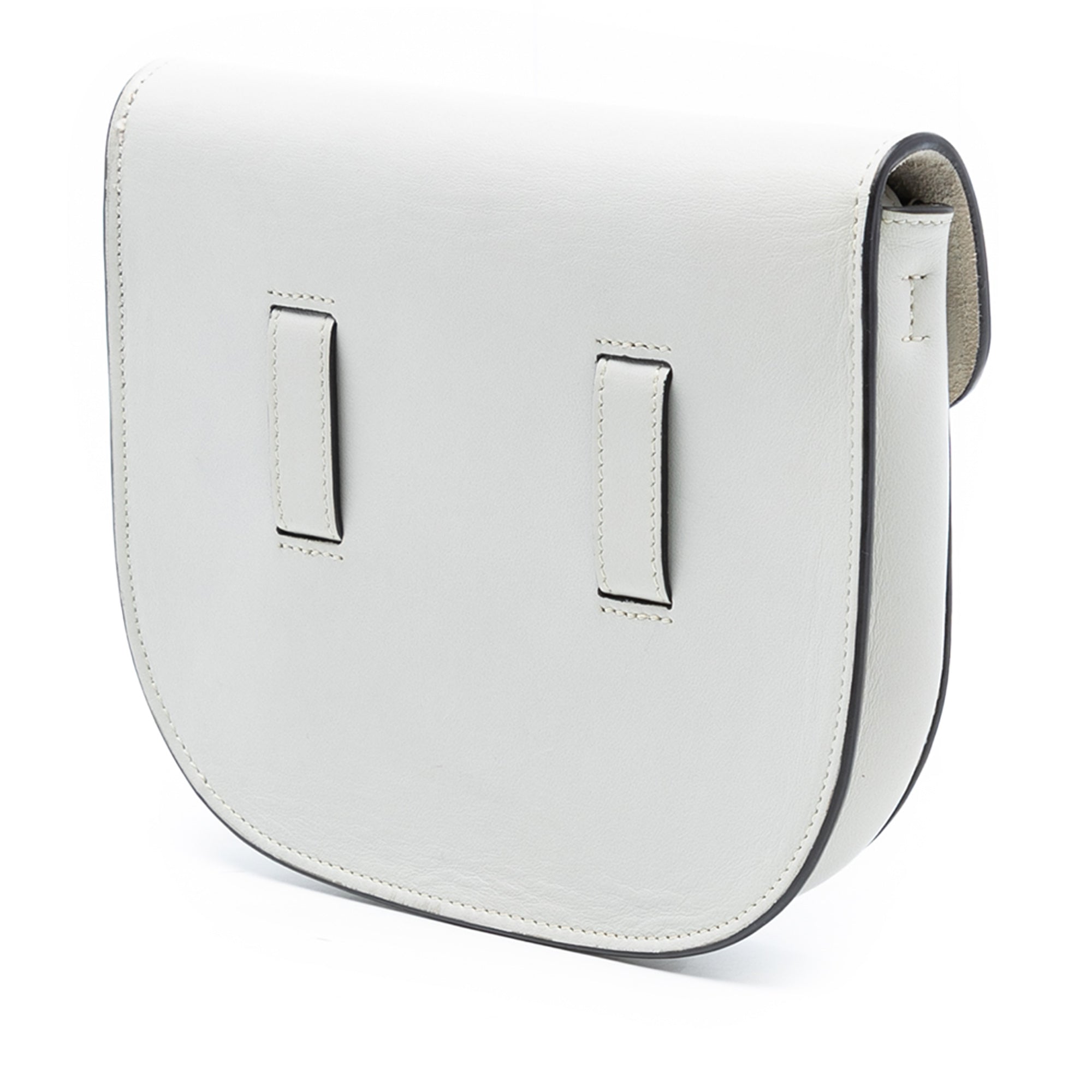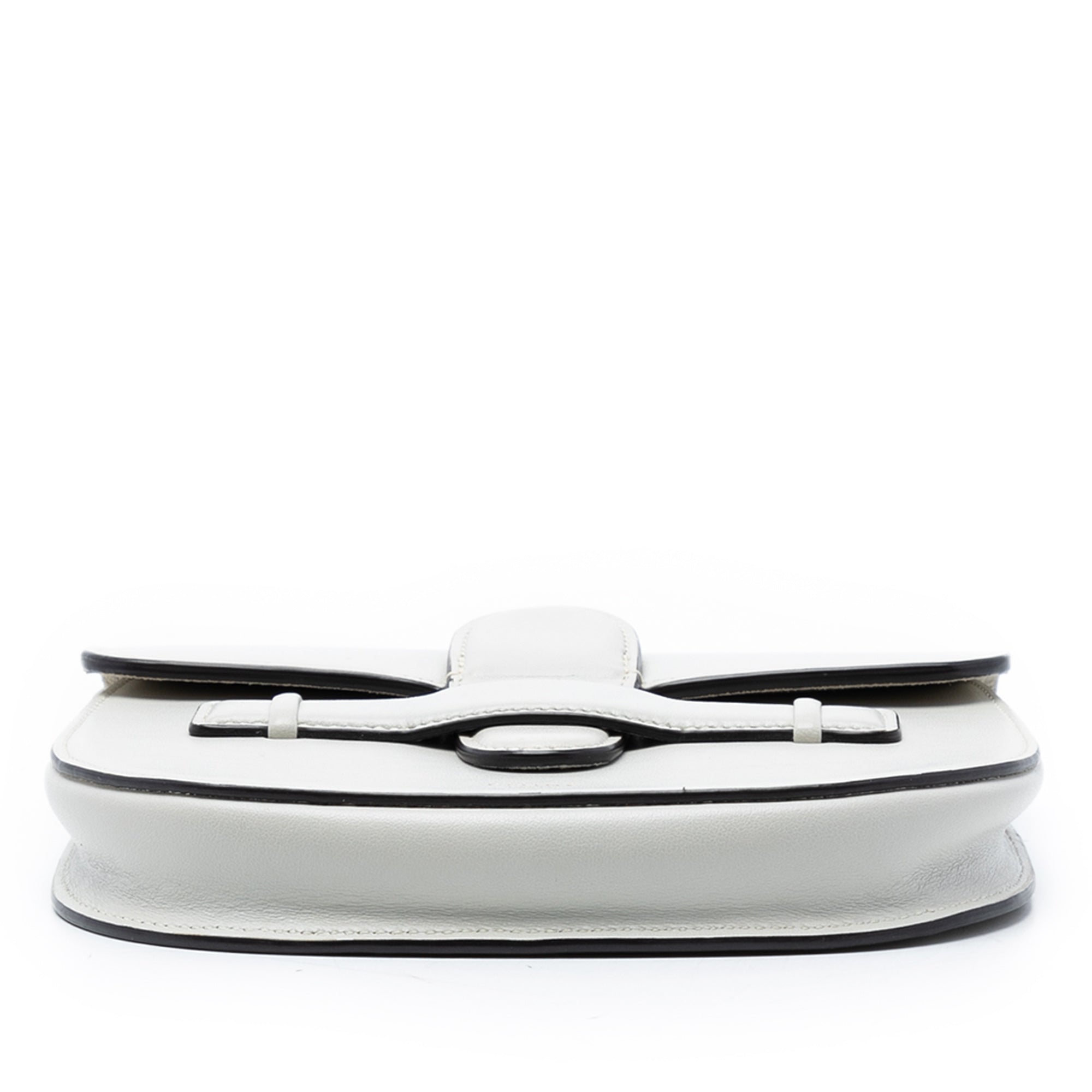 The Symmetrical bag features a calf leather body, a flat adjustable leather strap, a top flap tuck closure, and an interior slip pocket. Retail Price: 860.00