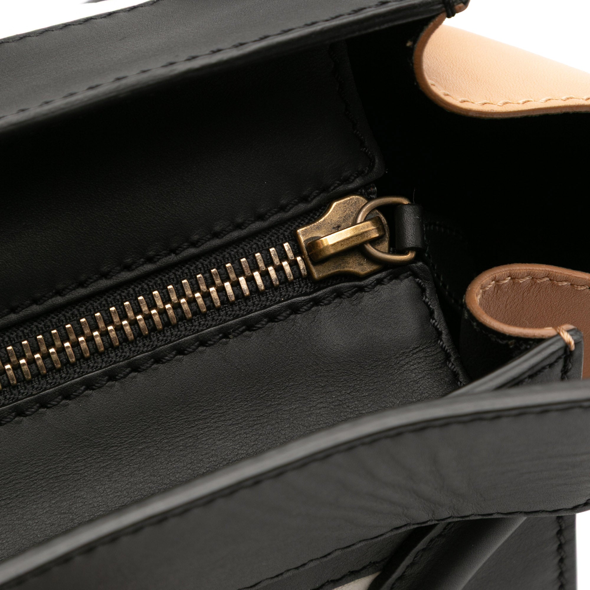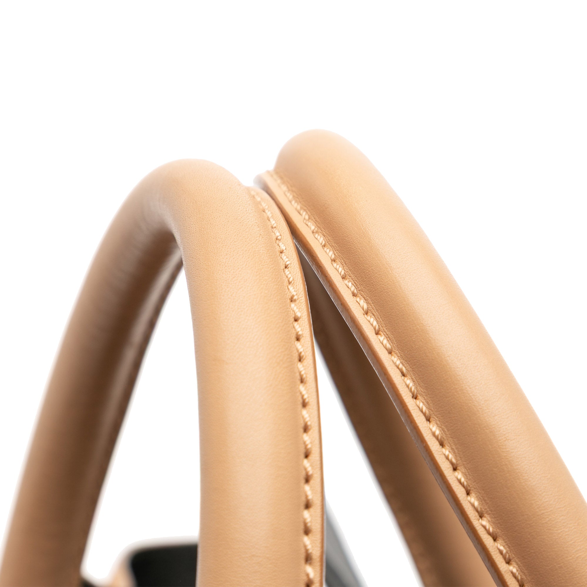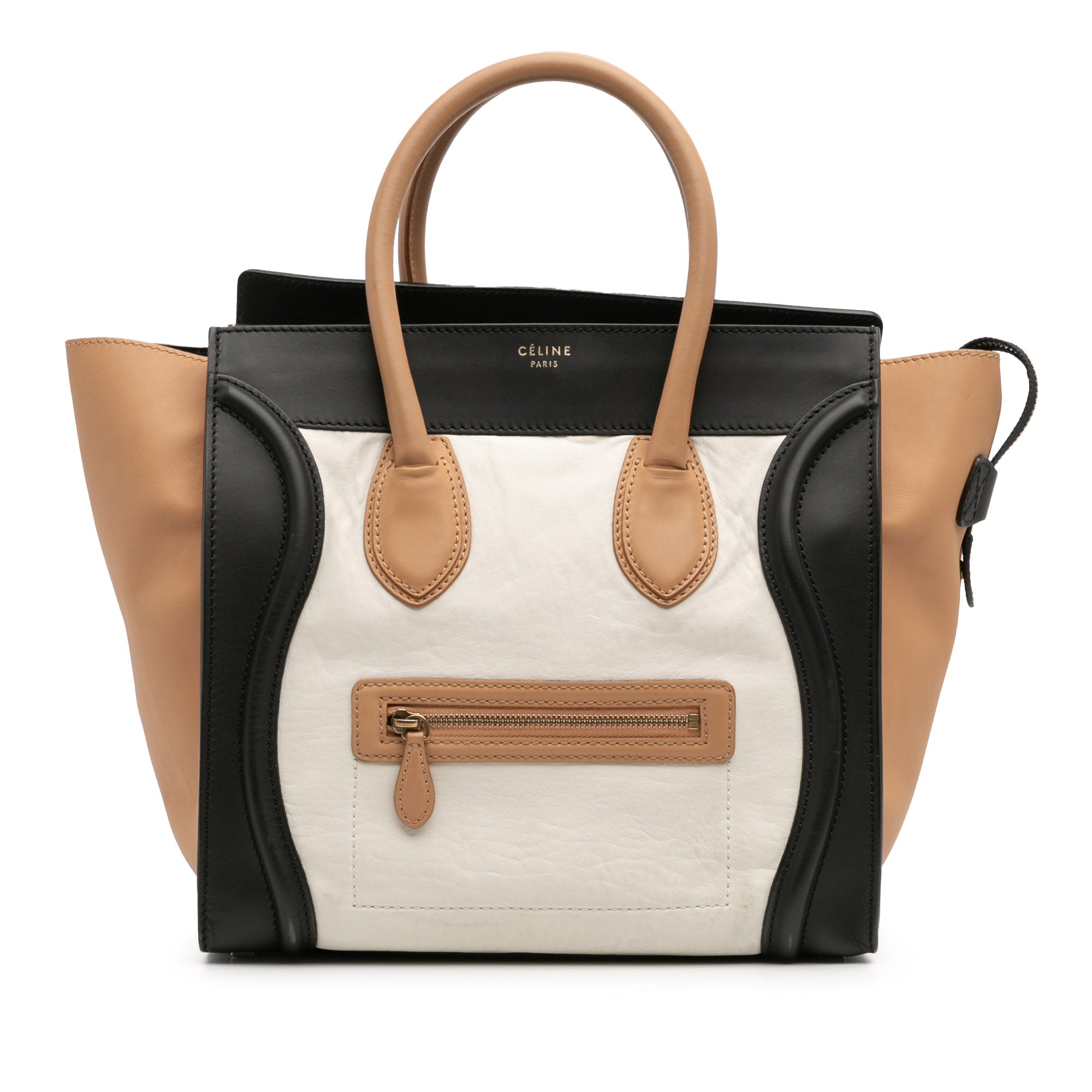The Mini Luggage Tote features a leather body, an exterior front zip pocket, rolled leather handles, a top zip closure, an exterior front zip pocket, and interior zip and slip pockets. Retail Price: 3100.00