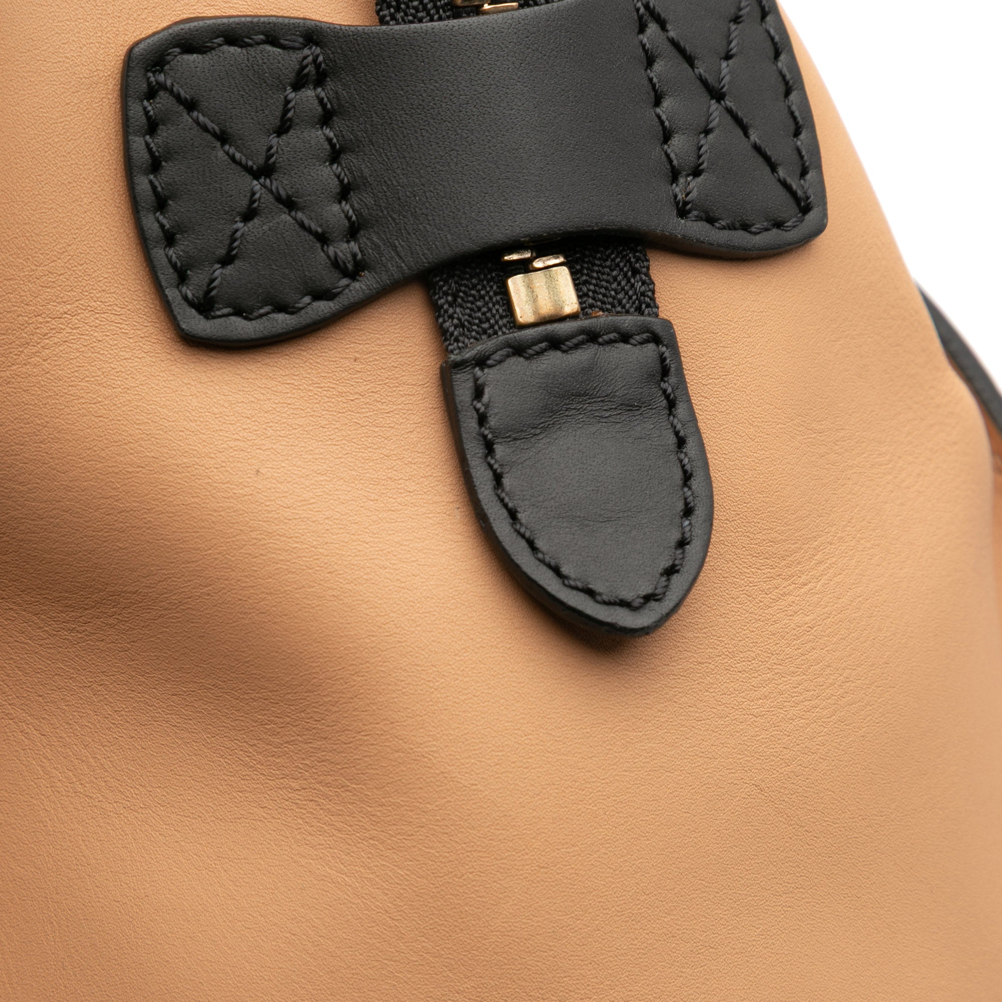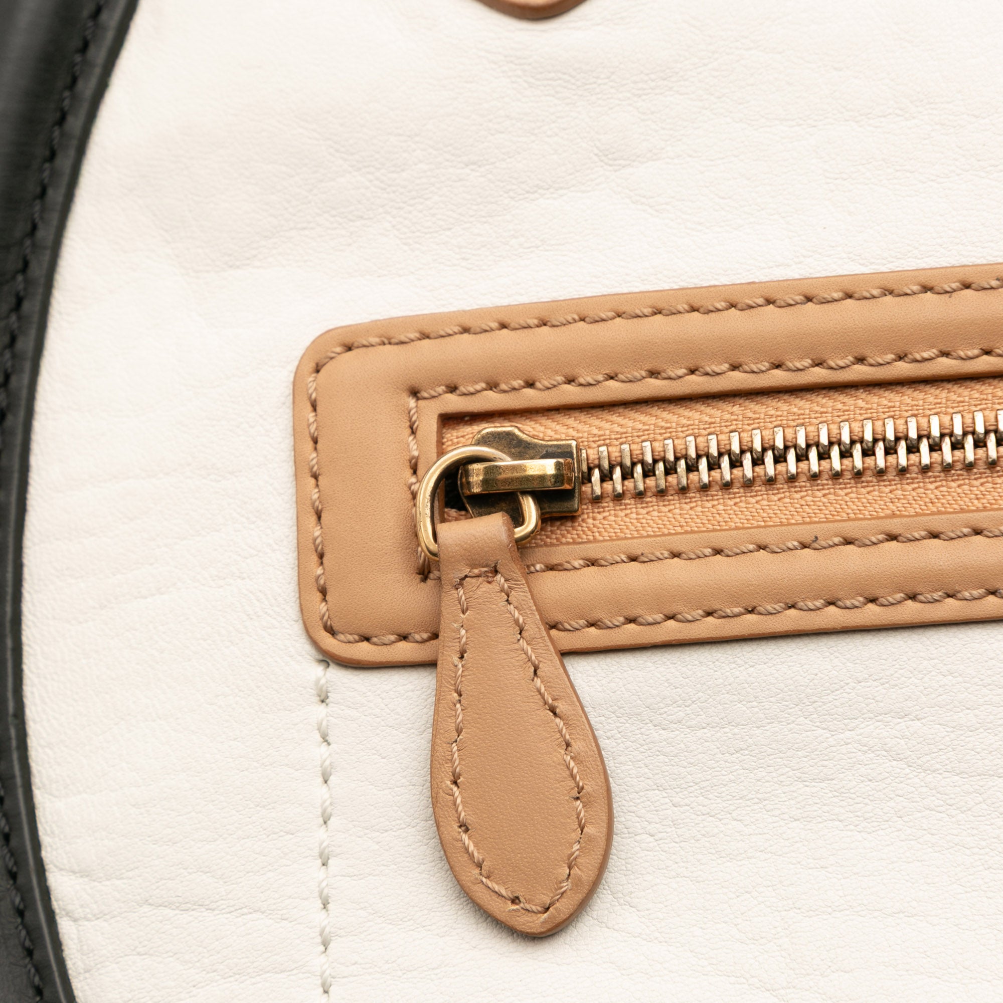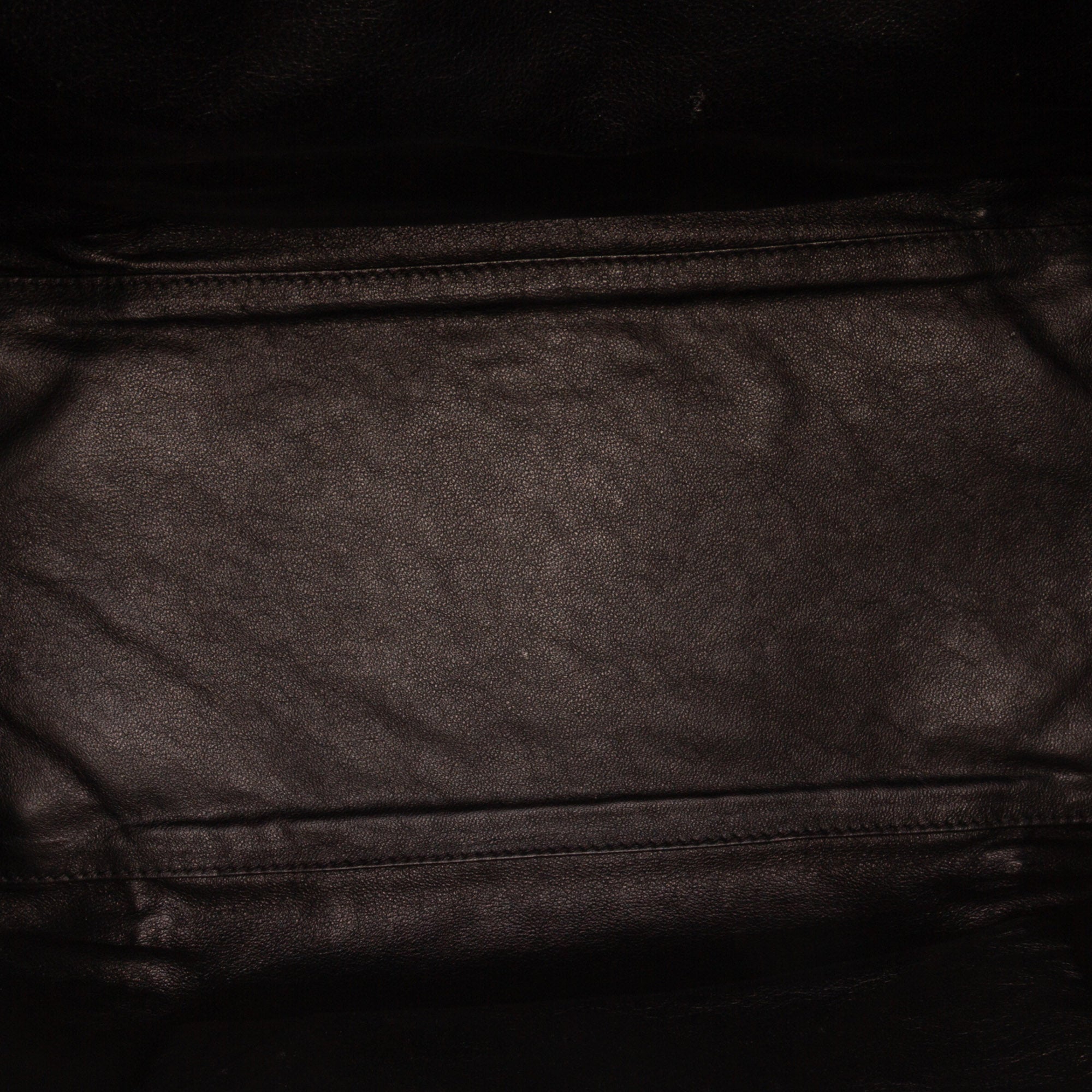 The Mini Luggage Tote features a leather body, an exterior front zip pocket, rolled leather handles, a top zip closure, an exterior front zip pocket, and interior zip and slip pockets. Retail Price: 3100.00