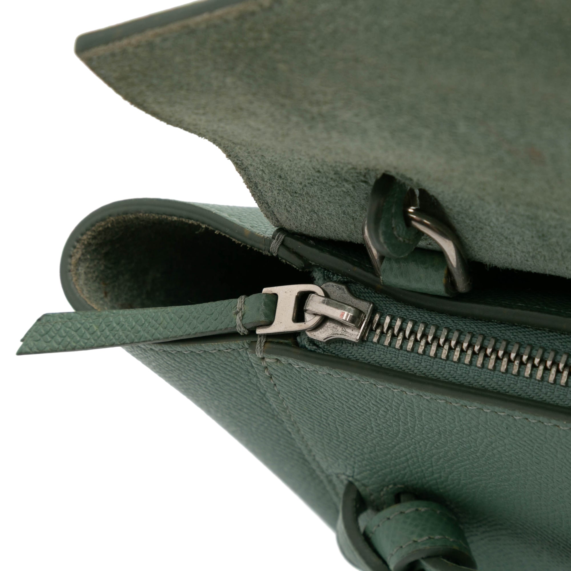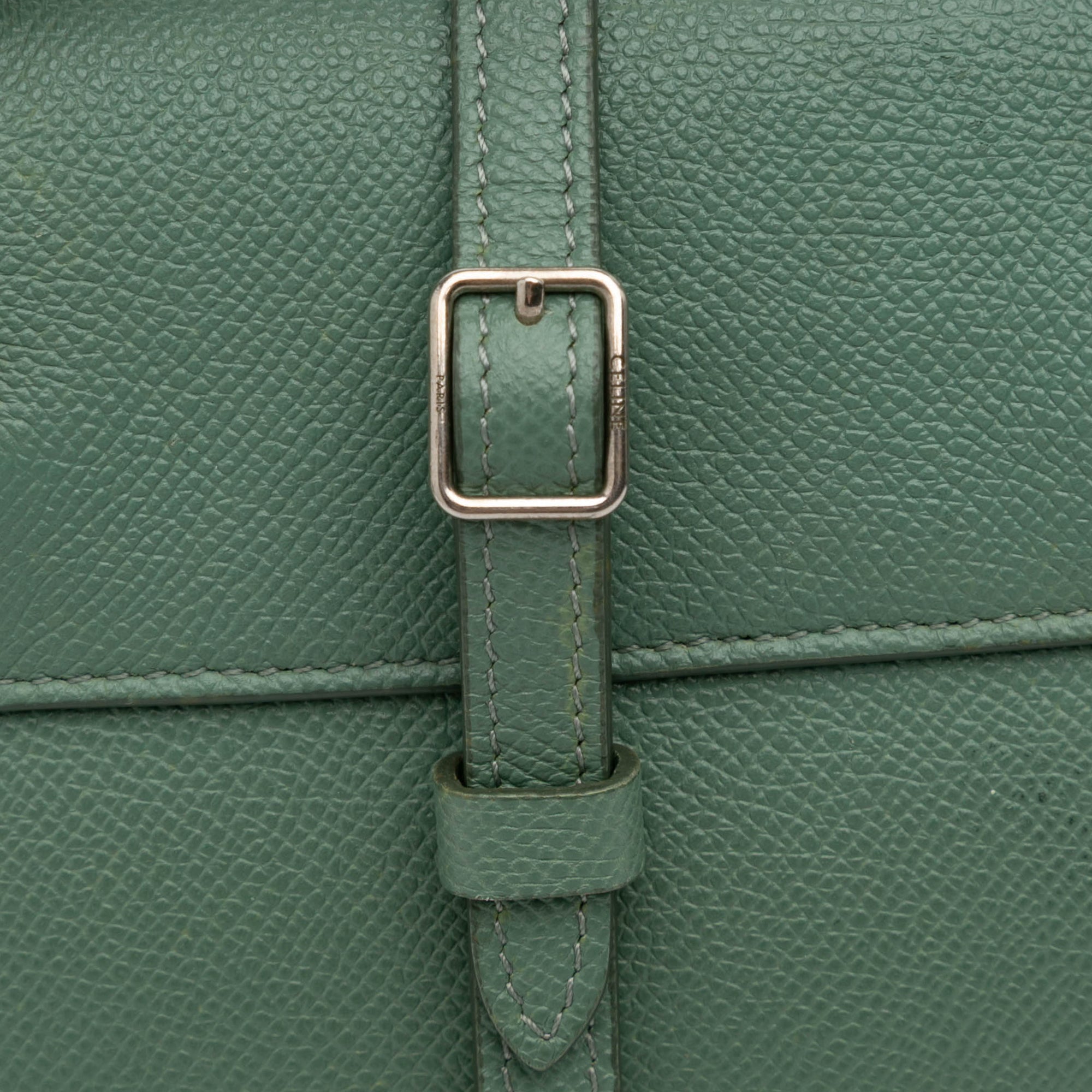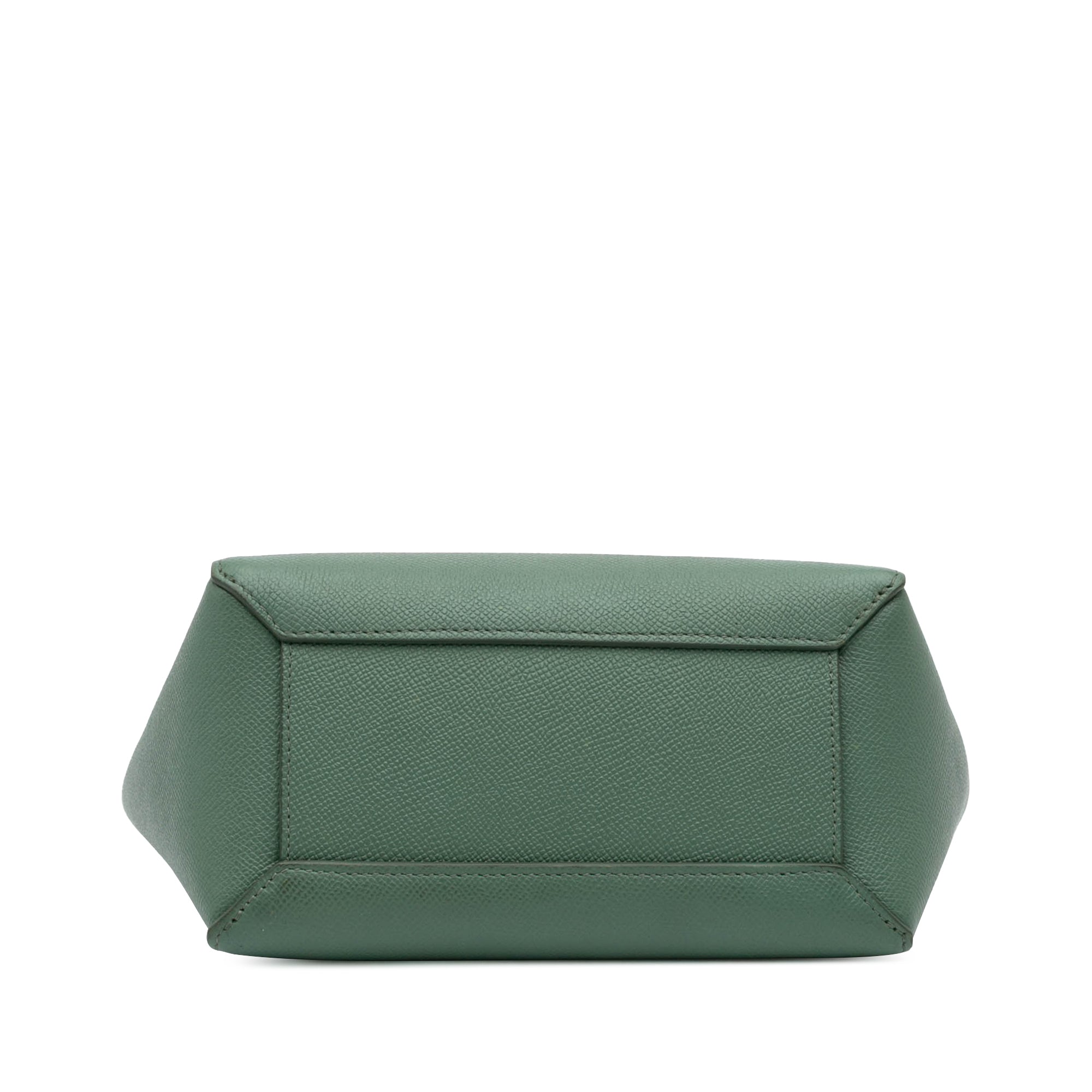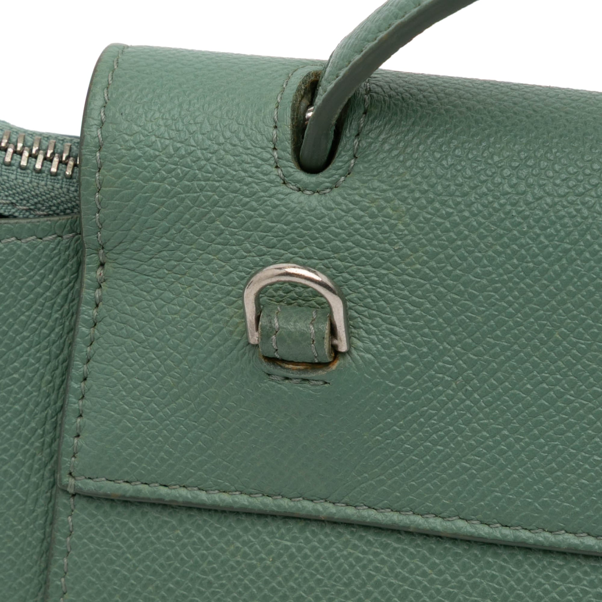 The Belt satchel features a leather body, a flat leather top handle, a detachable flat leather strap, a front flap with magnetic snap closure, and a top zip closure. Retail Price: 2450.00