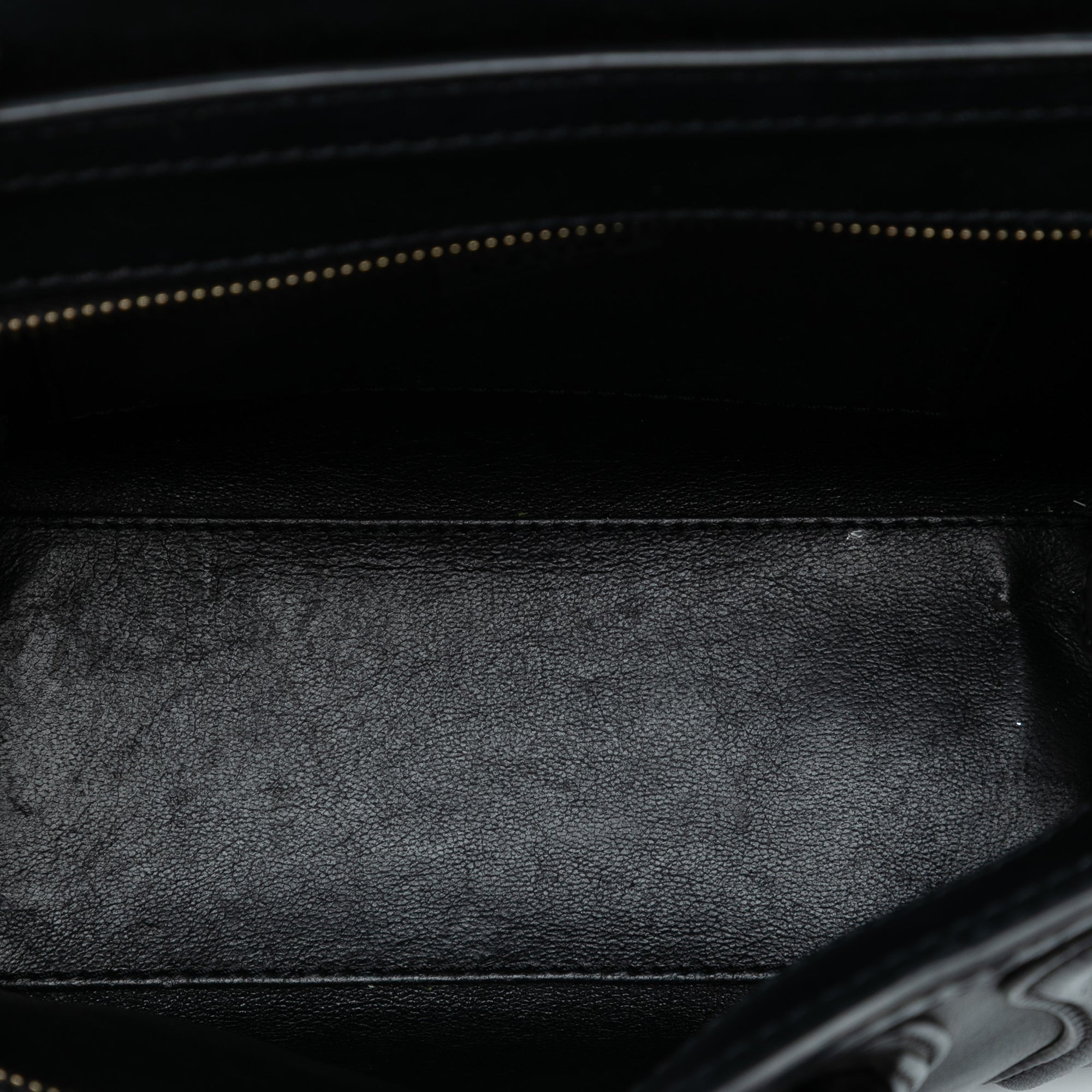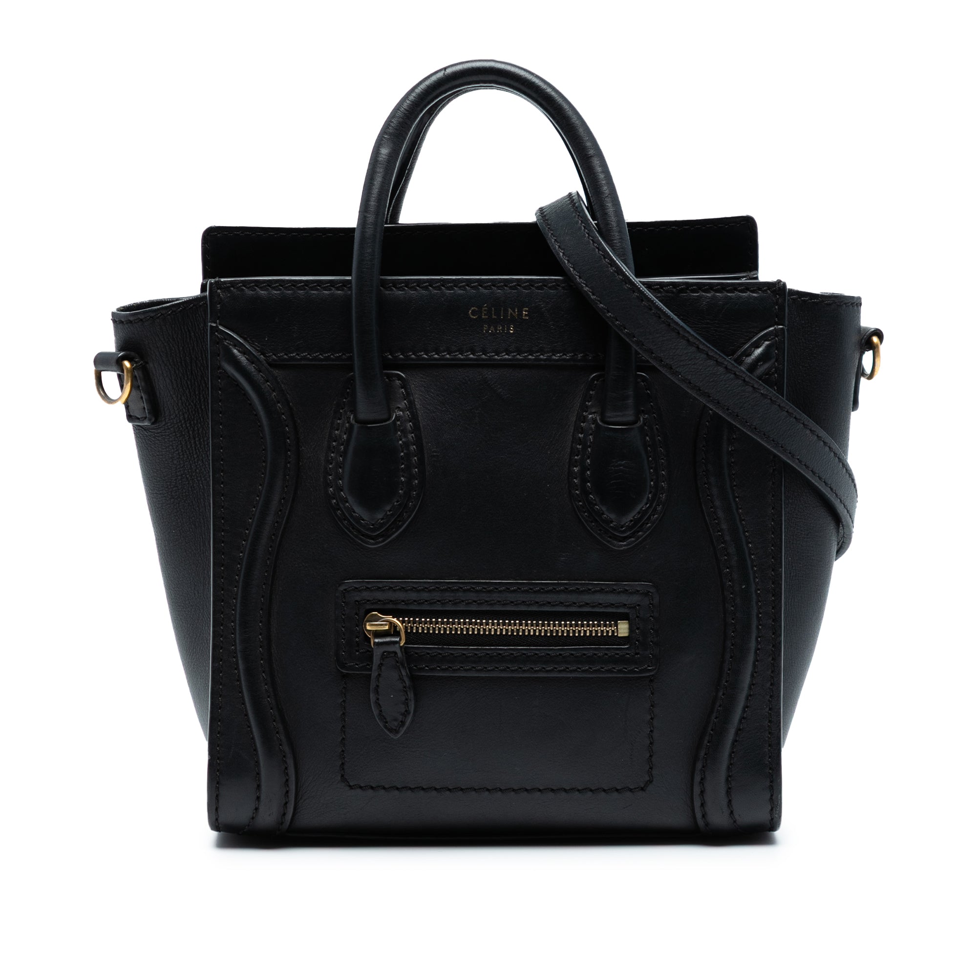 The Luggage Tote features a leather body, rolled leather top handles, a detachable flat shoulder strap, a top zip closure, an exterior front zip pocket, and an interior slip pocket. Retail Price: 2800.00