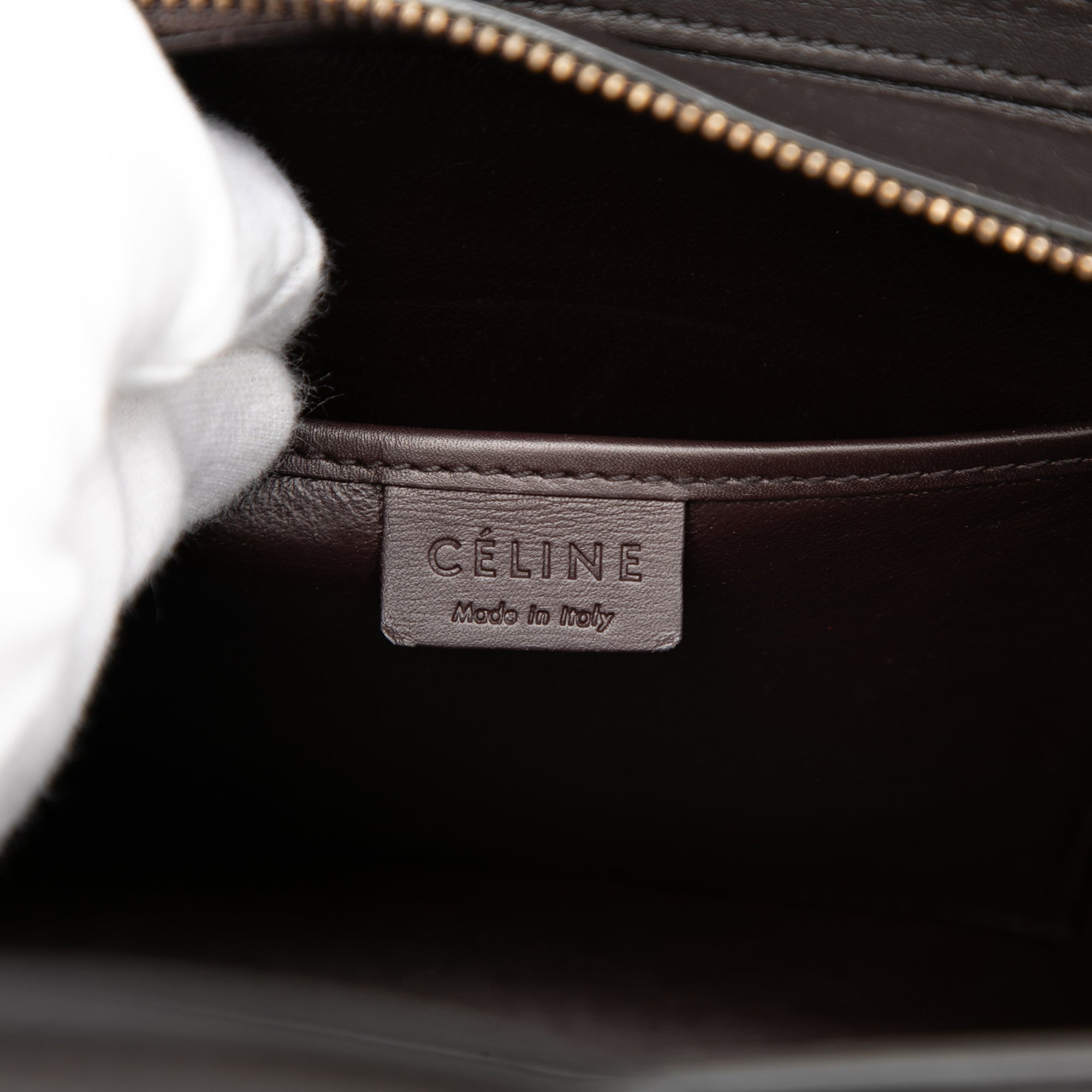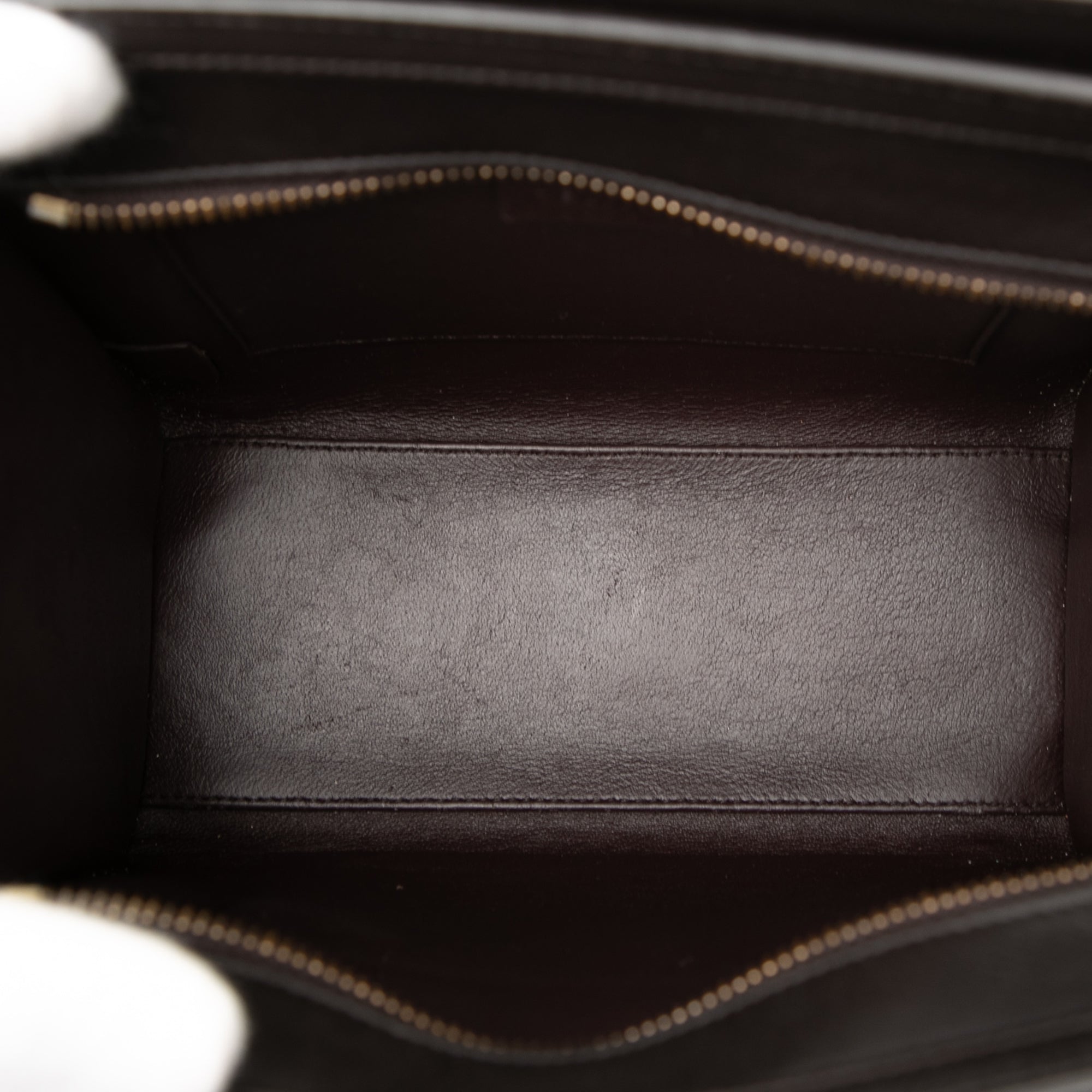 The Luggage tote features a tricolor leather body, rolled leather handles, a detachable flat leather shoulder strap, a top zip closure, an exterior front zip pocket, and an interior slip pocket. Retail Price: 2700.00