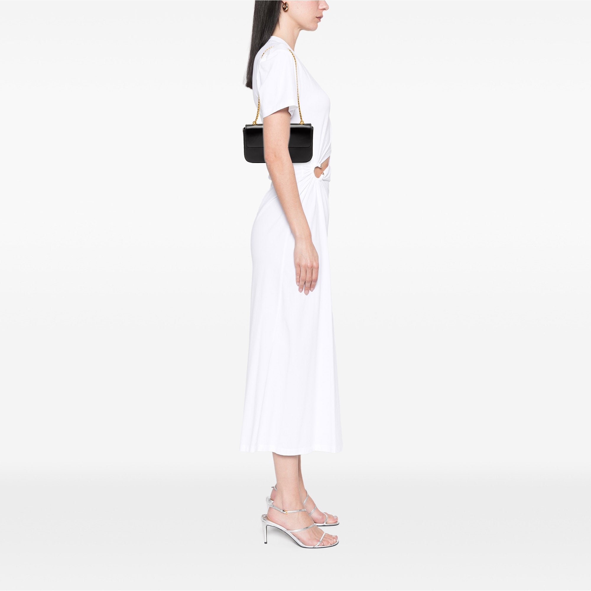 This shoulder bag features a leather body, a chain-link shoulder strap, a front flap with magnetic snap closure, and an interior slip pocket. Inclusion: Dust bag. Retail Price: 3450.00