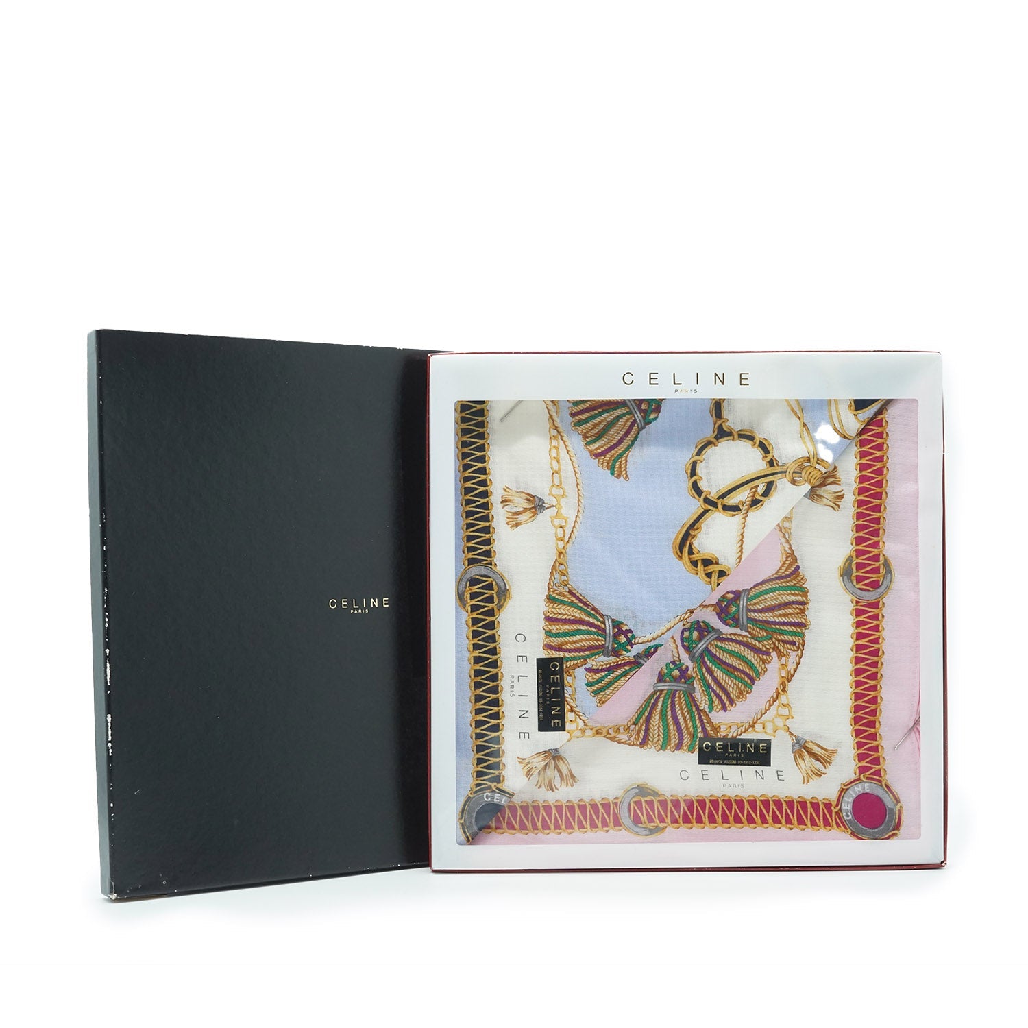 Set of 2 Silk HandkerchiefsHeight: 49cmWidth: 48.5cmStain: Some stains/humidity stains along the edgesWorn: Subtle signs of wear/prolonged storageOdor: Slight storage smellInclude: BoxSKU: 7030077
