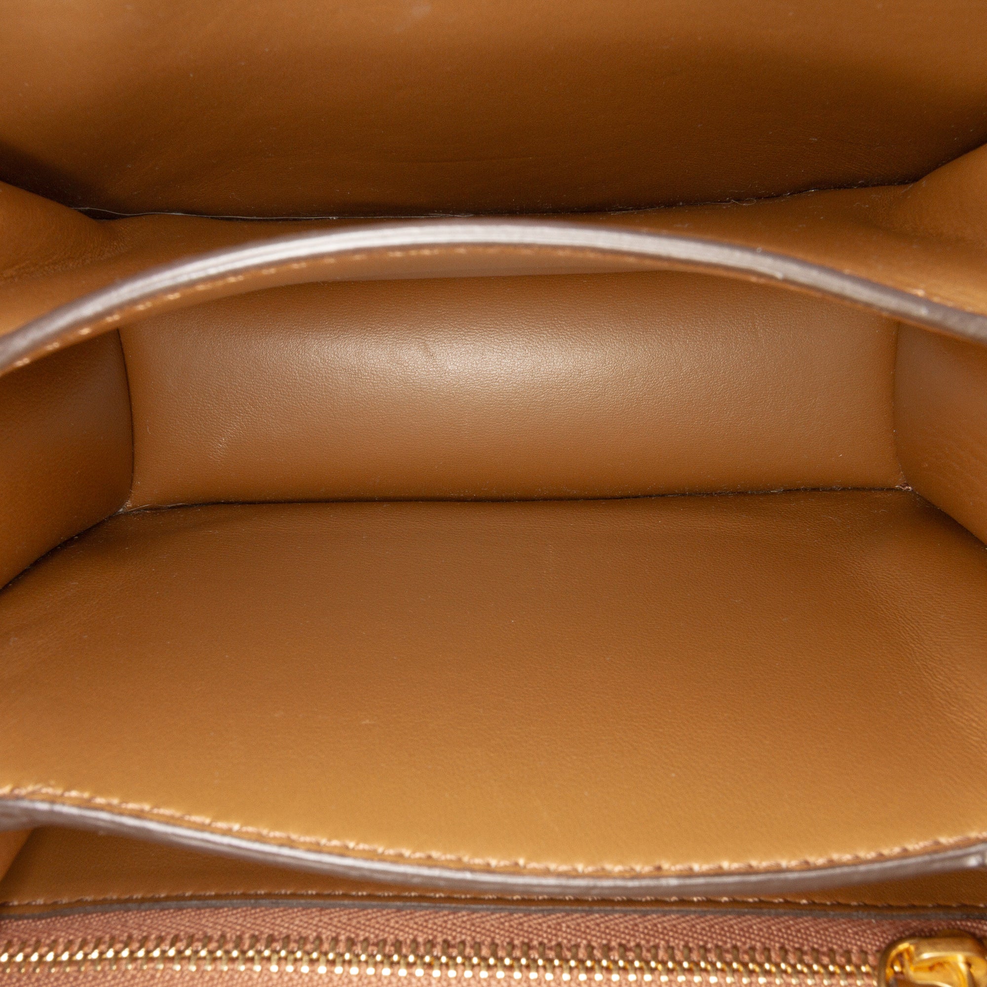 The Classic Box crossbody bag features a leather body, an adjustable and detachable flat leather strap, a front flap with a metal clasp closure, and interior zip and slip pockets. Retail Price: 3250.00