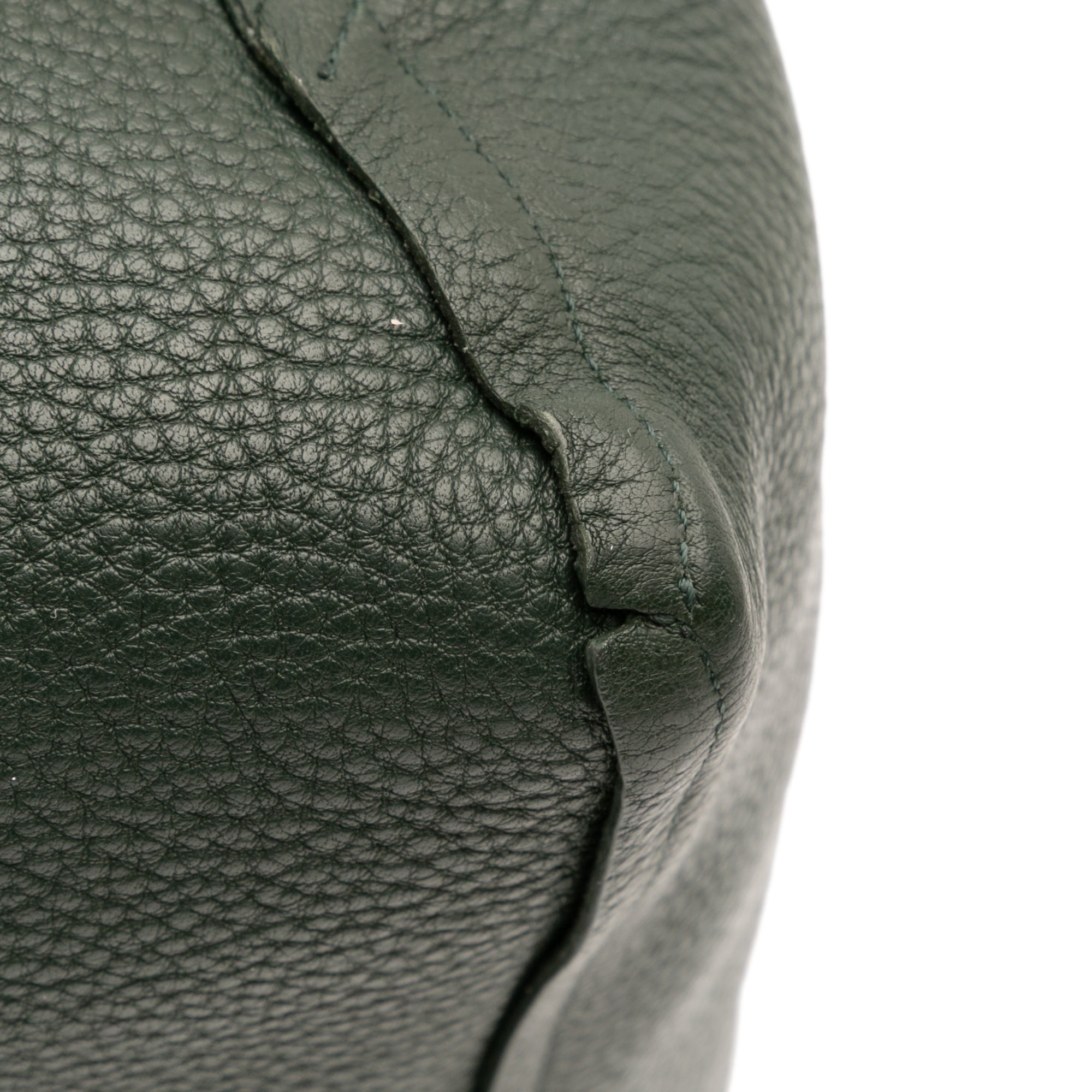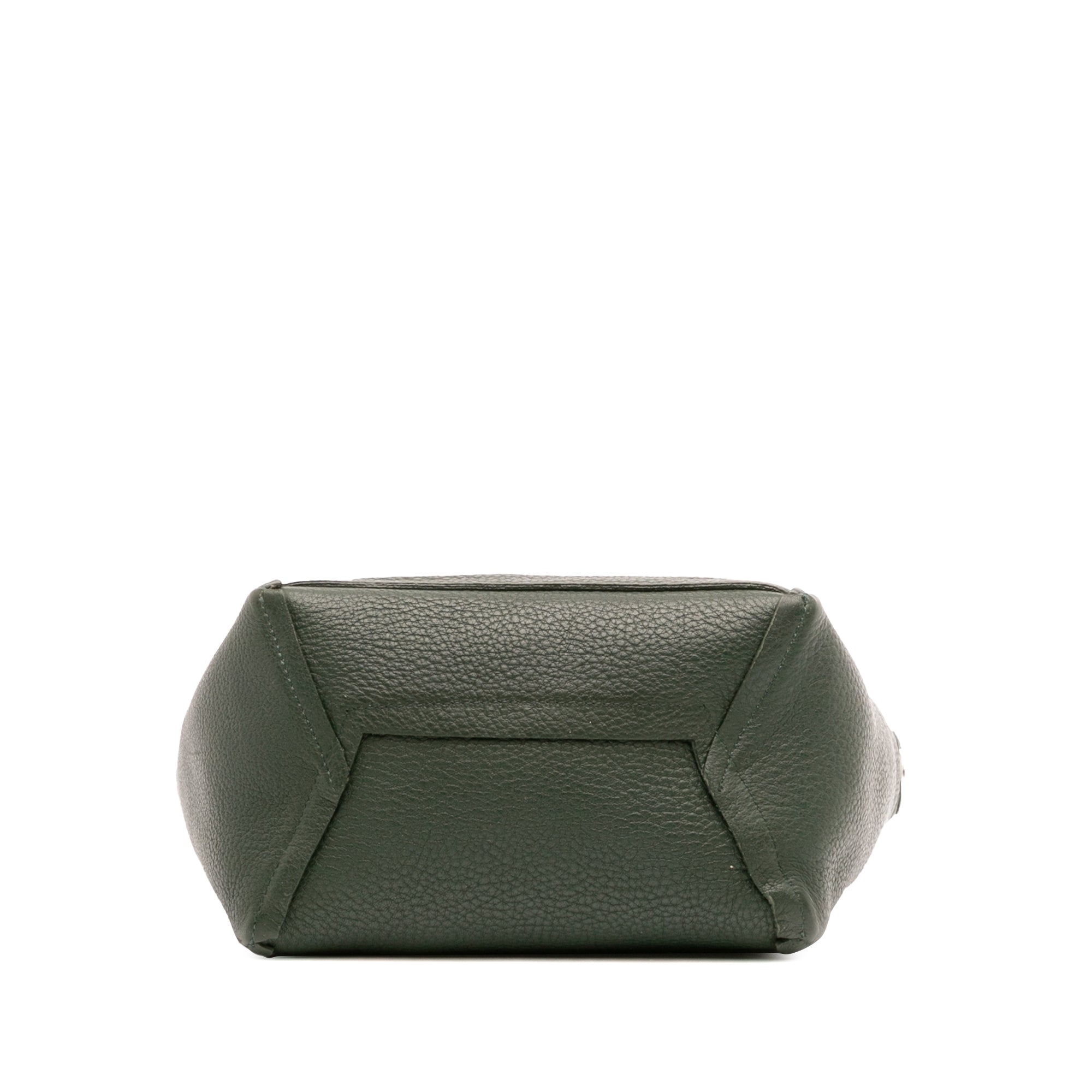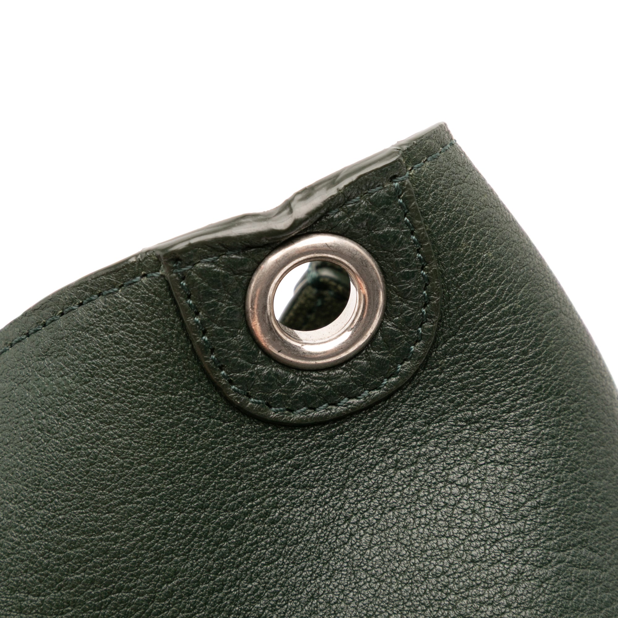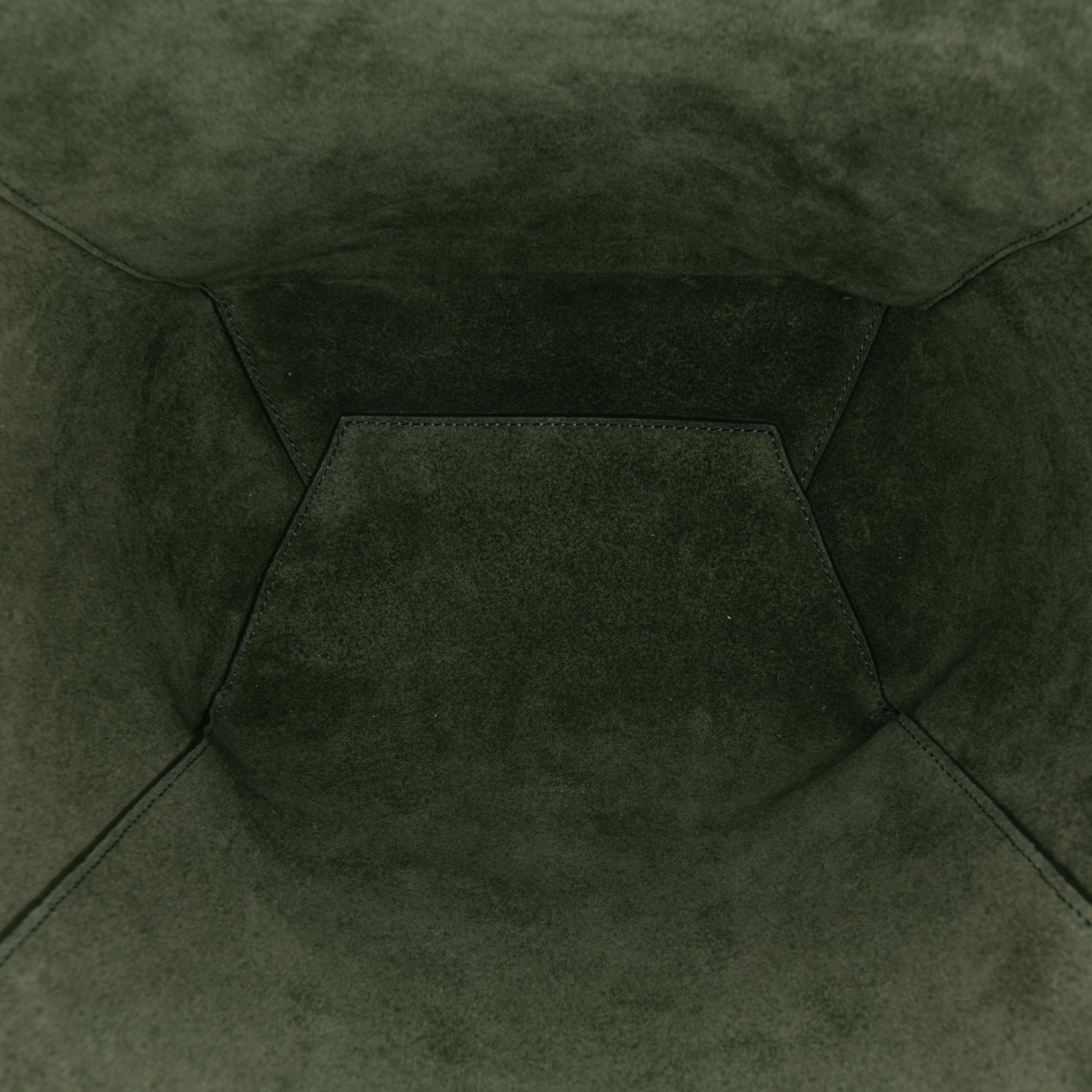The Seau Sangle features a leather body, a detachable flat canvas strap, an open top with hook closure, and exterior zip and slip pockets. Retail Price: 2100.00