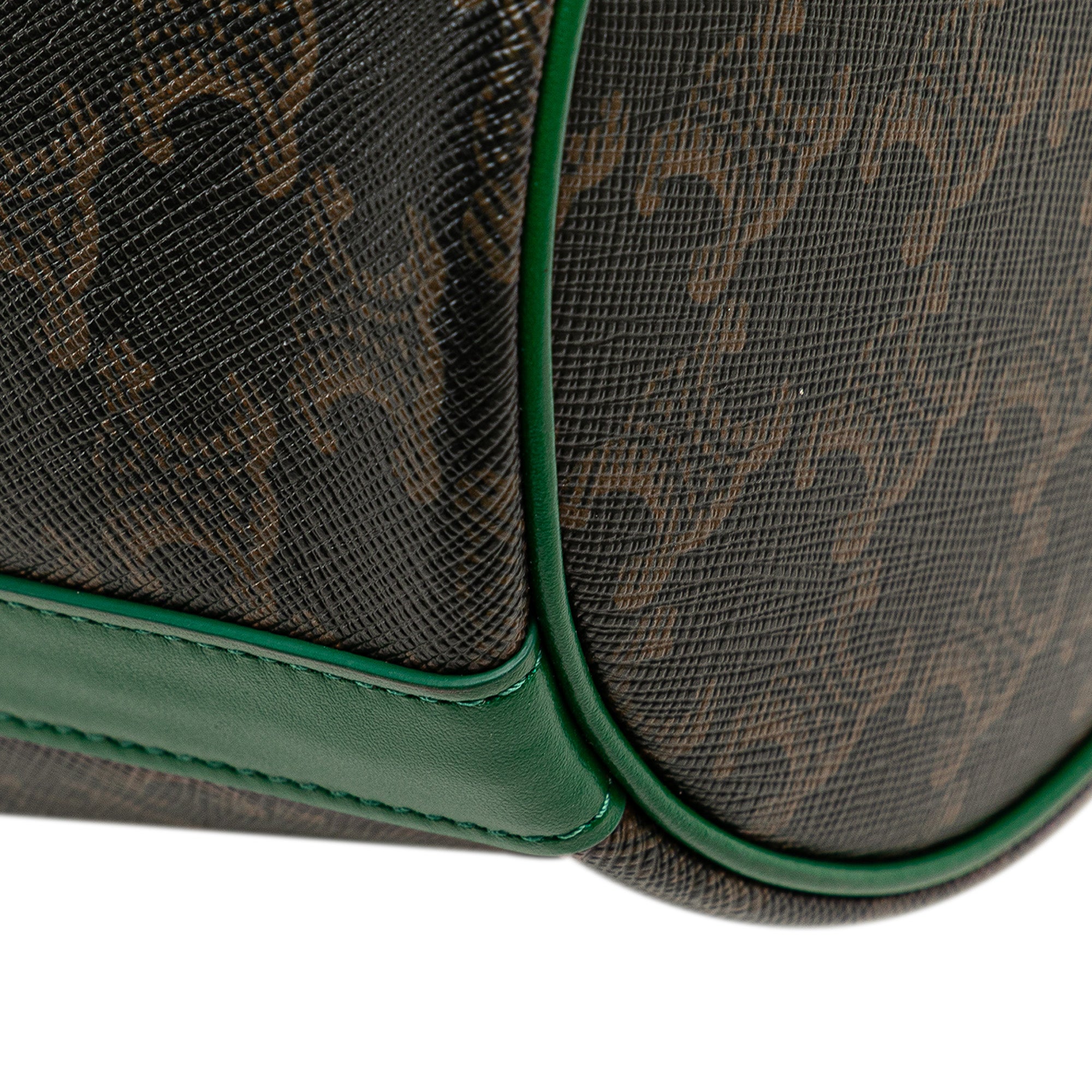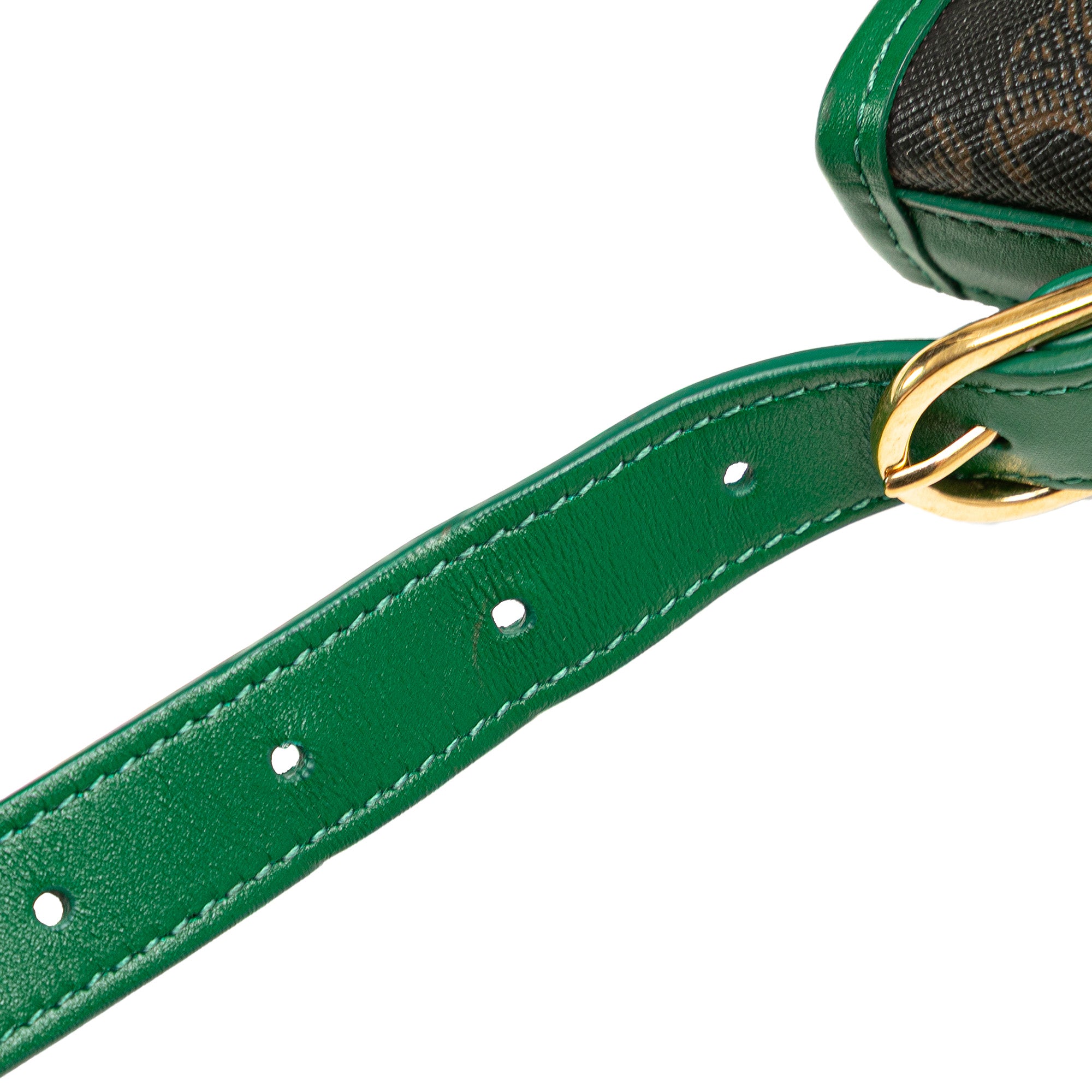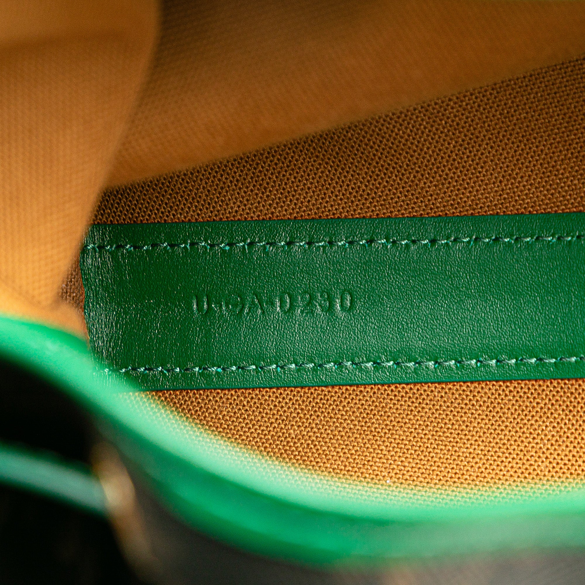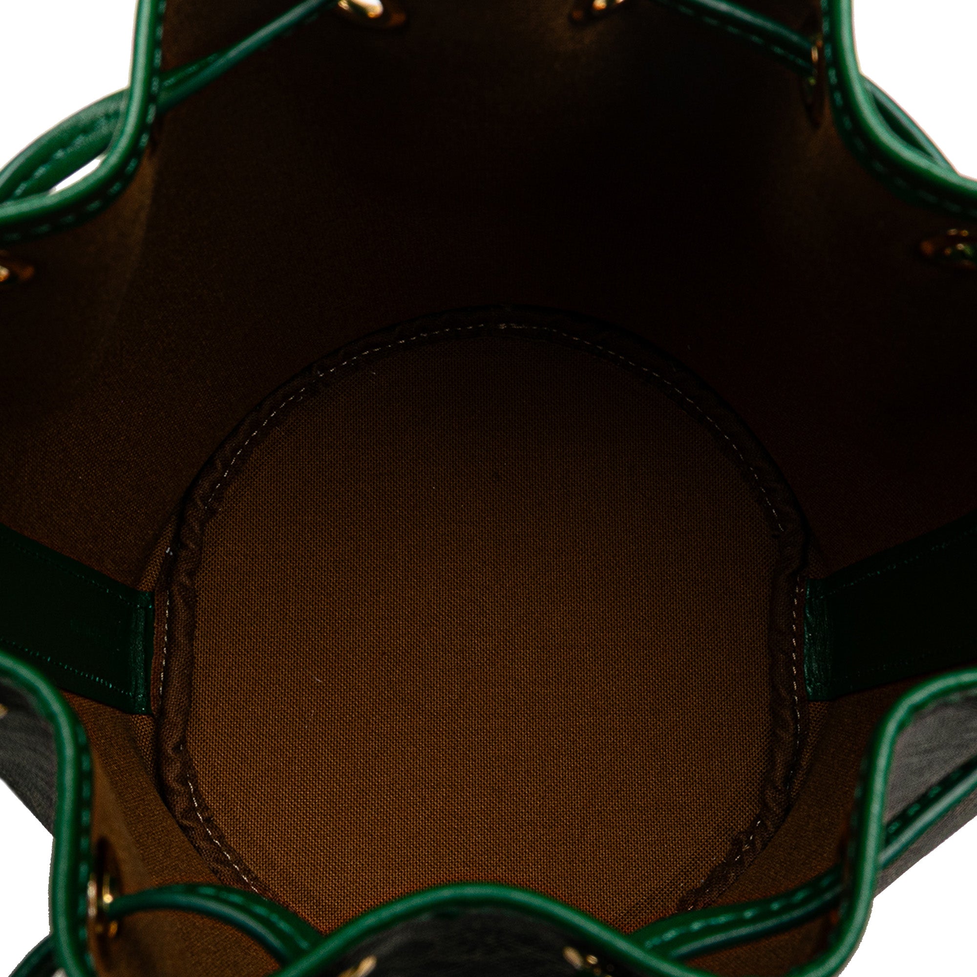 This bucket bag features a coated canvas body with leather trim, flat leather strap, and an open top with drawstring closure. Inclusion: Dust bag. Retail Price: 1900.00