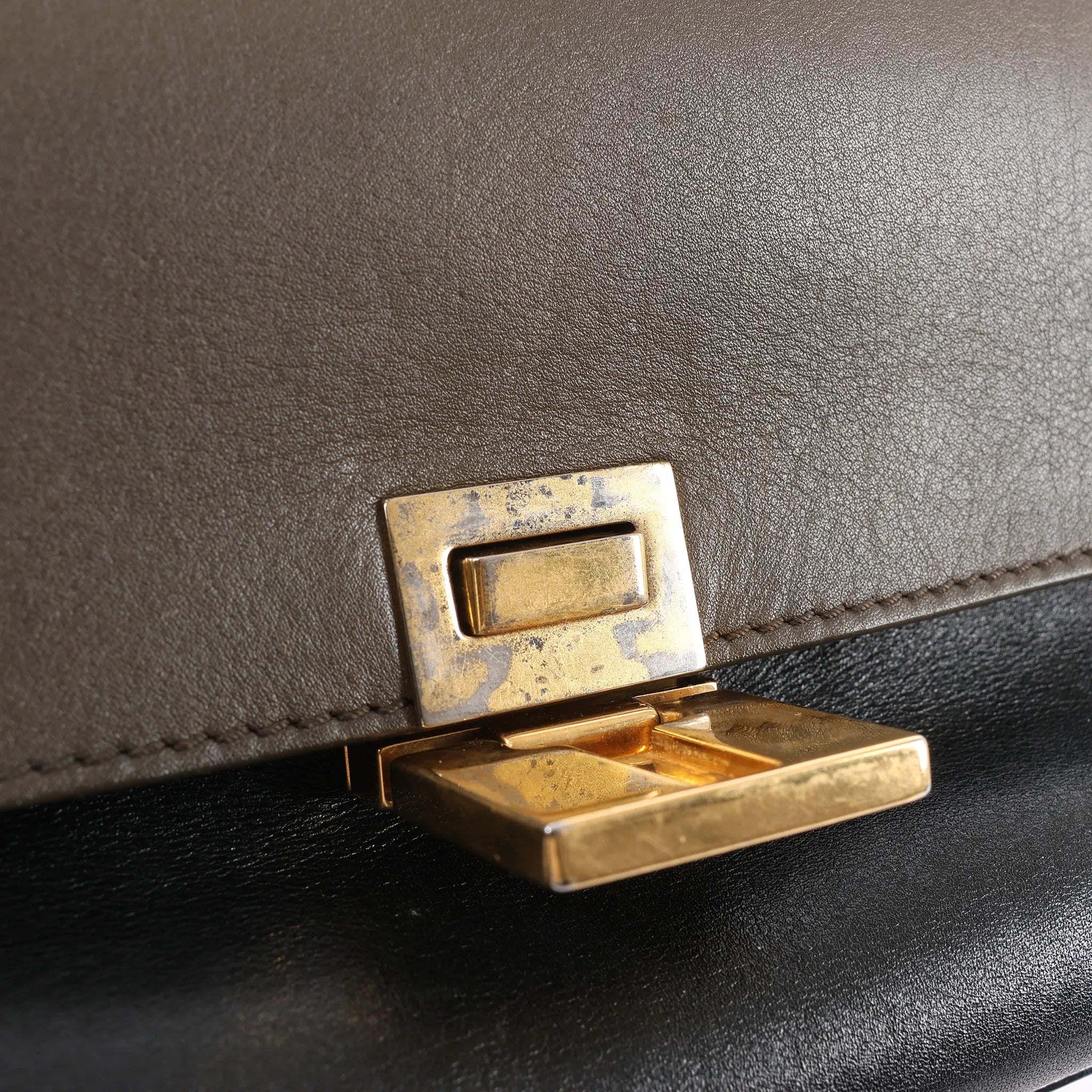 CELINE Trapeze Leather x Suede 2Way Handbag in Brown x Navy Blue x Black