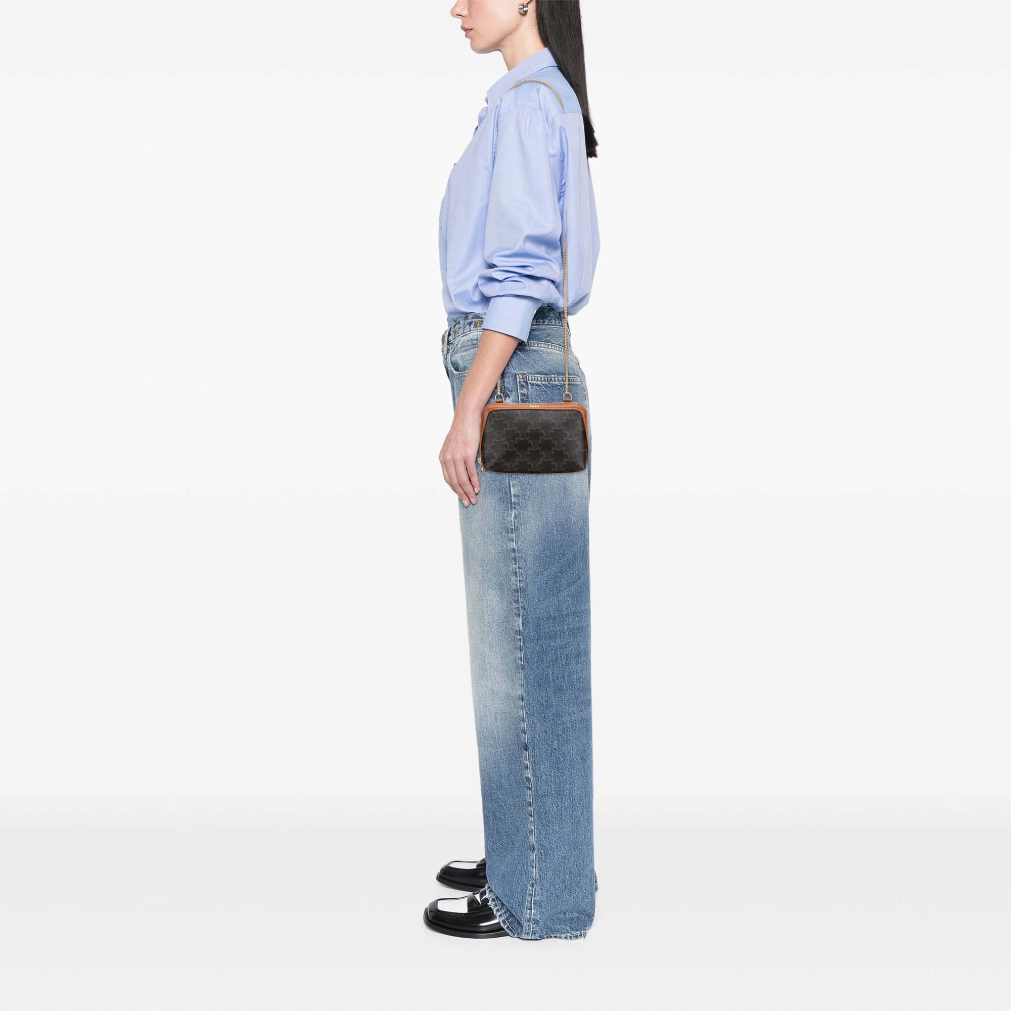 Celine Triomphe Coated Canvas Clutch On Chain