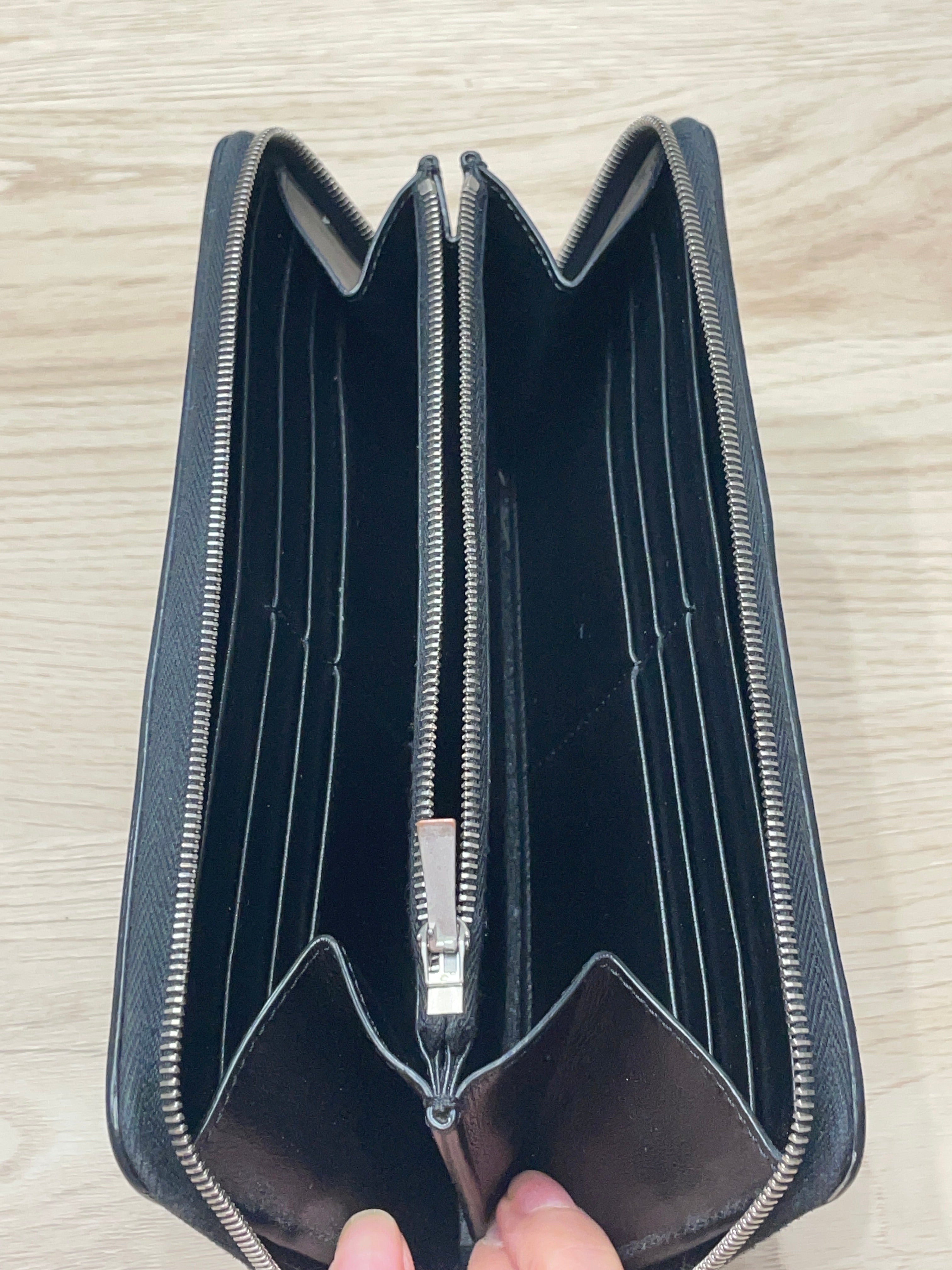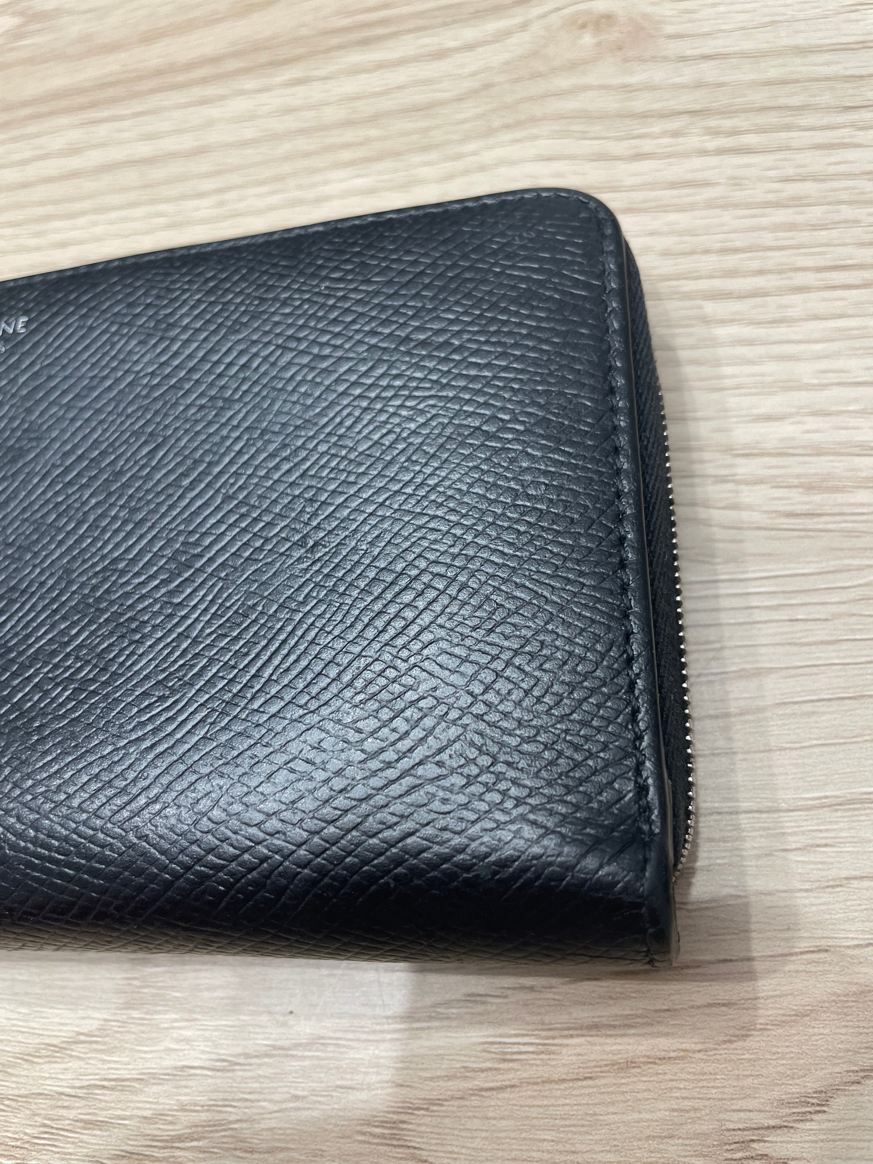 Céline black grained leather wallet. 19 X 10 X 2 CM (7 X 4 X 1 IN). IN VEAL. CALF LINING. SILVER FINISH. ZIPPER CLOSURE. TWO GUESSED COMPARTMENTS. TWELVE CREDIT CARD SLOTS. A ZIPPED POCKET. TWO FLAT POCKETS. Signed Céline Paris on the front (the Paris is slightly erased). very good general condition. With dustbag. shop value 570€