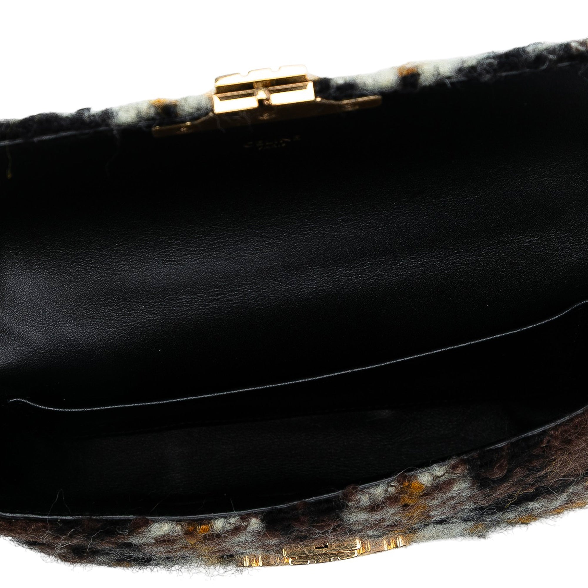This shoulder bag features a wool body, a chain link strap, a front flap with push-lock closure, and an interior slip pocket. Inclusion: Dust bag. Retail Price: 3000.00
