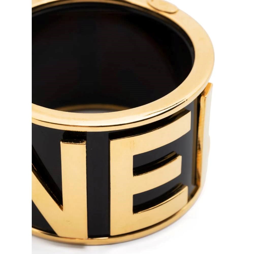 Chanel black resin with gold tone metal logo applied 90s rigid bracelet.