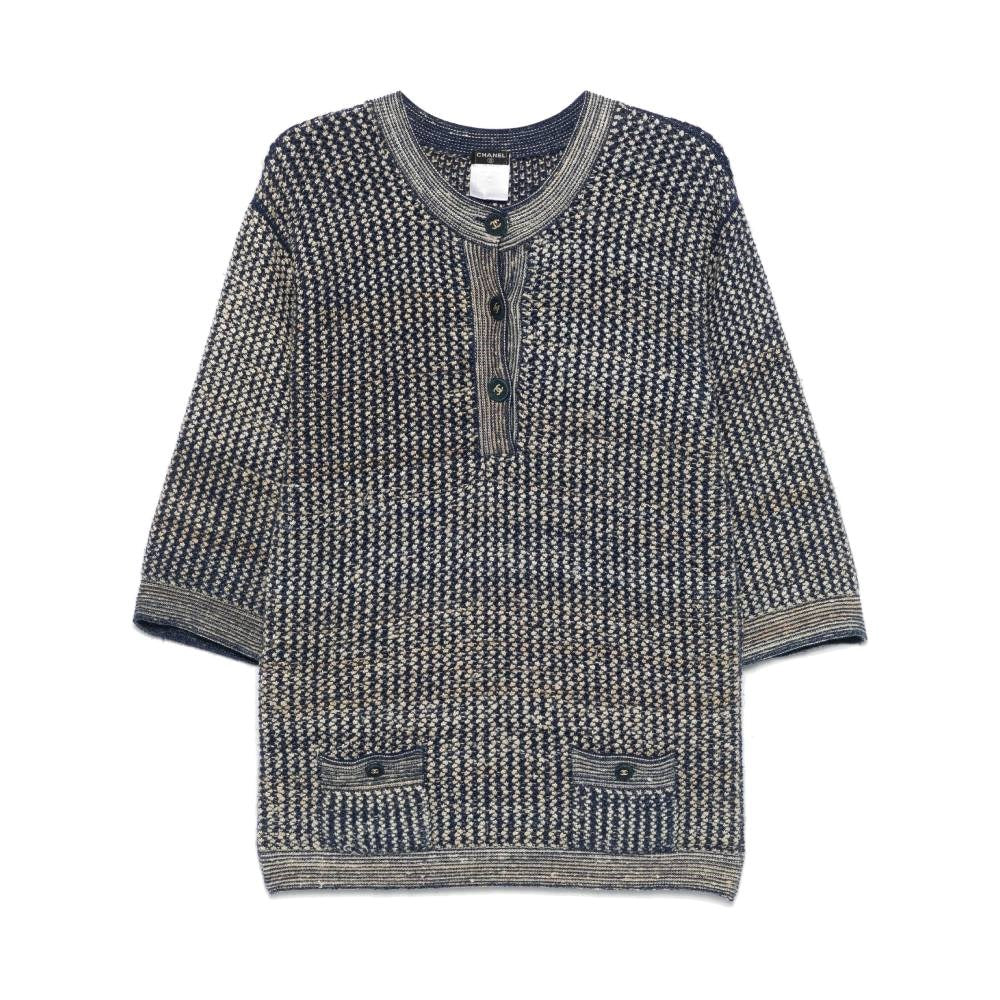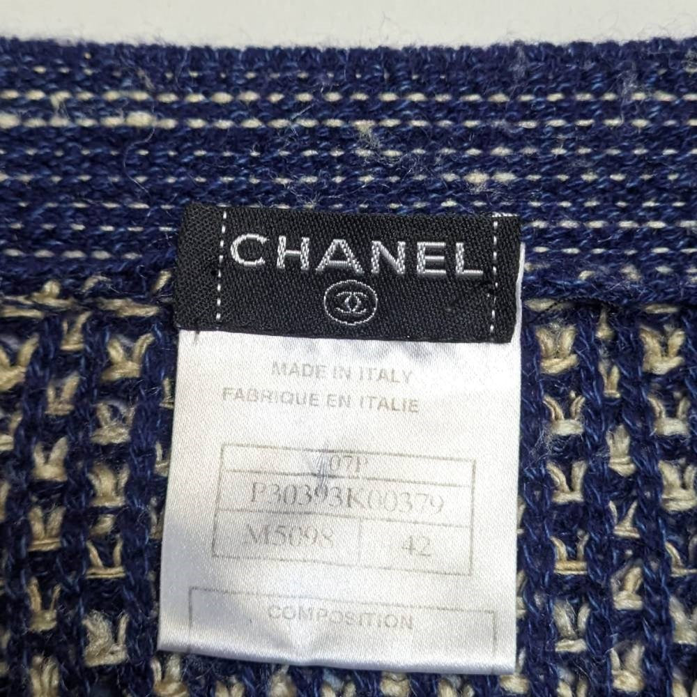 Chanel Blue and Beige Knitted Sweater - 2000s