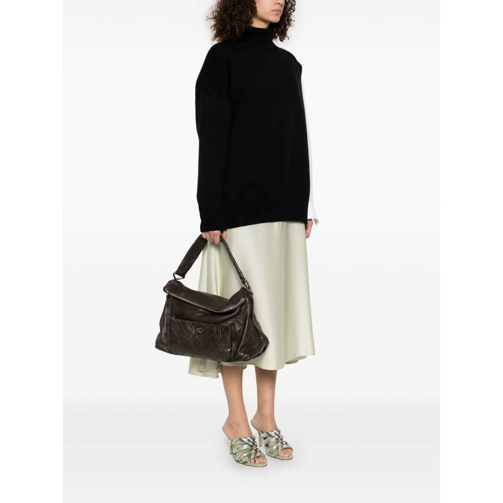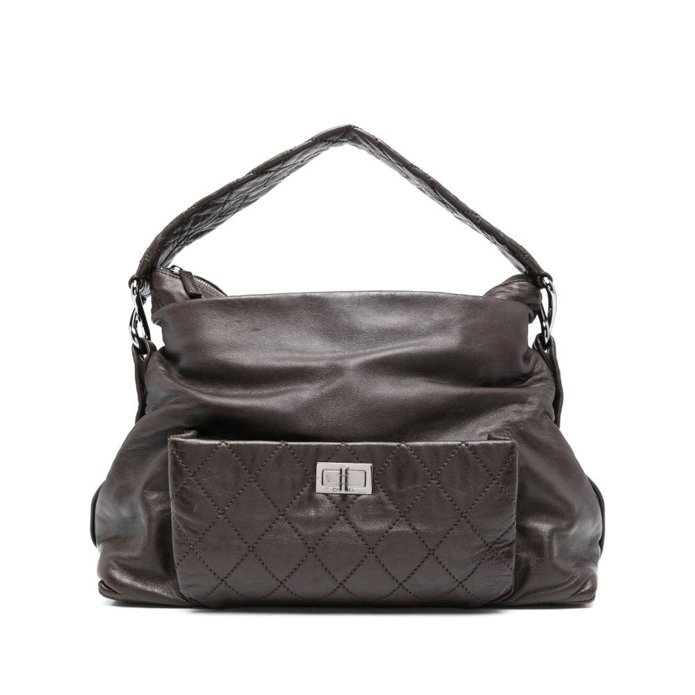 Chanel brown leather 2000s shoulder bag. Handle and front pocket in quilted leather. Front patch pocket with silver metal logo closure. Upper zip closure. Two main internal compartments and a central zip pocket. Card authenticity. - Year: 2006-2008 - Serial code: 11451487