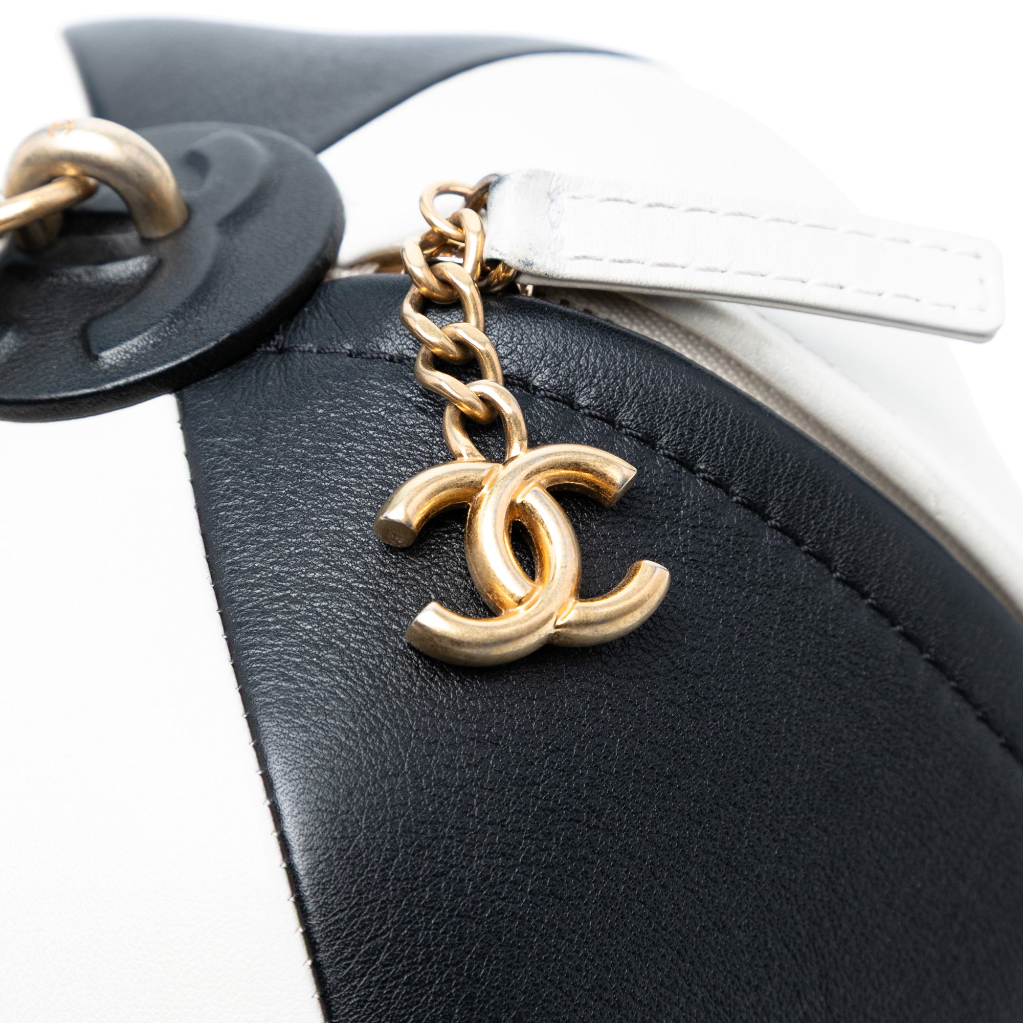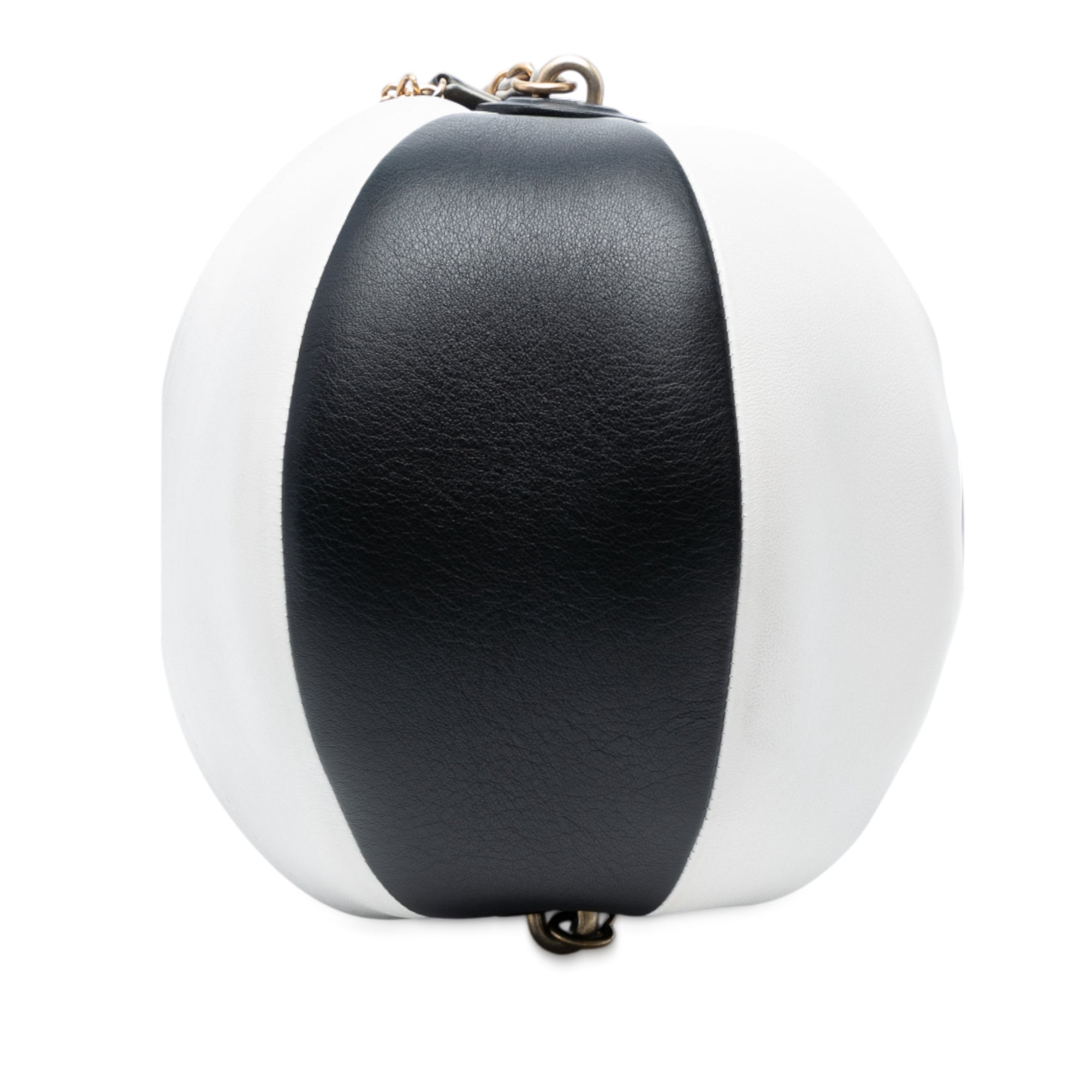 This shoulder bag features a leather body, a leather-woven chain strap with leather shoulder guard, and a top zip closure. Retail Price: 4100.00