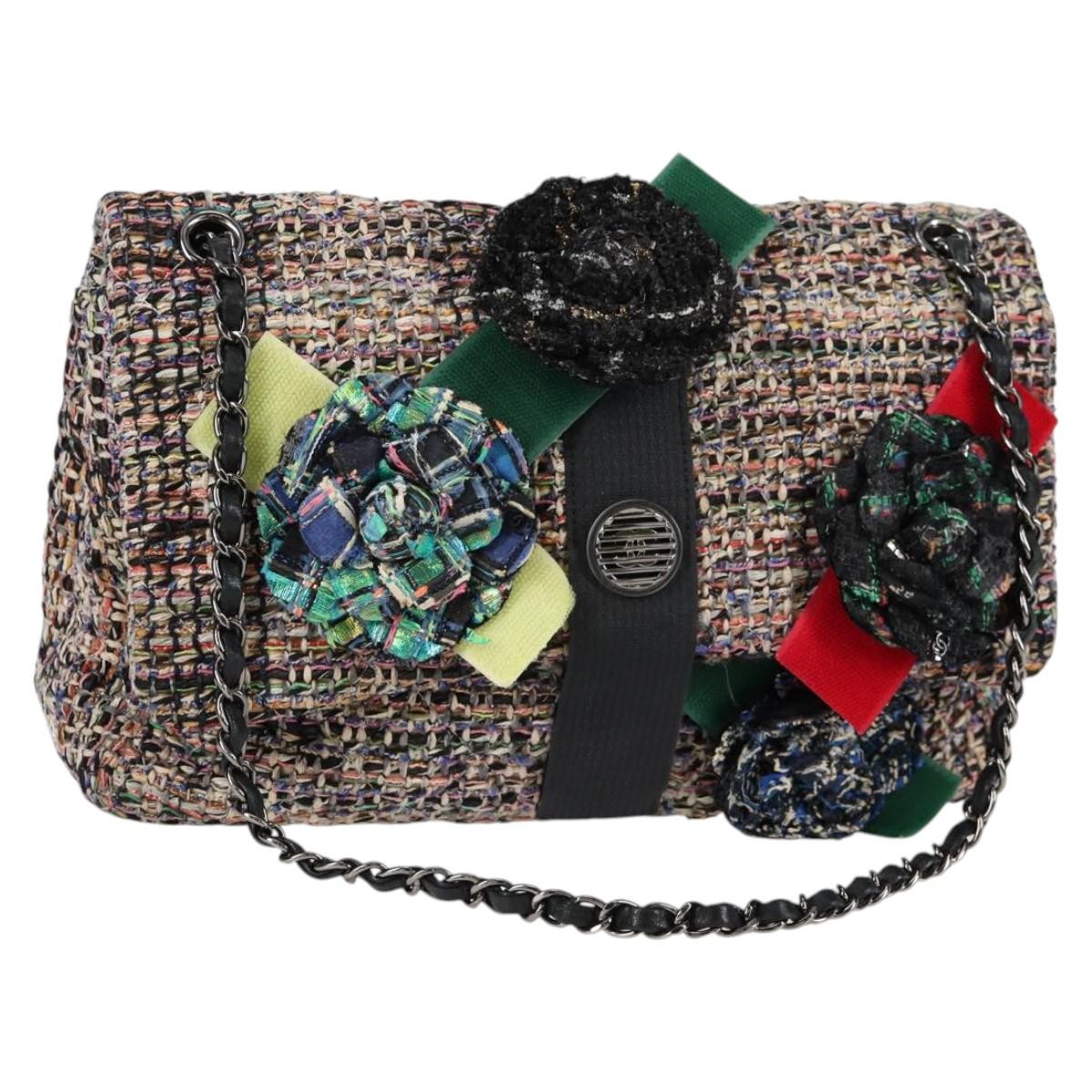 Chanel Camellia Flap Shoulder Bag Tweed