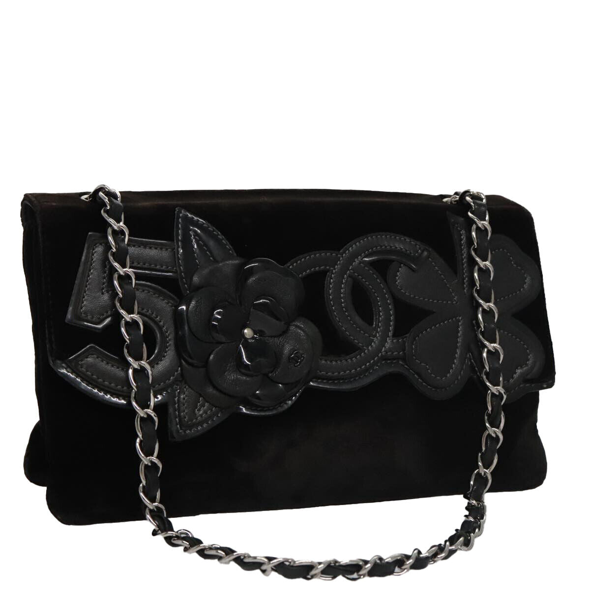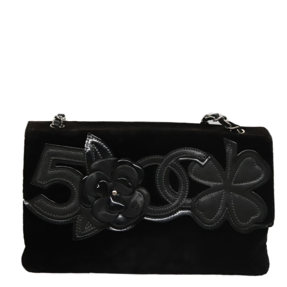 Brand : Chanel Model : Camellia No.5 Chain Flap Bag Style : Velvet Serial number : 10278559 Inclusions : Dust bag