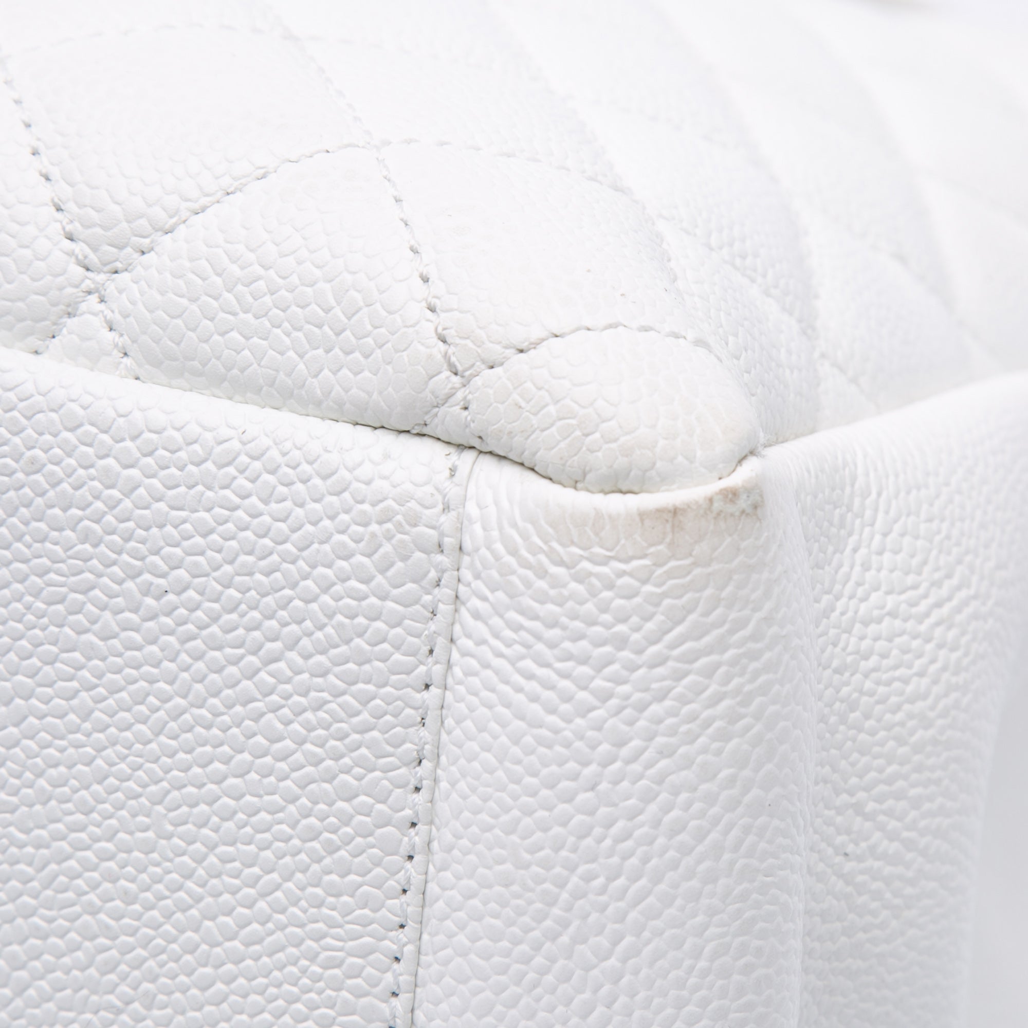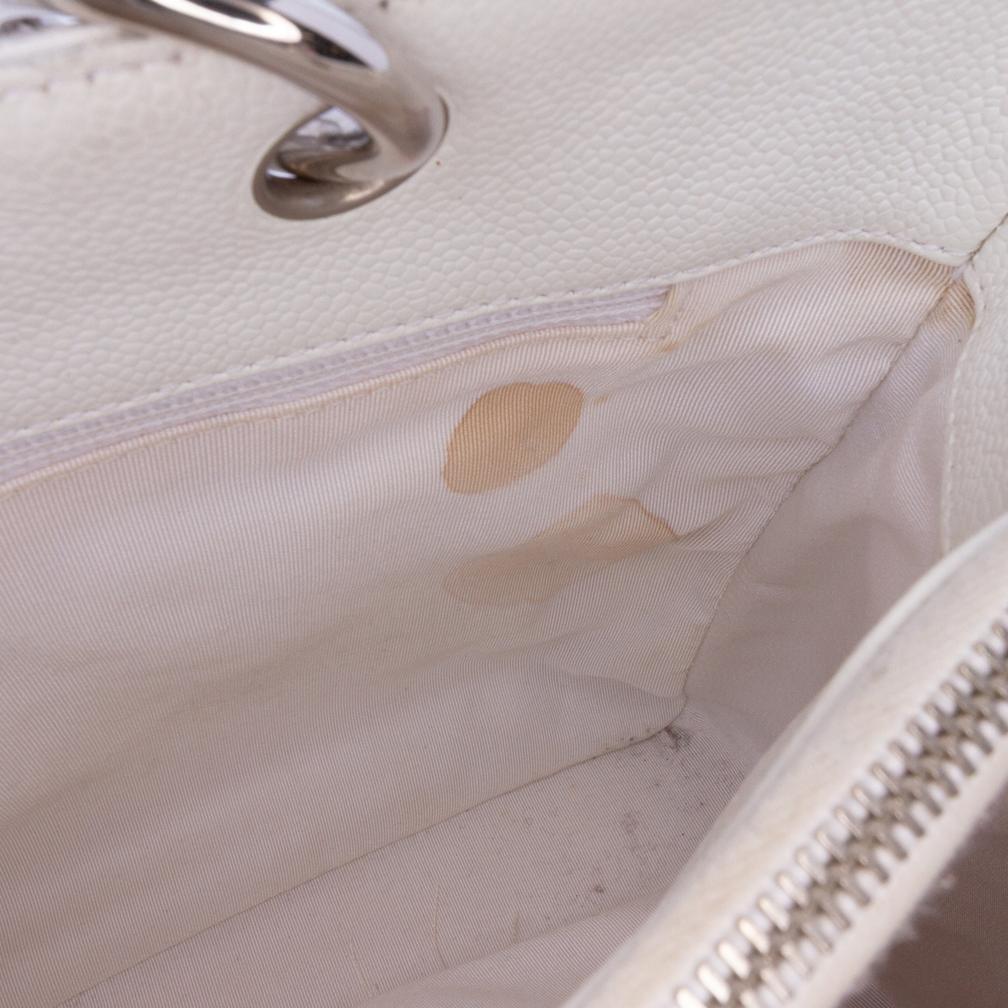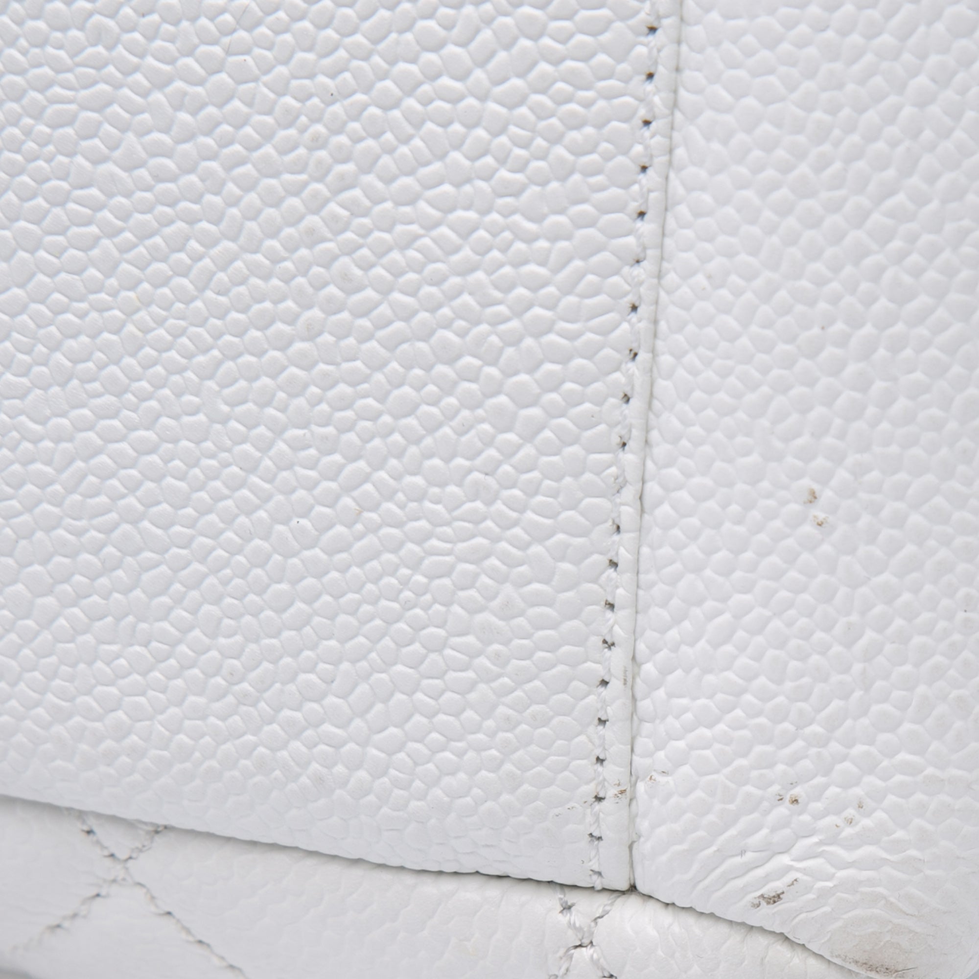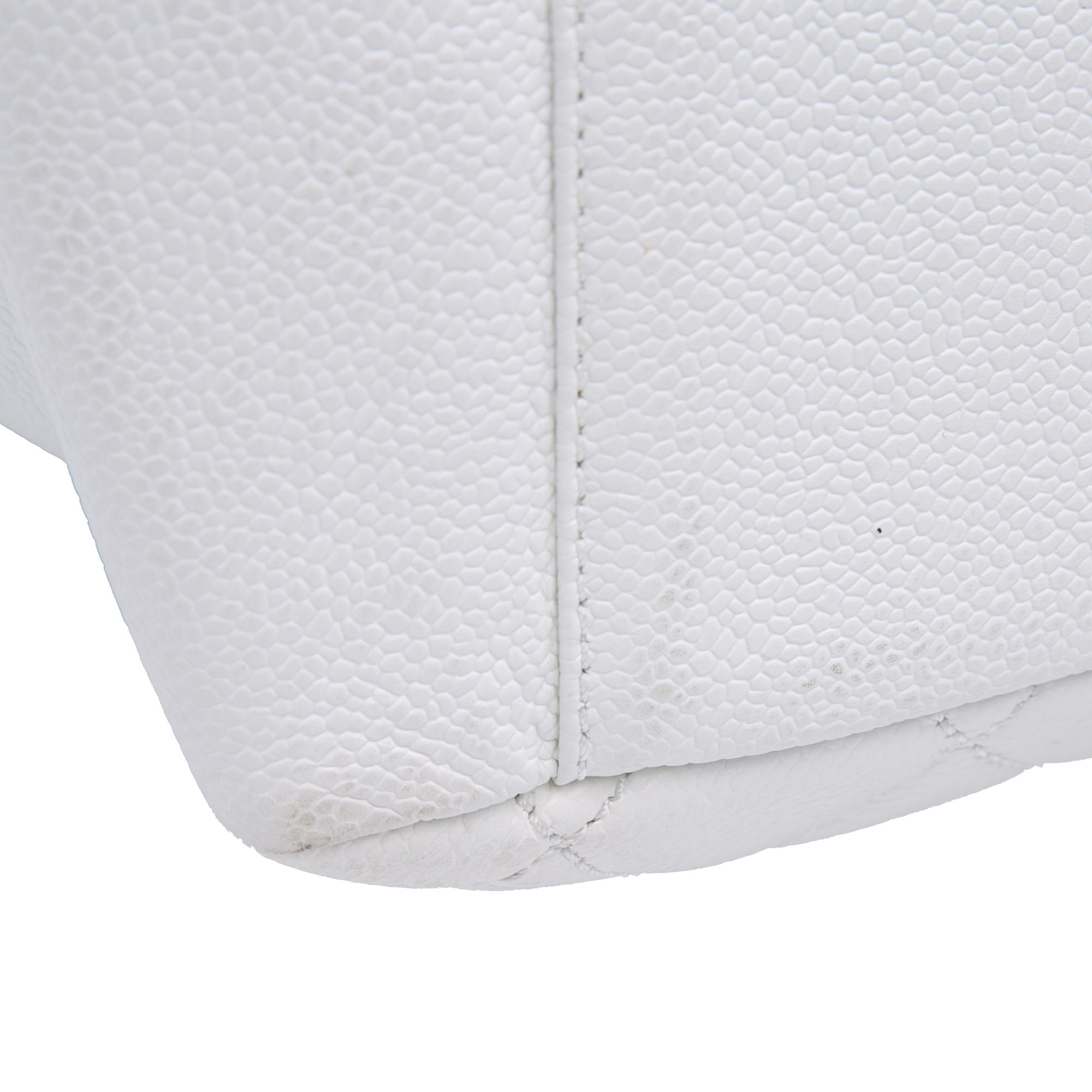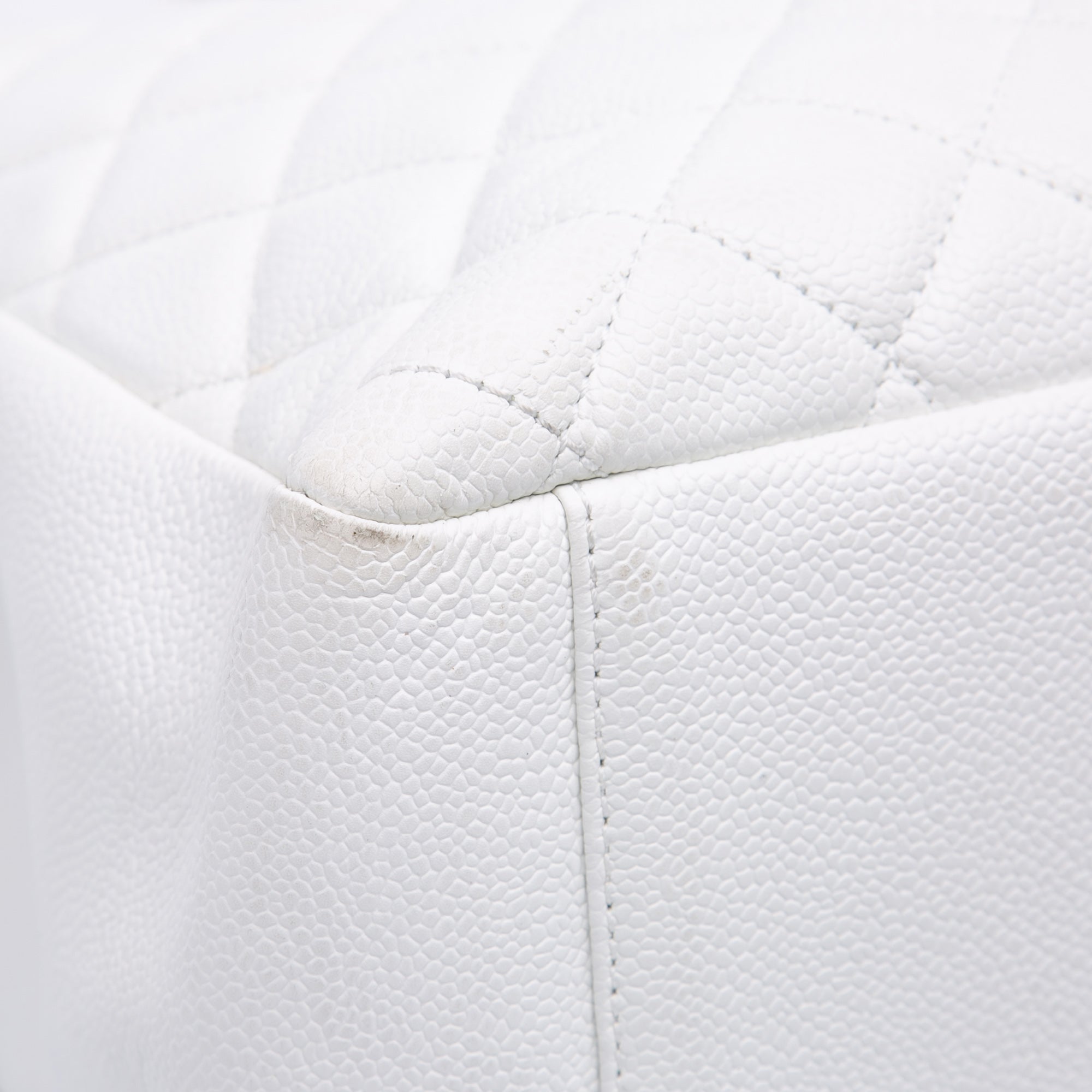 The Grand Shopping Tote features a quilted caviar leather body, leather woven curb chain straps with leather guard, an open top, an exterior back slip pocket, interior center zip compartment, and interior zip and slip pockets. Inclusion: authenticity card. Retail Price: 2900.00
