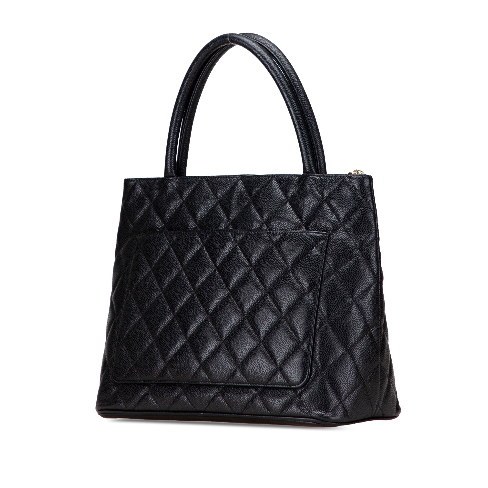 The Medallion tote bag features a quilted caviar leather body, rolled leather handles, a top zip closure, an exterior back slip pocket, and interior zip and slip pockets. Inclusion: Dust bag. Retail Price: 2513.00