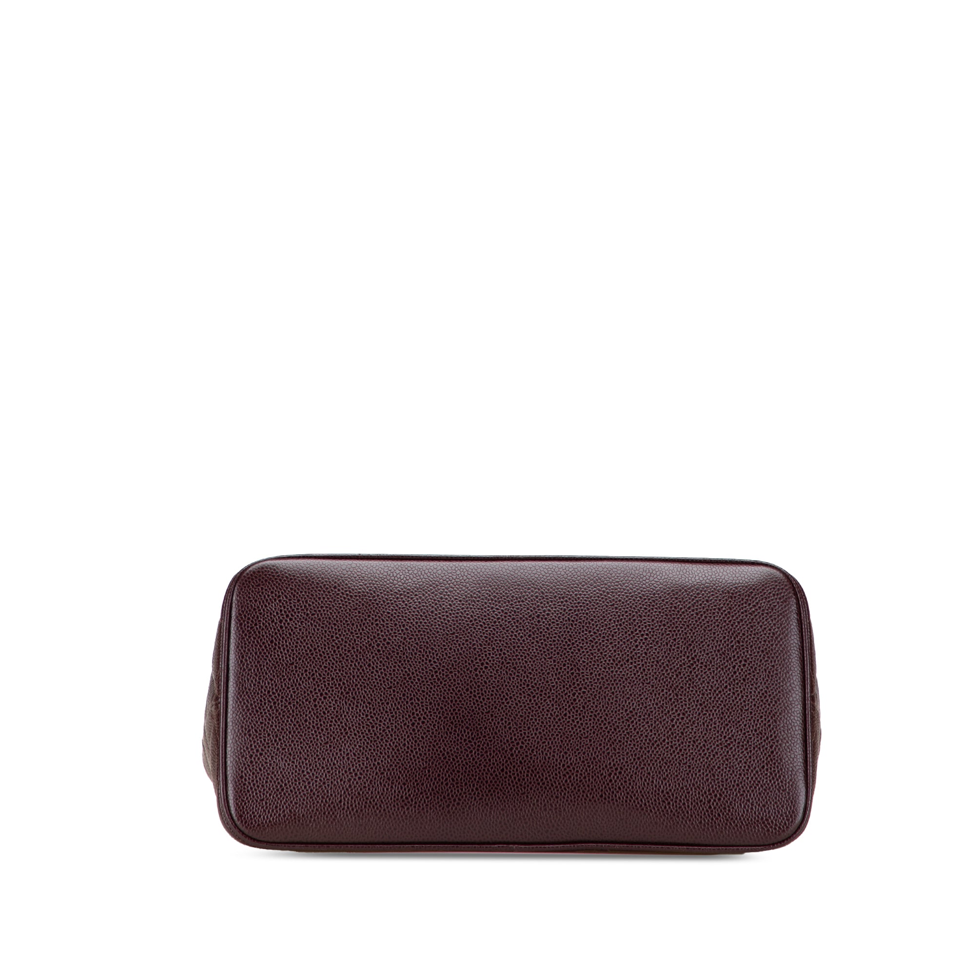 The Medallion tote bag features a quilted caviar leather body, rolled leather handles, a top zip closure, an exterior back slip pocket, and interior zip and slip pockets. Retail Price: 2700.00