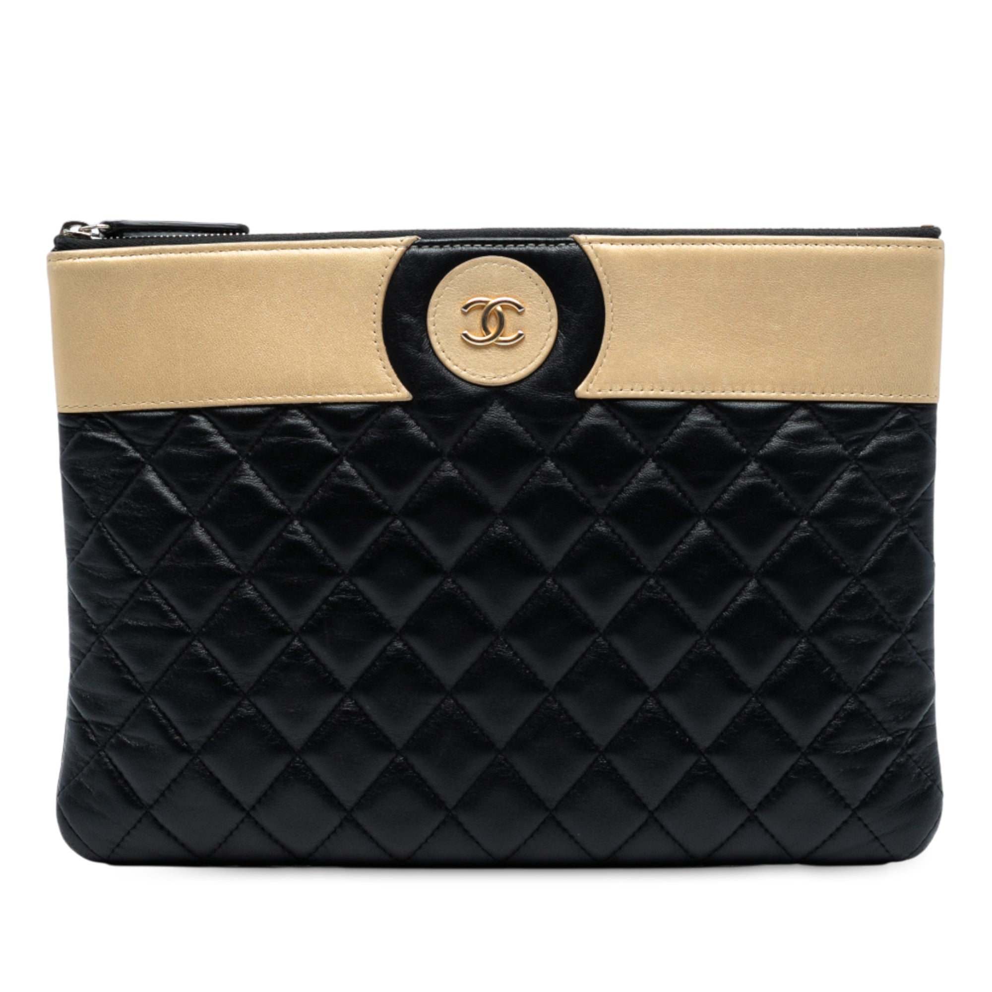 Chanel CC Bicolor Quilted Lambskin Clutch