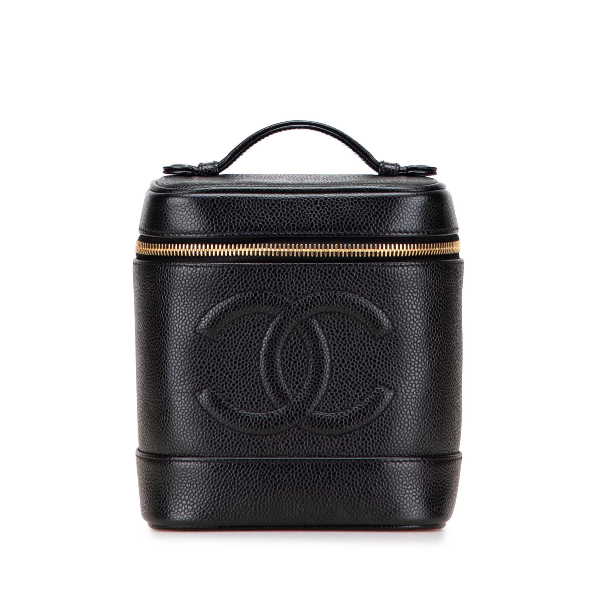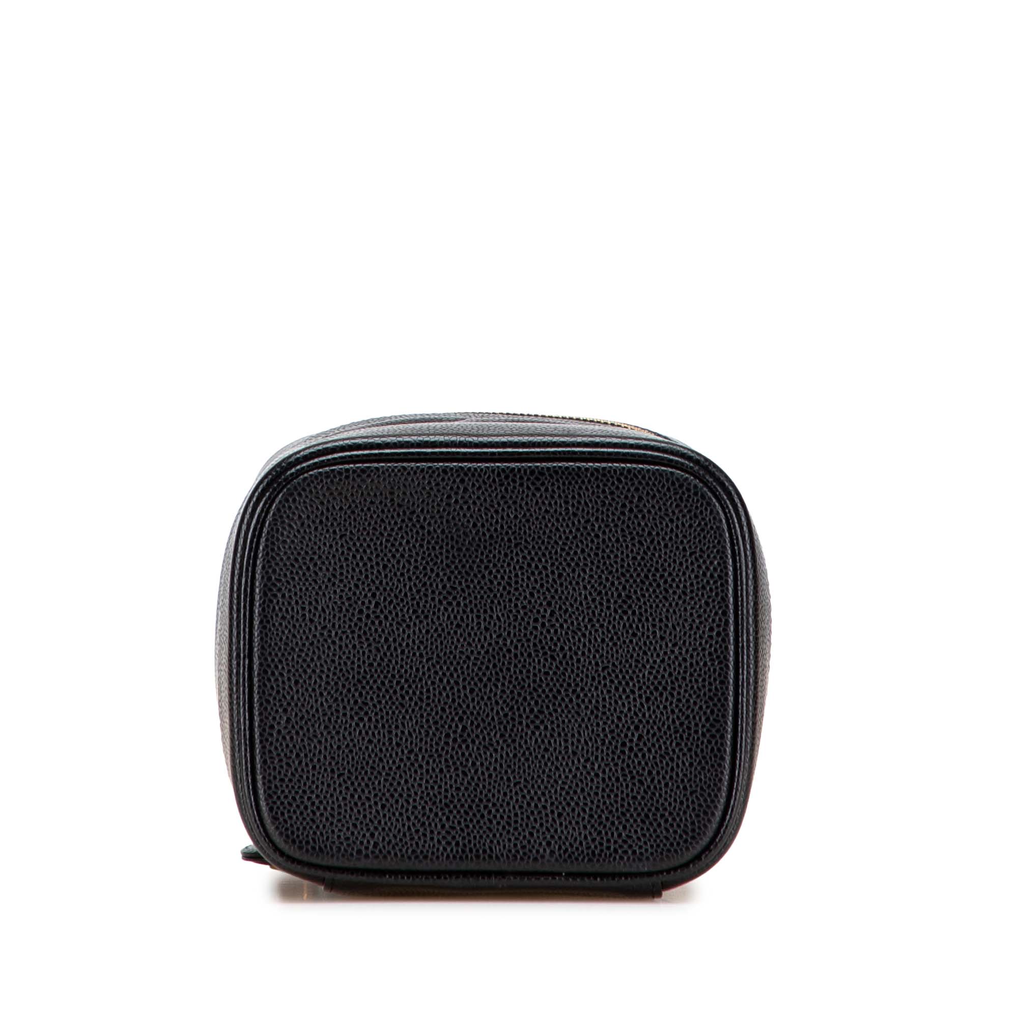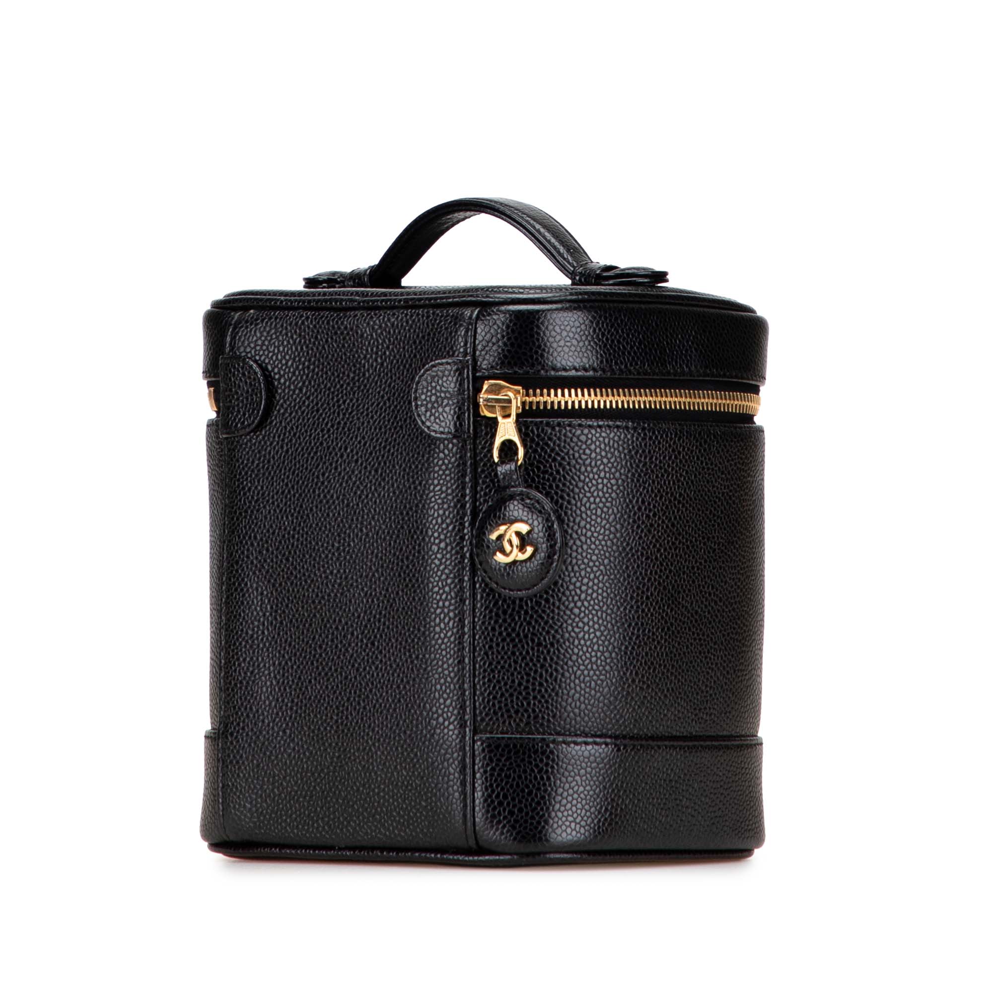 This vanity bag features a caviar leather body, a flat leather top handle, a zip around closure, and an interior slip pocket. Retail Price: 1980.00