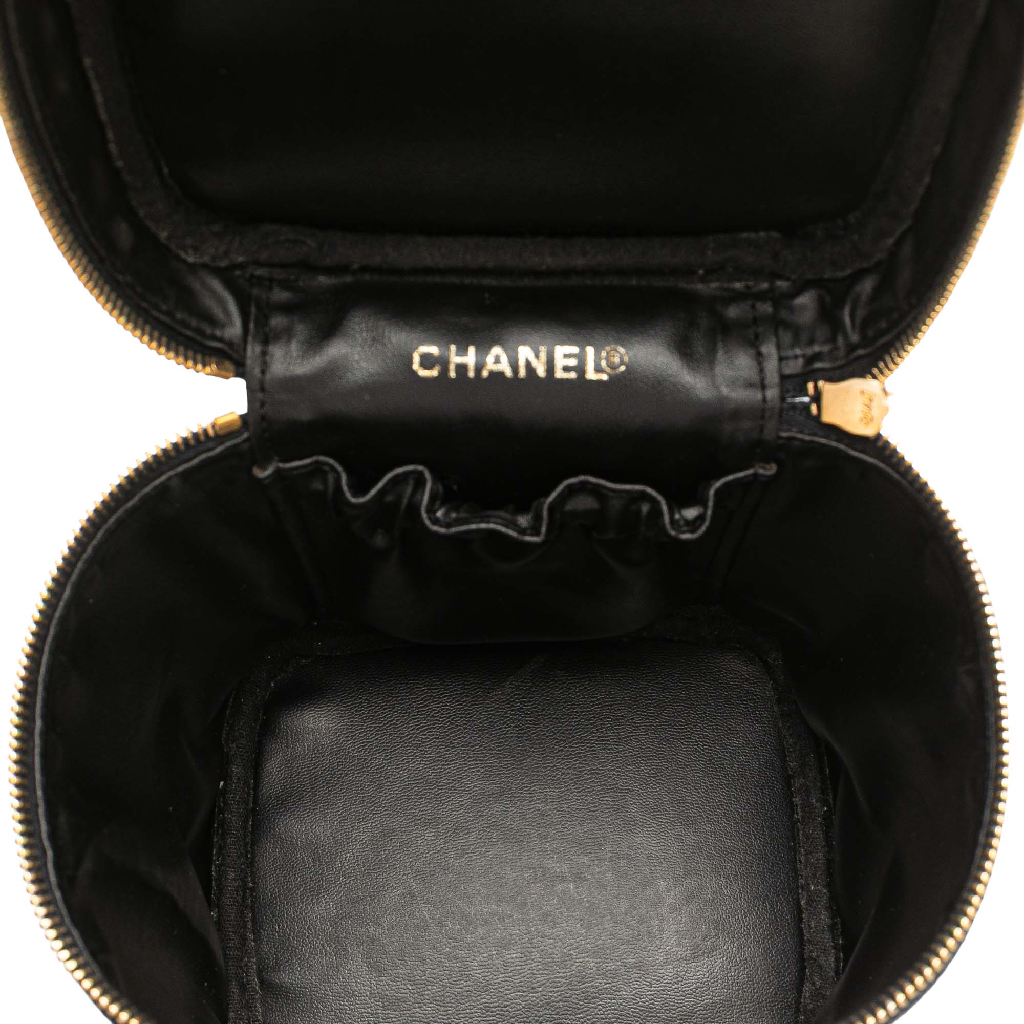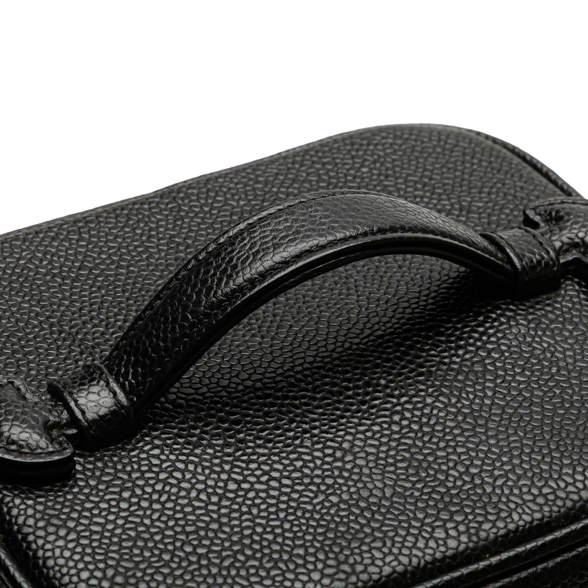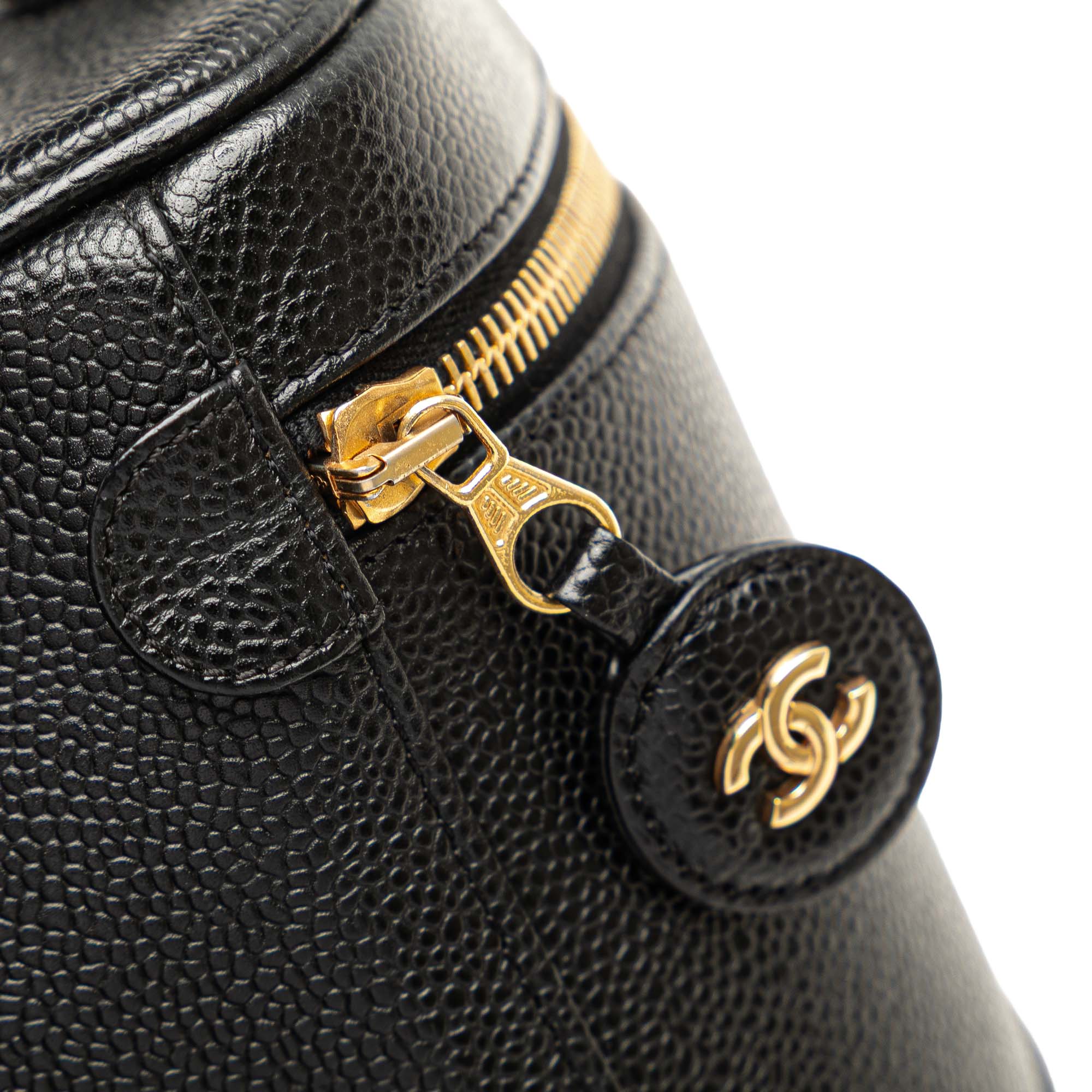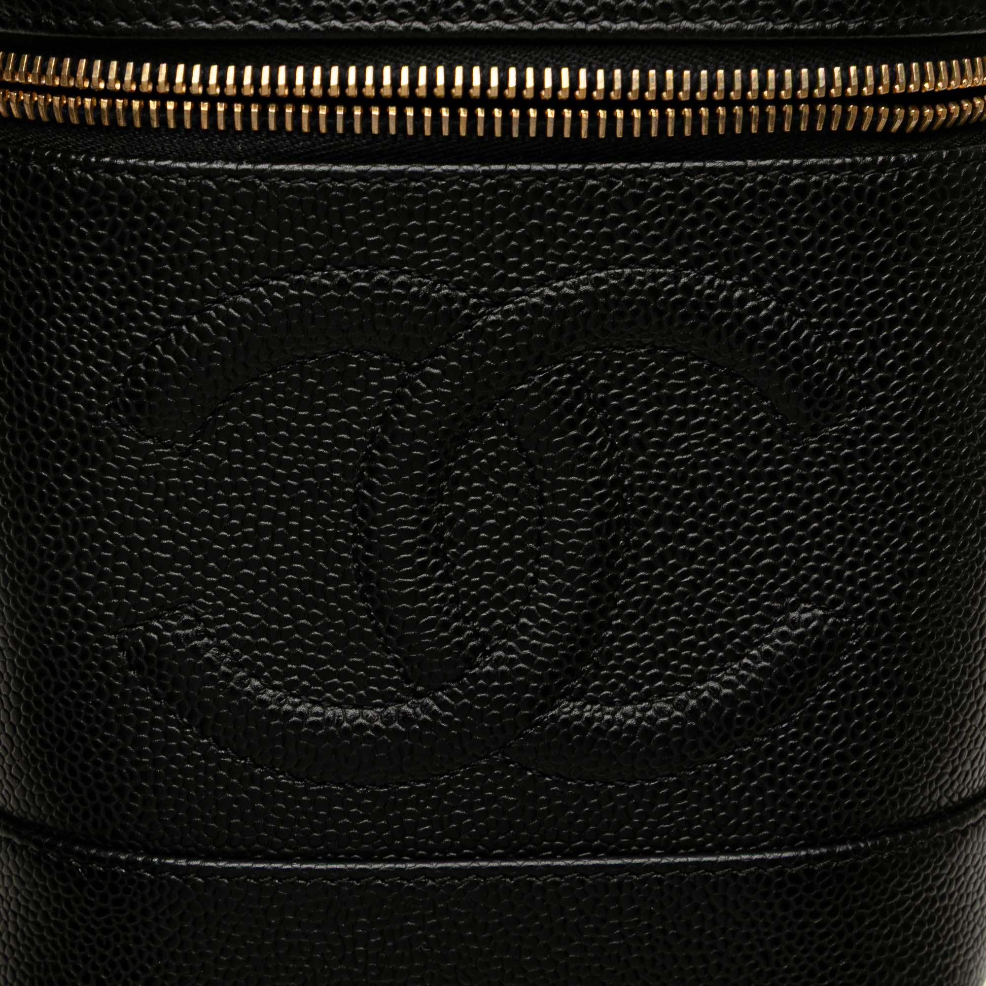 This vanity bag features a caviar leather body, a flat leather top handle, a zip around closure, and an interior slip pocket. Retail Price: 1980.00