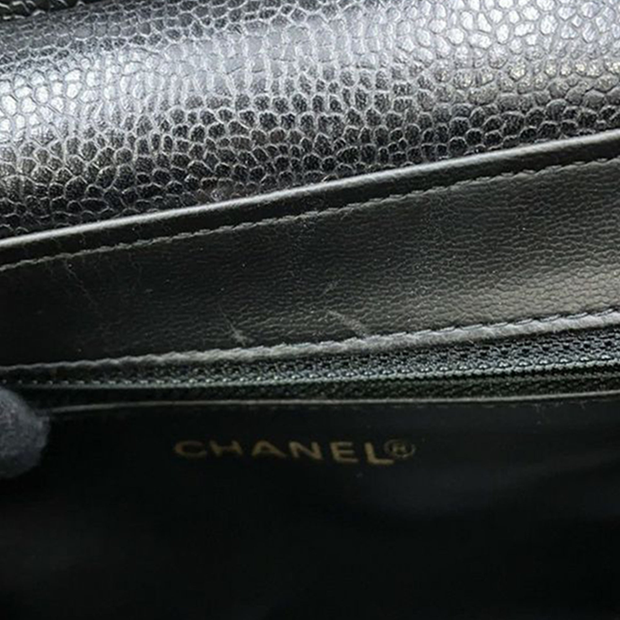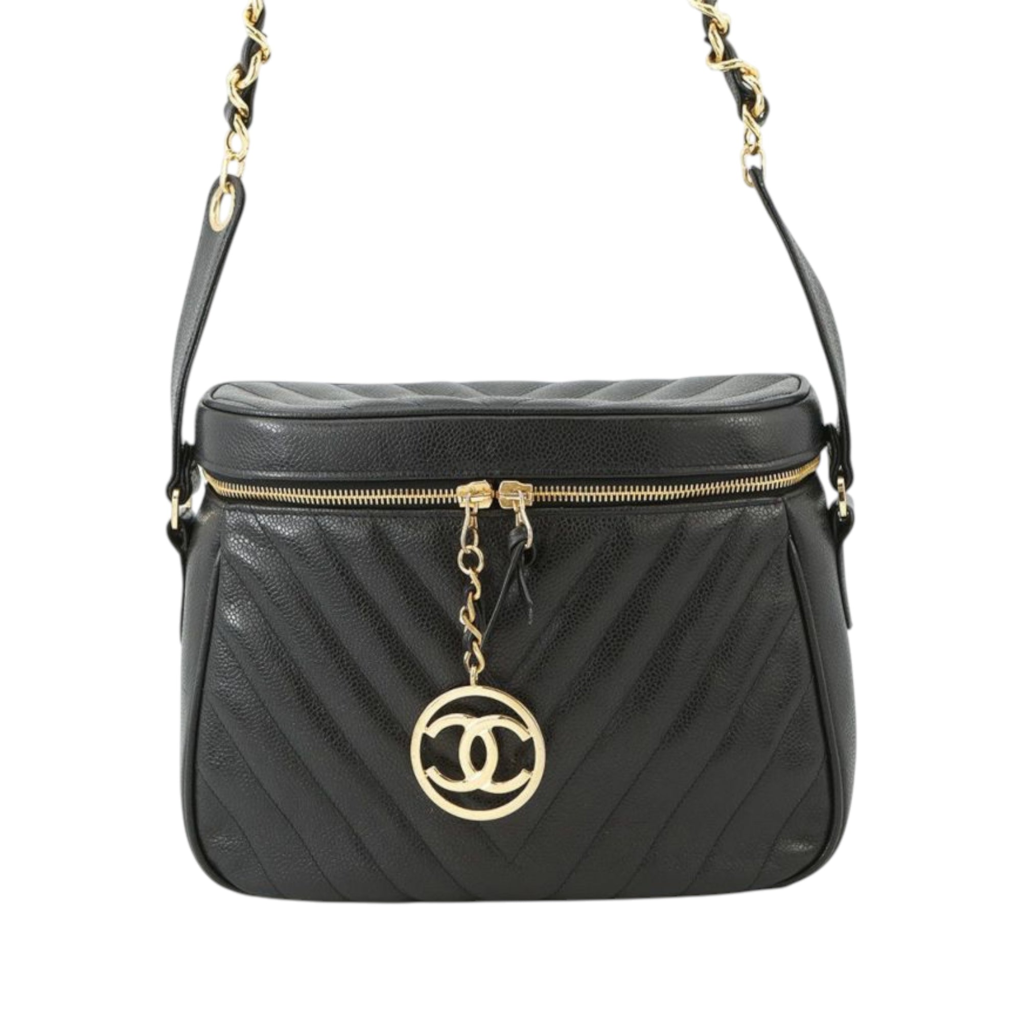 Chanel CC Chevron Caviar Vanity Case with Chain