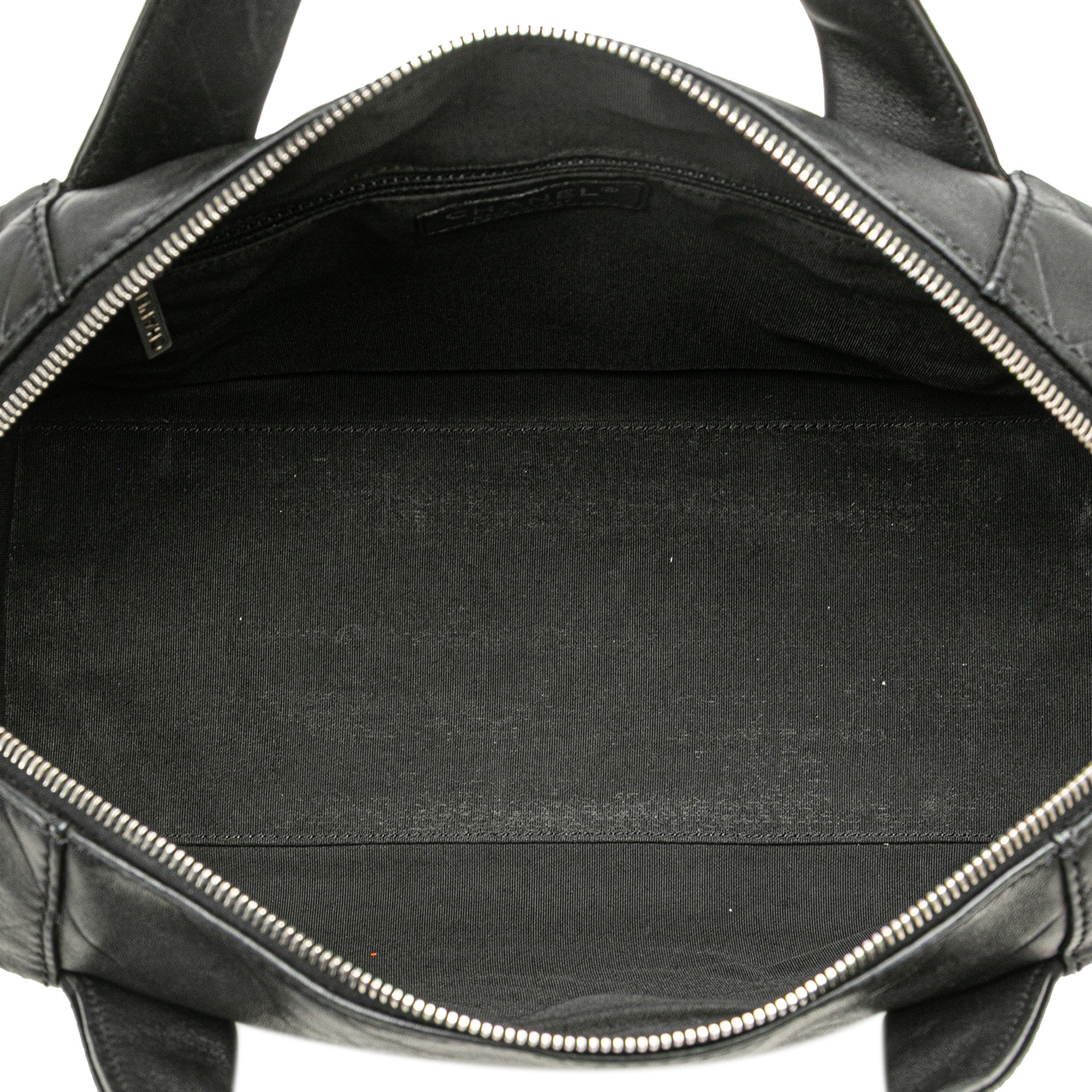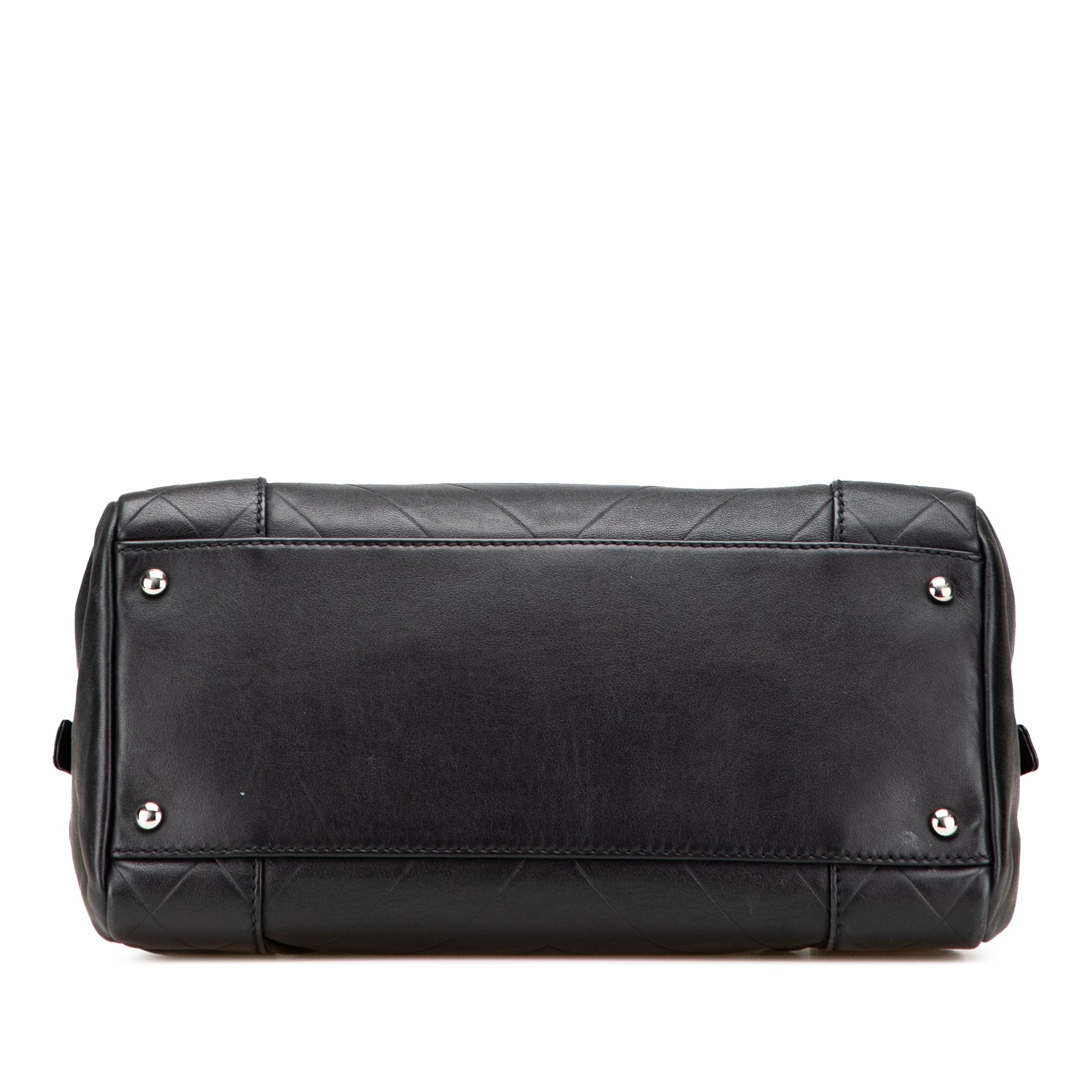 This boston bag features a quilted lambskin leather, flat leather straps with silver hardware, top zip closure, and interior zip and slip pockets. Inclusion: authenticity card. Retail Price: 2600.00