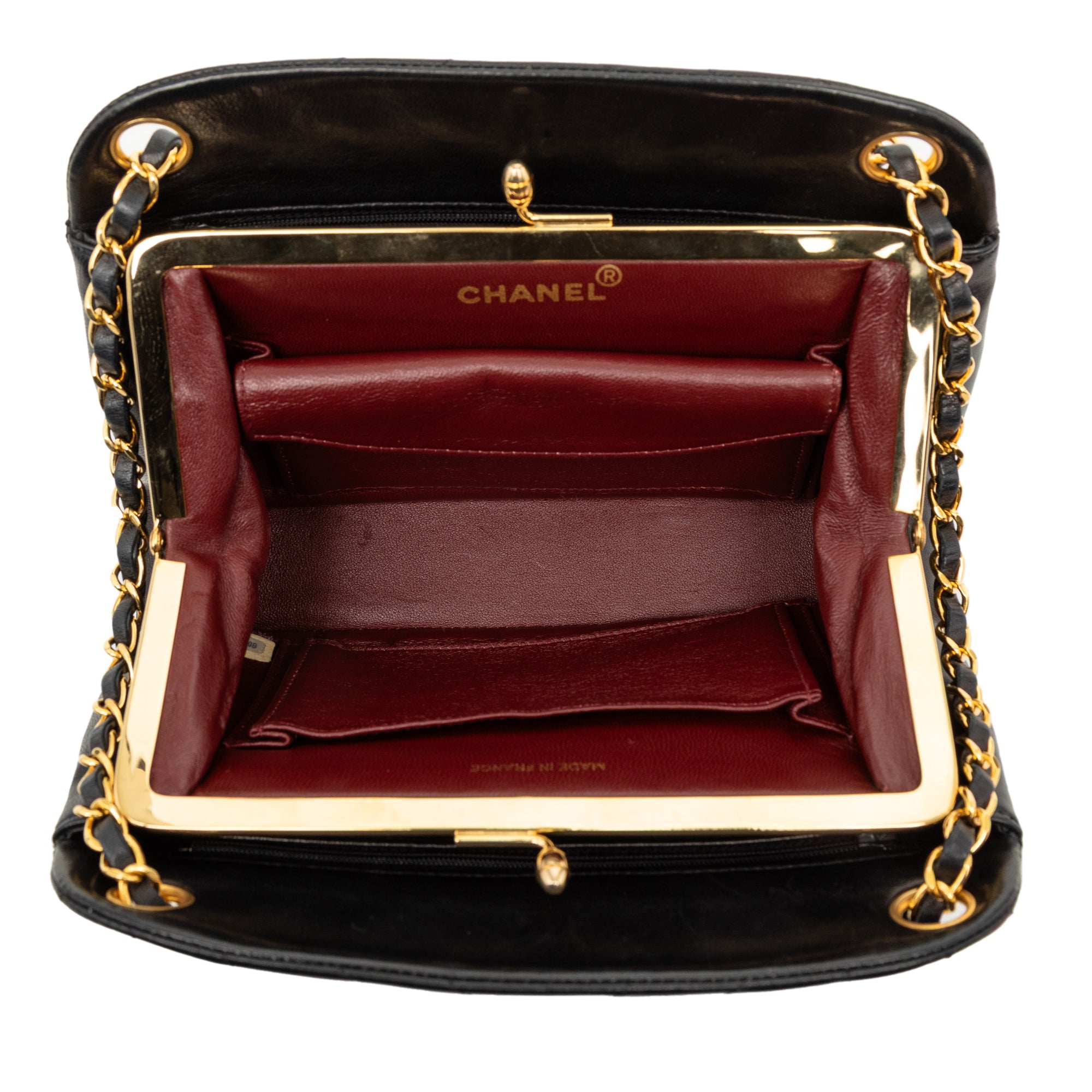 Chanel CC Chevron Quilted Lambskin Kiss Lock Shoulder Bag