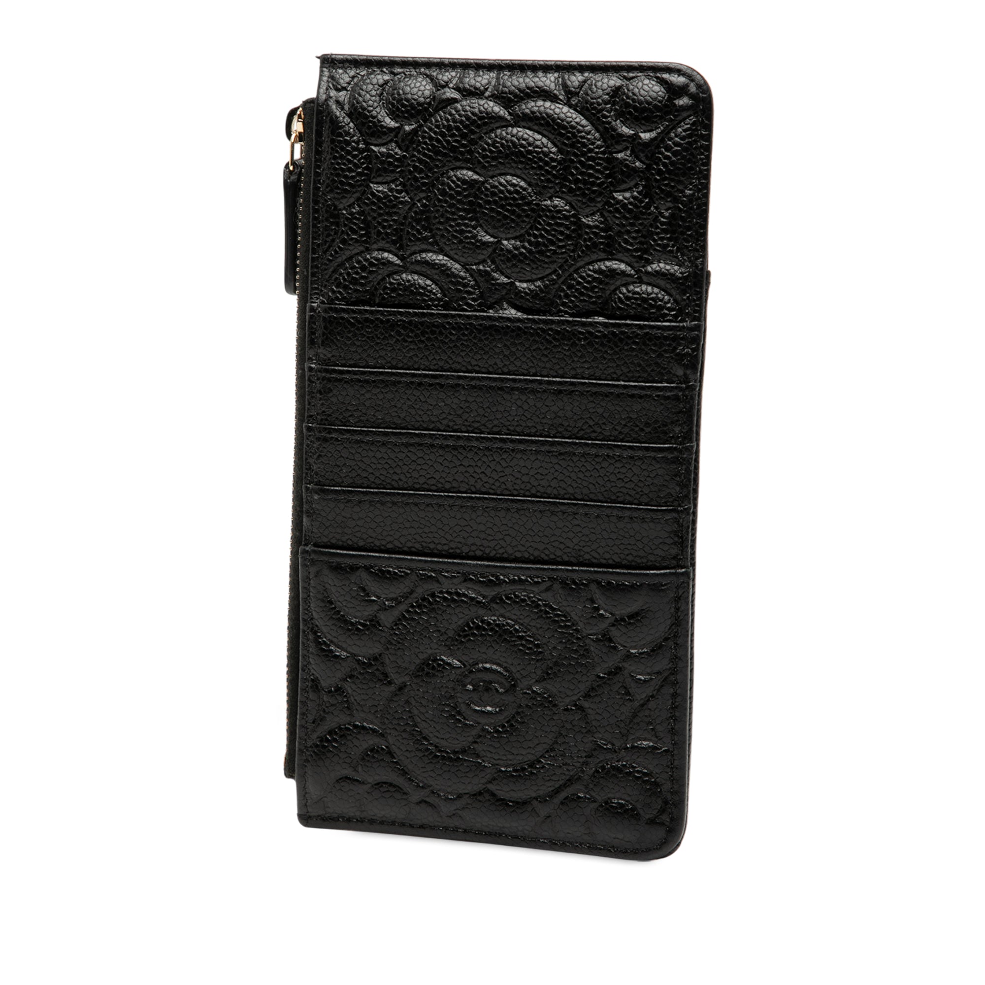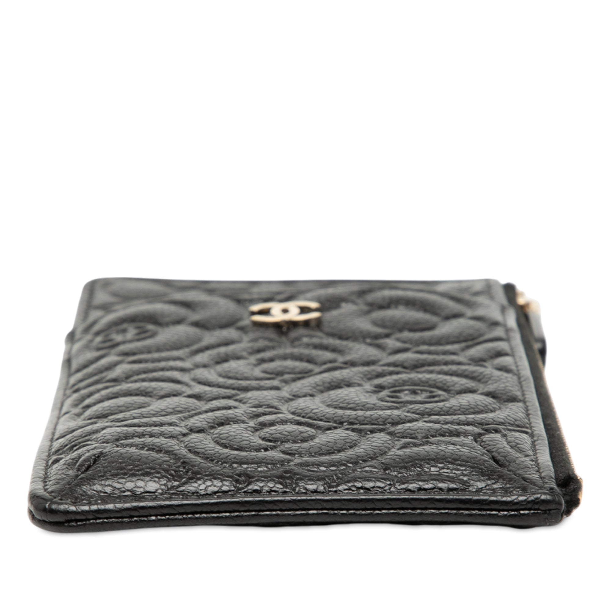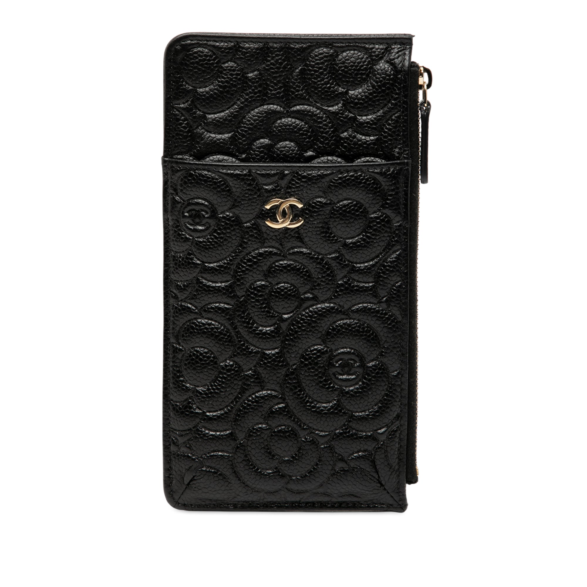 Chanel CC Embossed Caviar Camellia Flat Phone Case Wallet Pouch