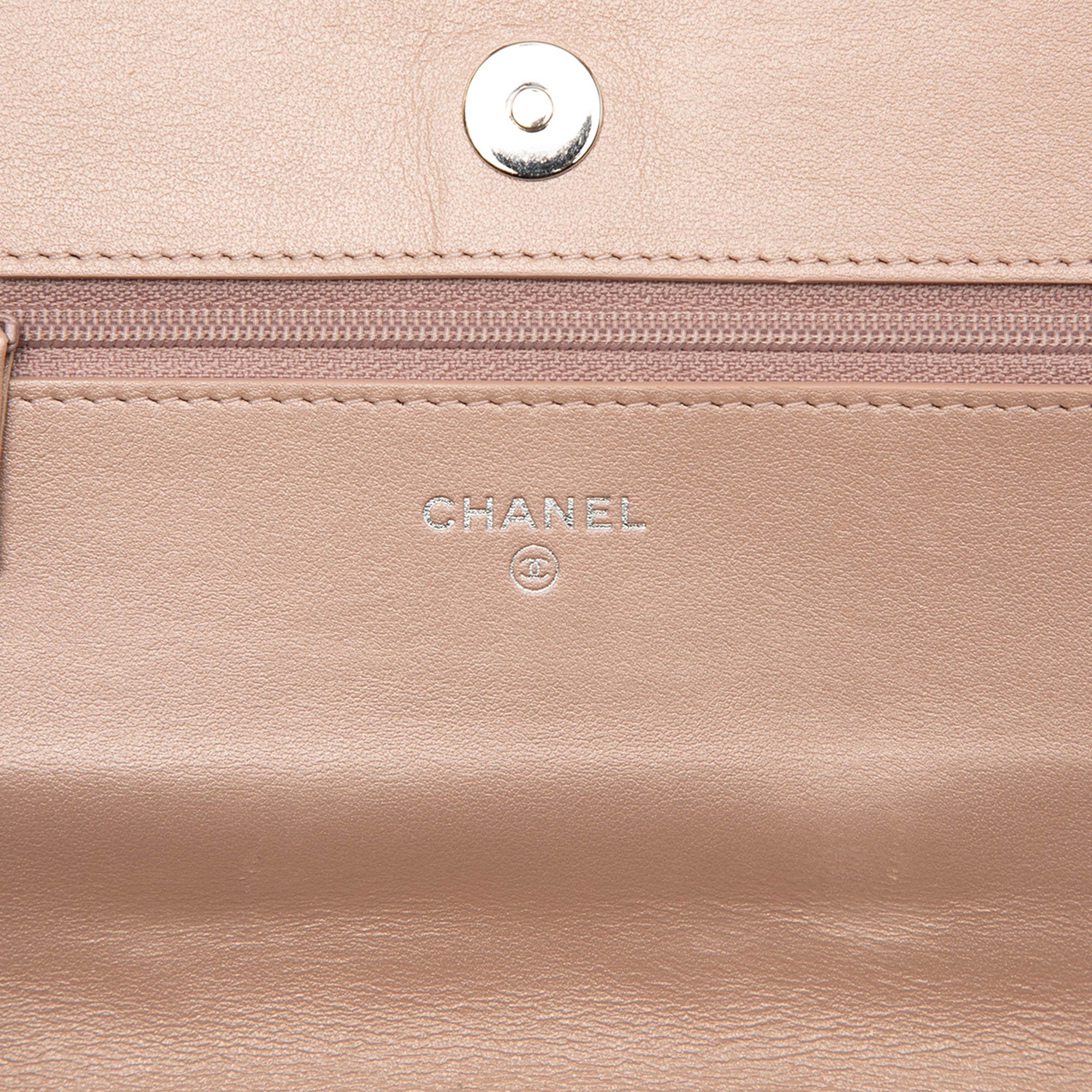 Chanel CC Embossed Lambskin Camellia Wallet On Chain