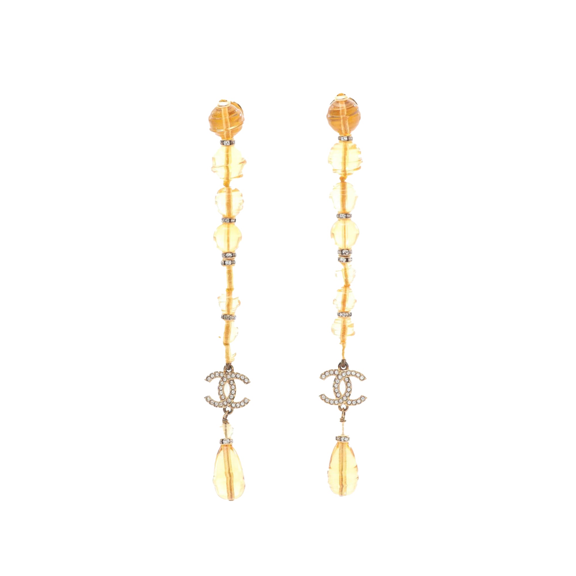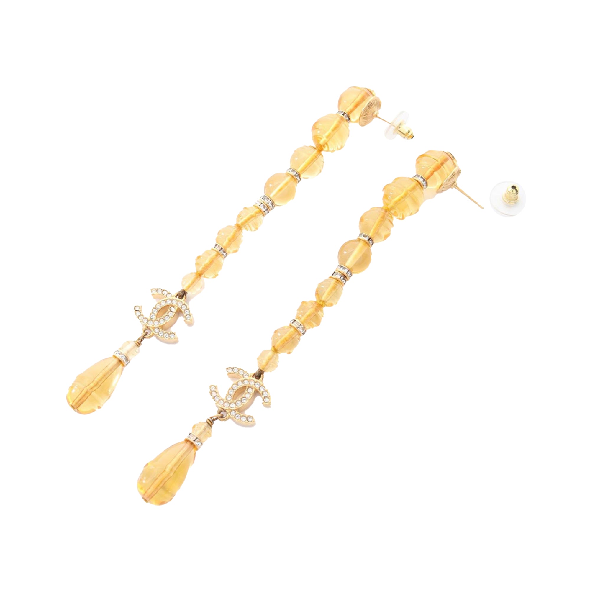 Chanel CC Gold Plated Crystal Beads Long Drop Push Back Earrings
