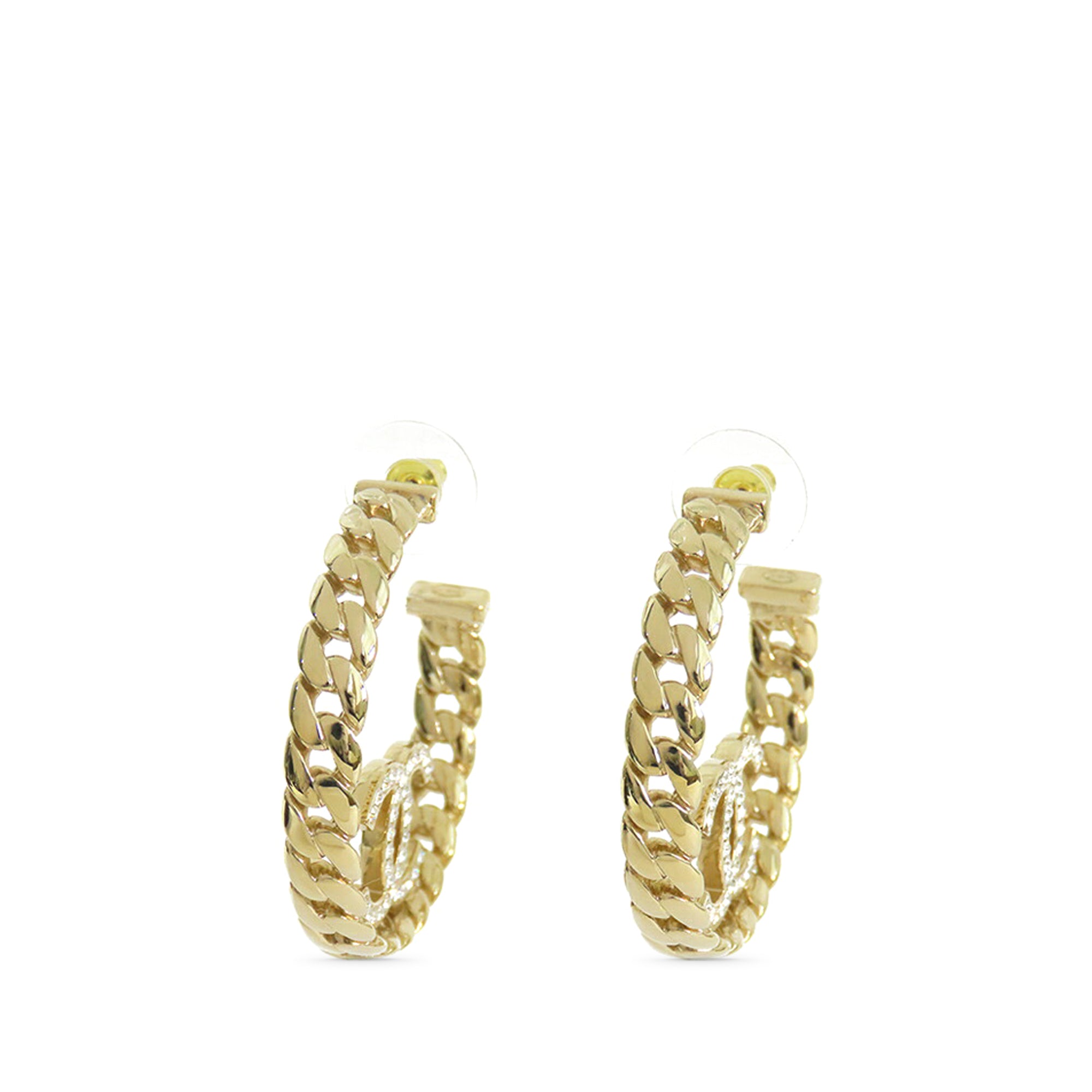 Chanel CC Gold Plated Crystal Chain Hoop Earrings