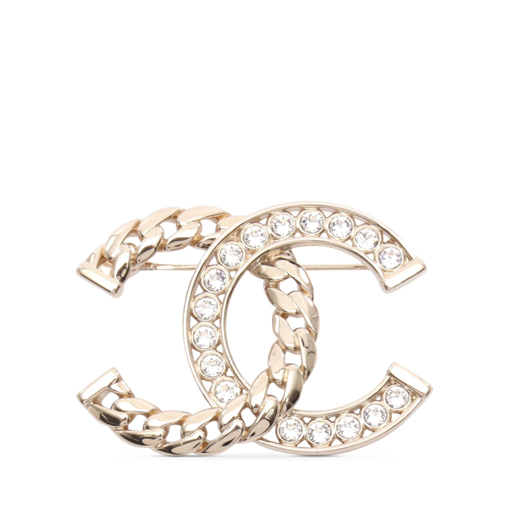 Chanel CC Gold Plated Rhinestone Chain Brooch