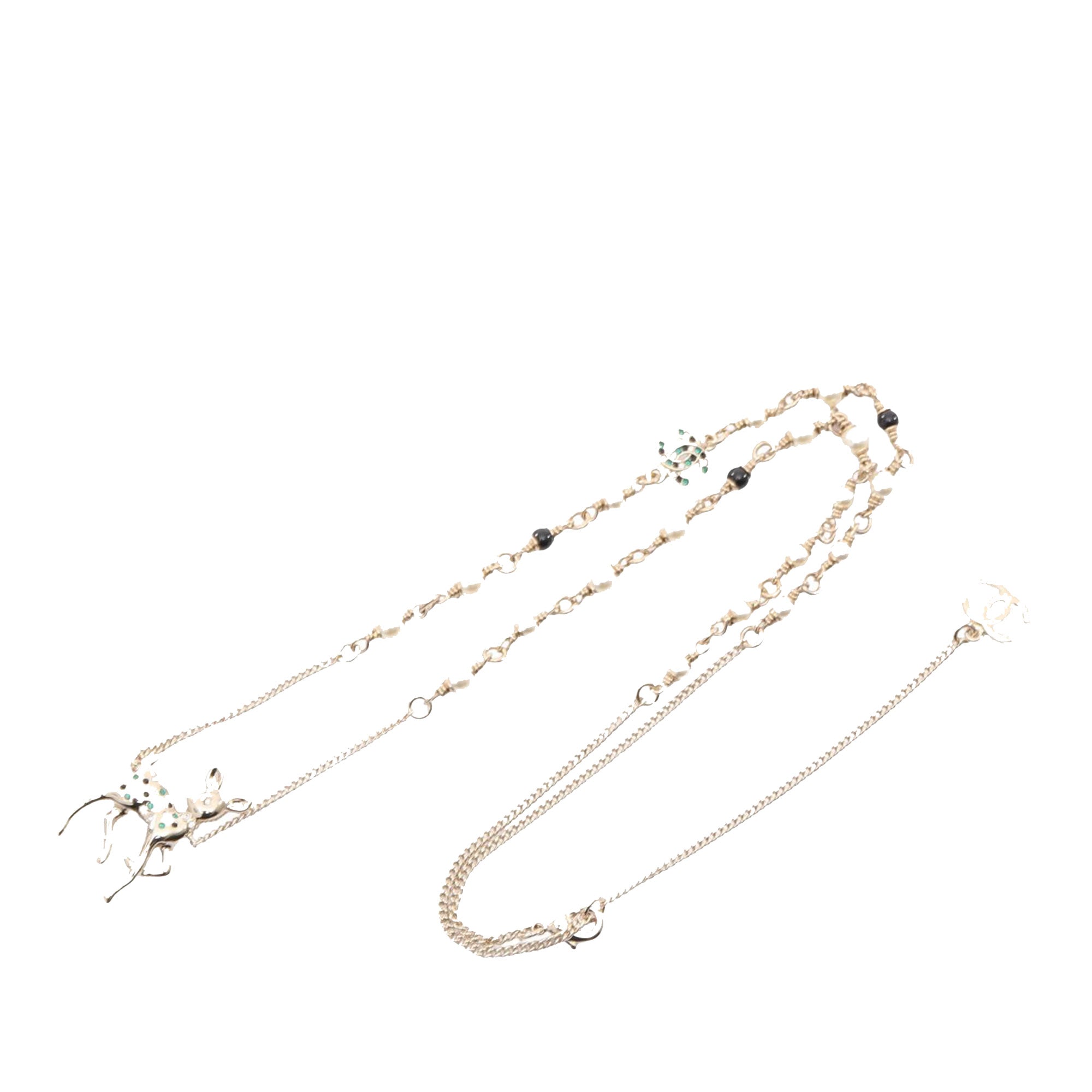 Chanel CC Gold Plated Rhinestone Deer Pendant Necklace