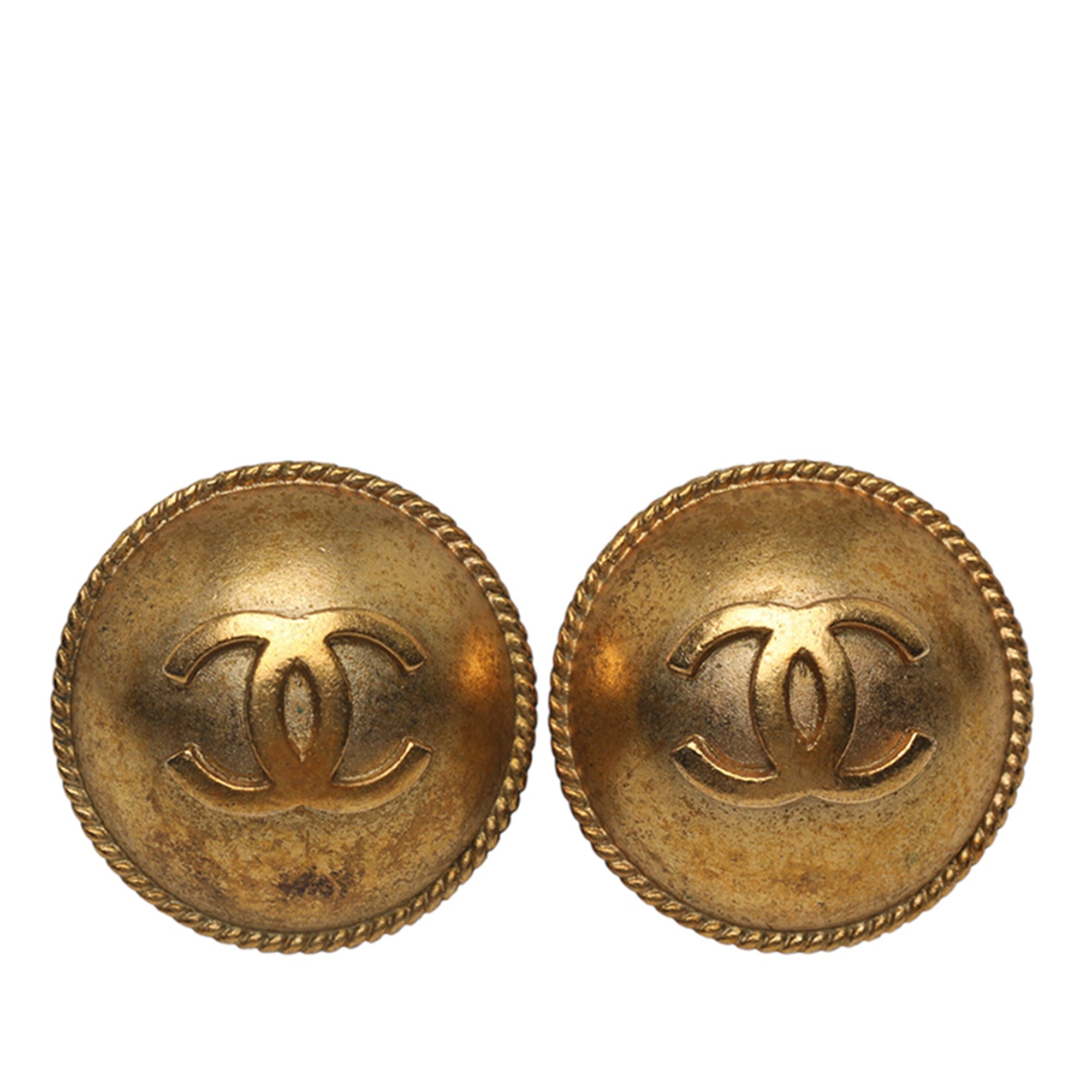 Chanel CC Gold Plated Round Button Clip on Earrings