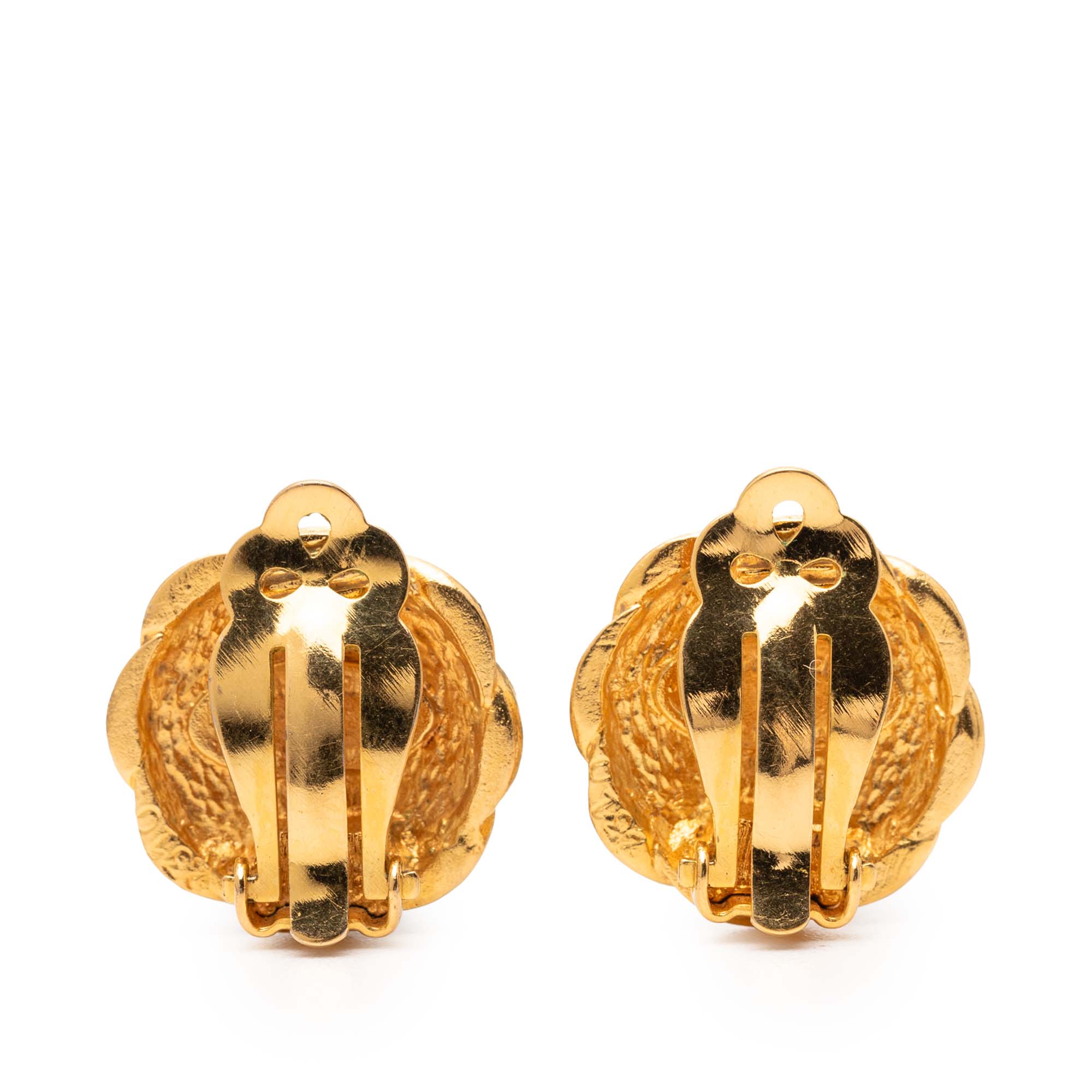 Chanel CC Gold Plated Round Clip on Earrings