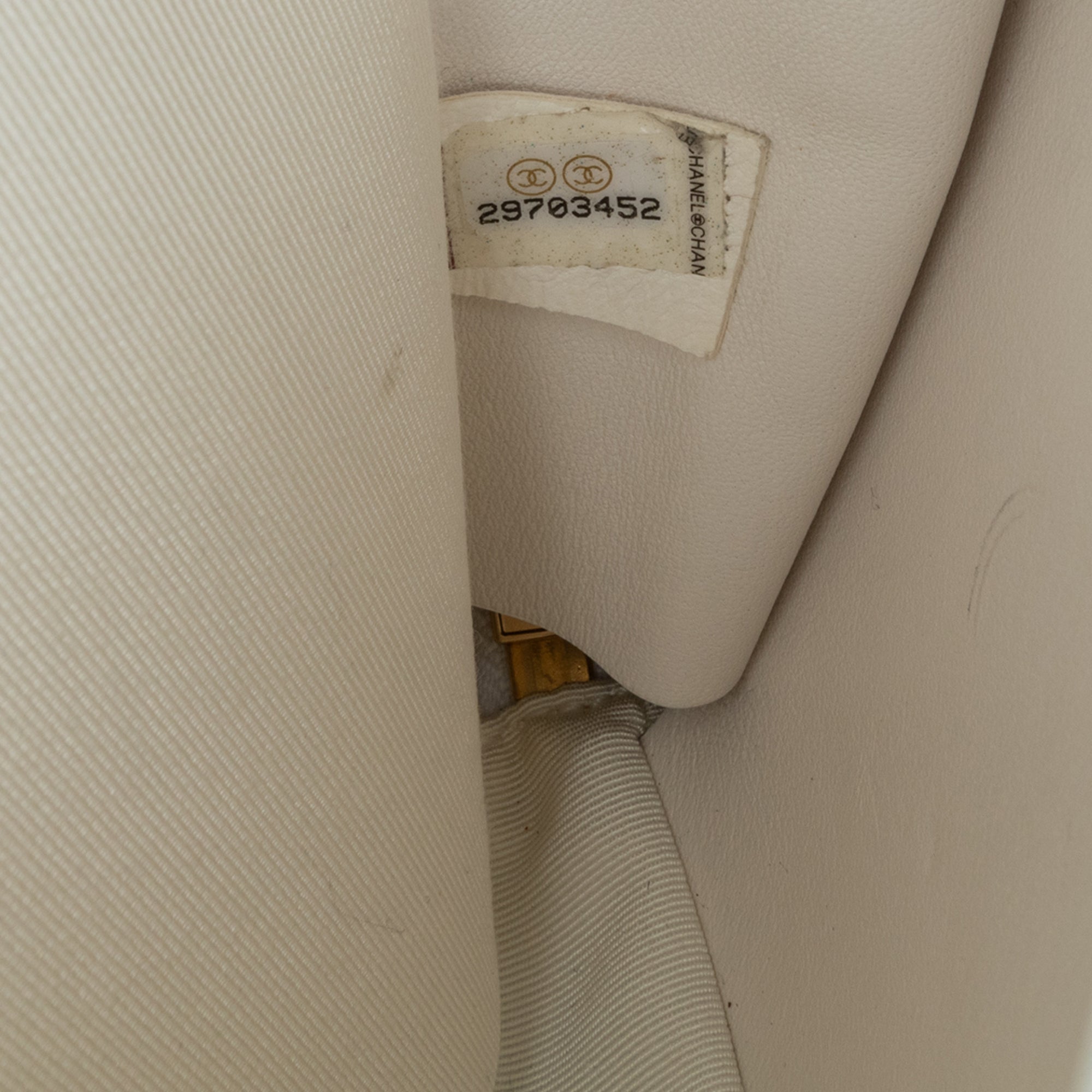 This satchel features a quilted lambskin leather body, a round leather top handle with chain details, a leather-woven chain strap, a zip-around closure, and an exterior back slip pocket. Inclusion: authenticity card. Retail Price: 2675.00