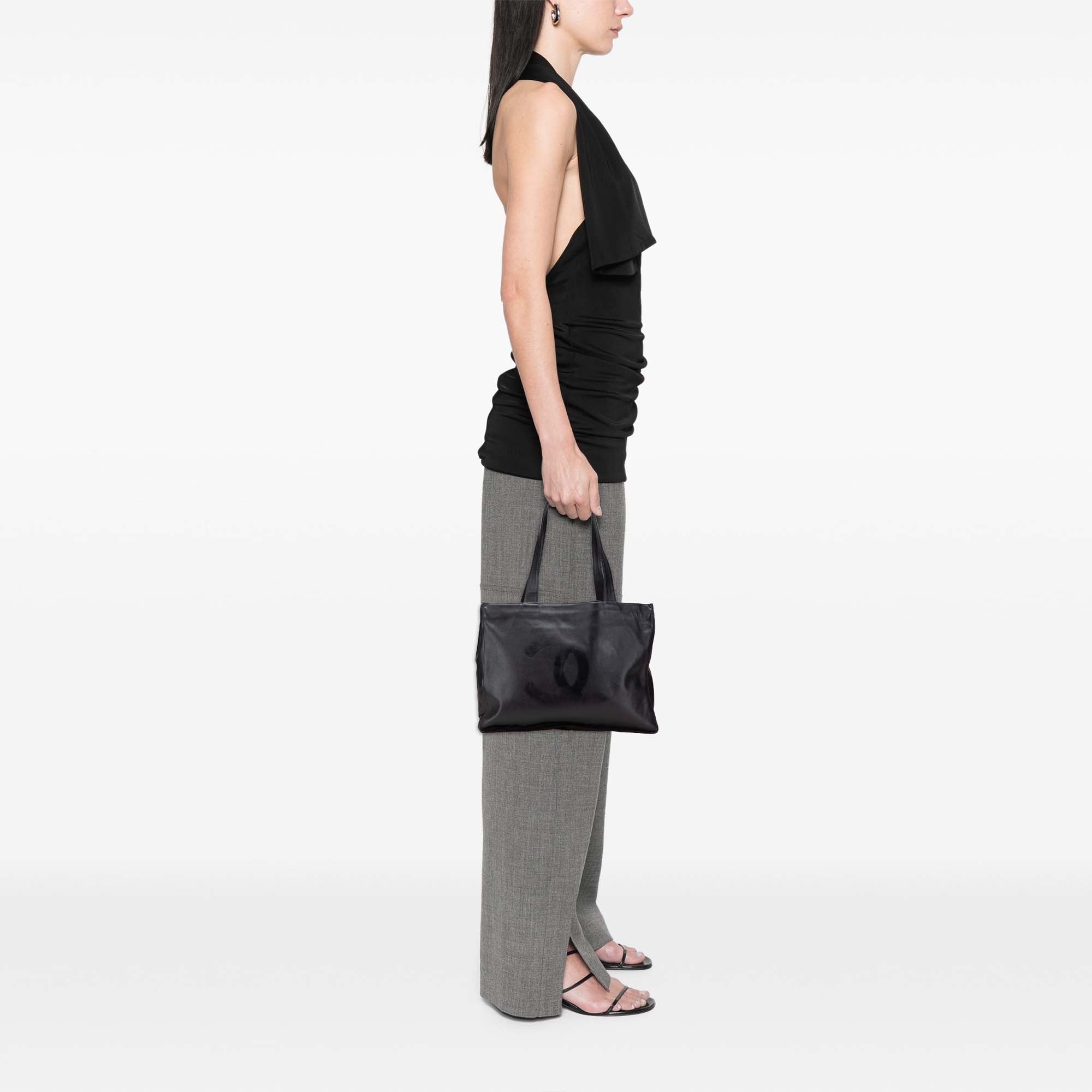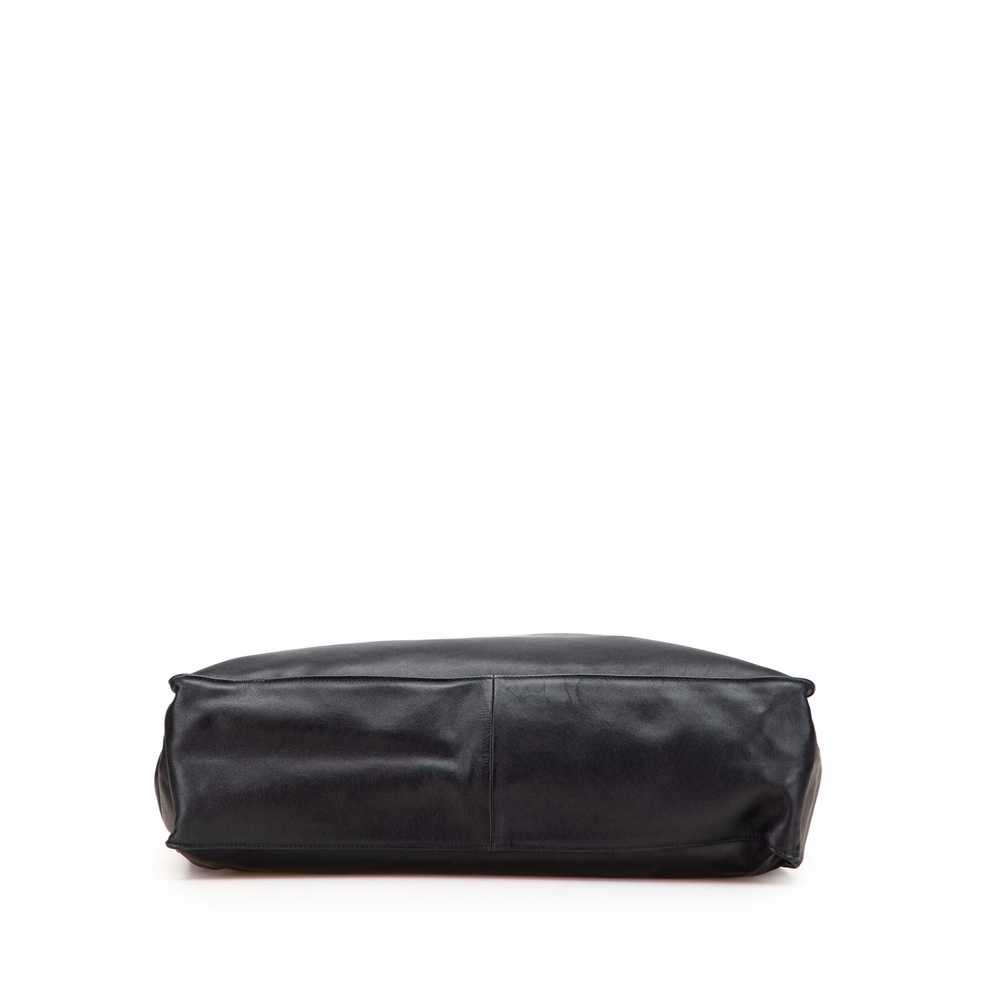 This tote bag features a leather body, flat leather handles, an open top, and an interior zip compartment. Retail Price: 2450.00